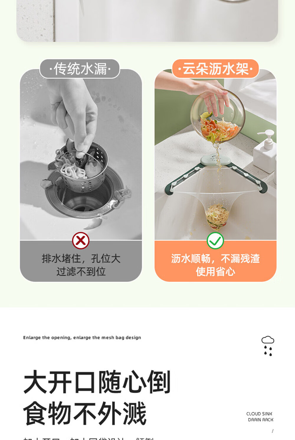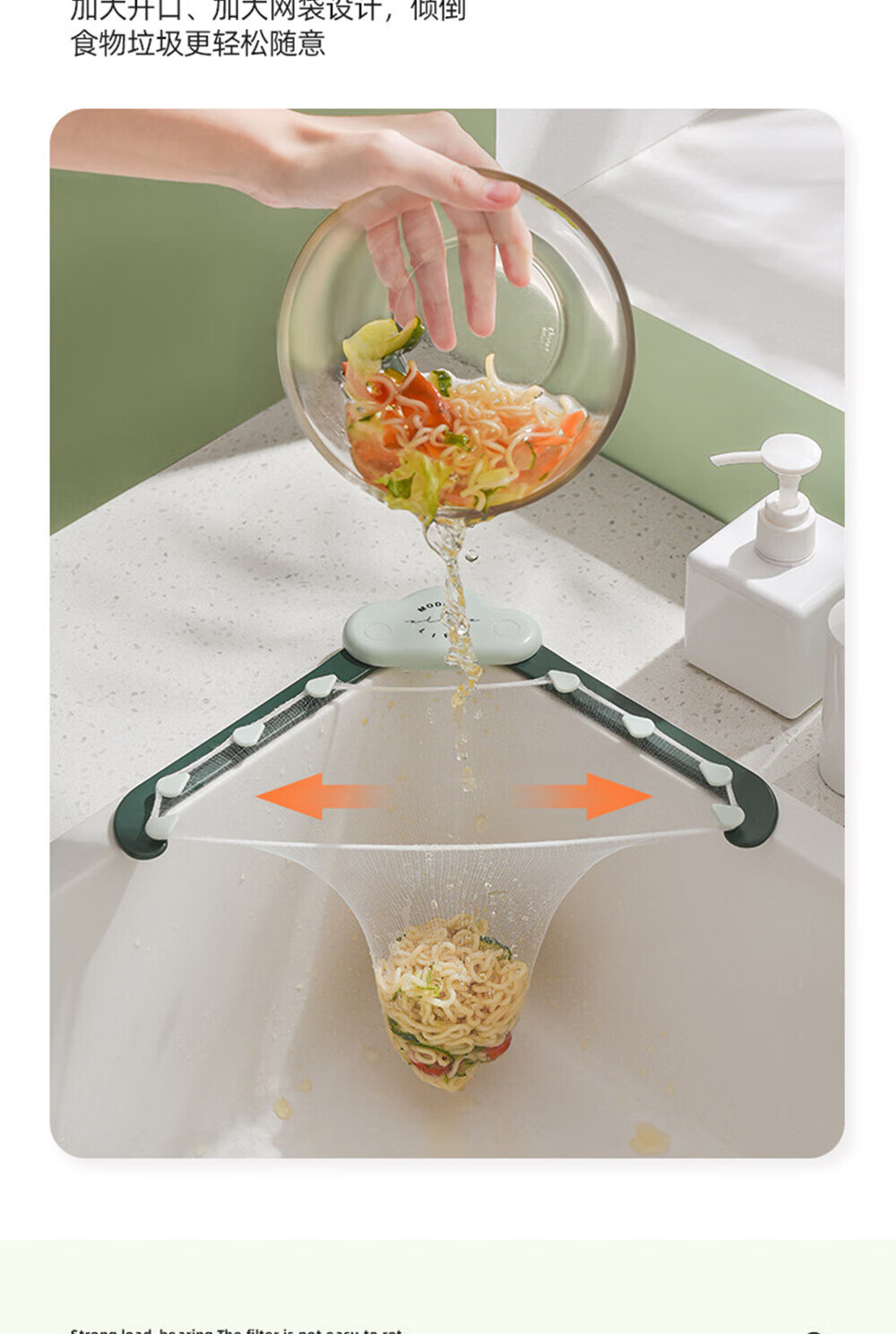 Haofanjie Triangular Filter Kitchen Sink Strainer Leftover Drainage Basket Pool Strainer Disposable Food Waste Filter Rack Sink Drain Rack Green + 50 Mesh Bags