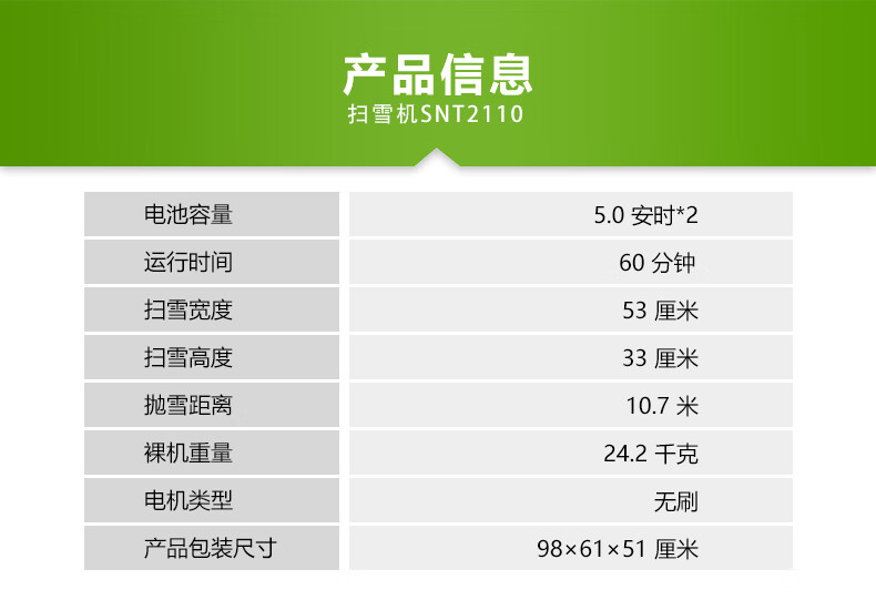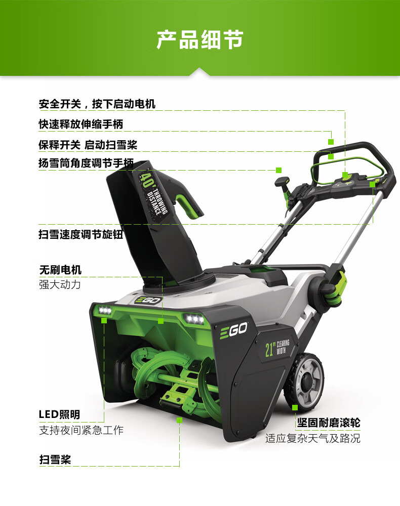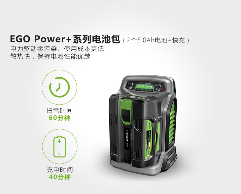 EGO56V lithium battery brushless electric snow blower SNT2110 road snow clearing villa property snow blower municipal disaster relief dual battery 5.0Ah + fast charge charger