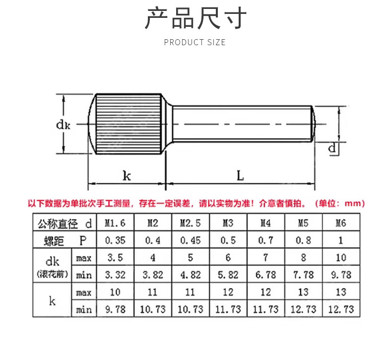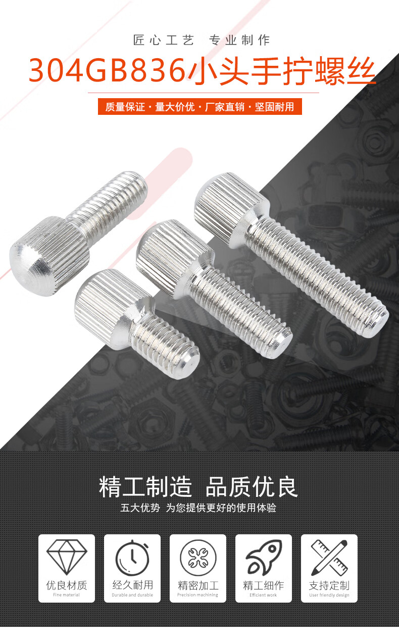 Baodefeng 304 stainless steel small head knurled hand screw GB836 round single head vertical grain adjustment screw bolt national standard M3x18 (2 pieces)