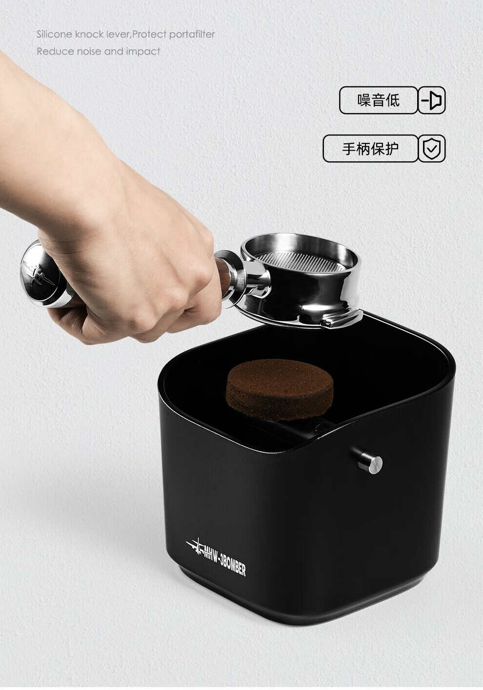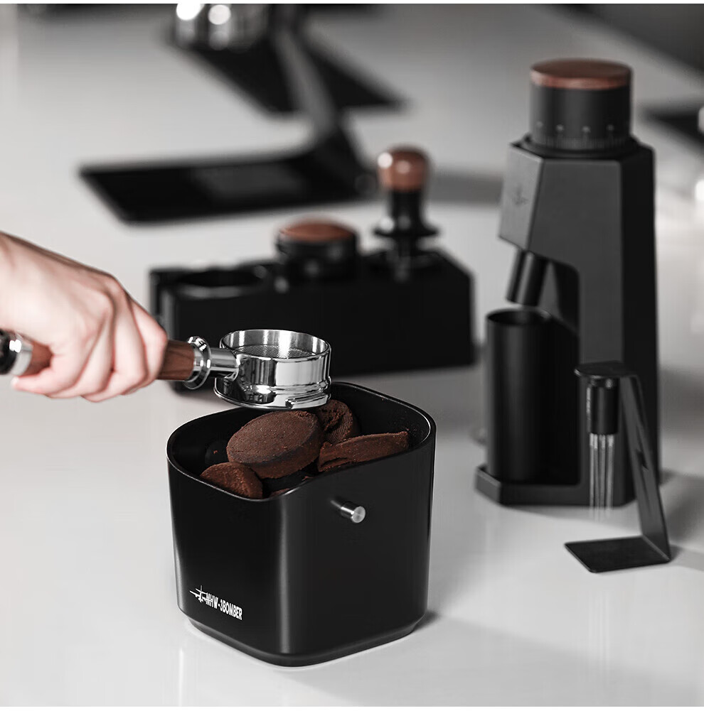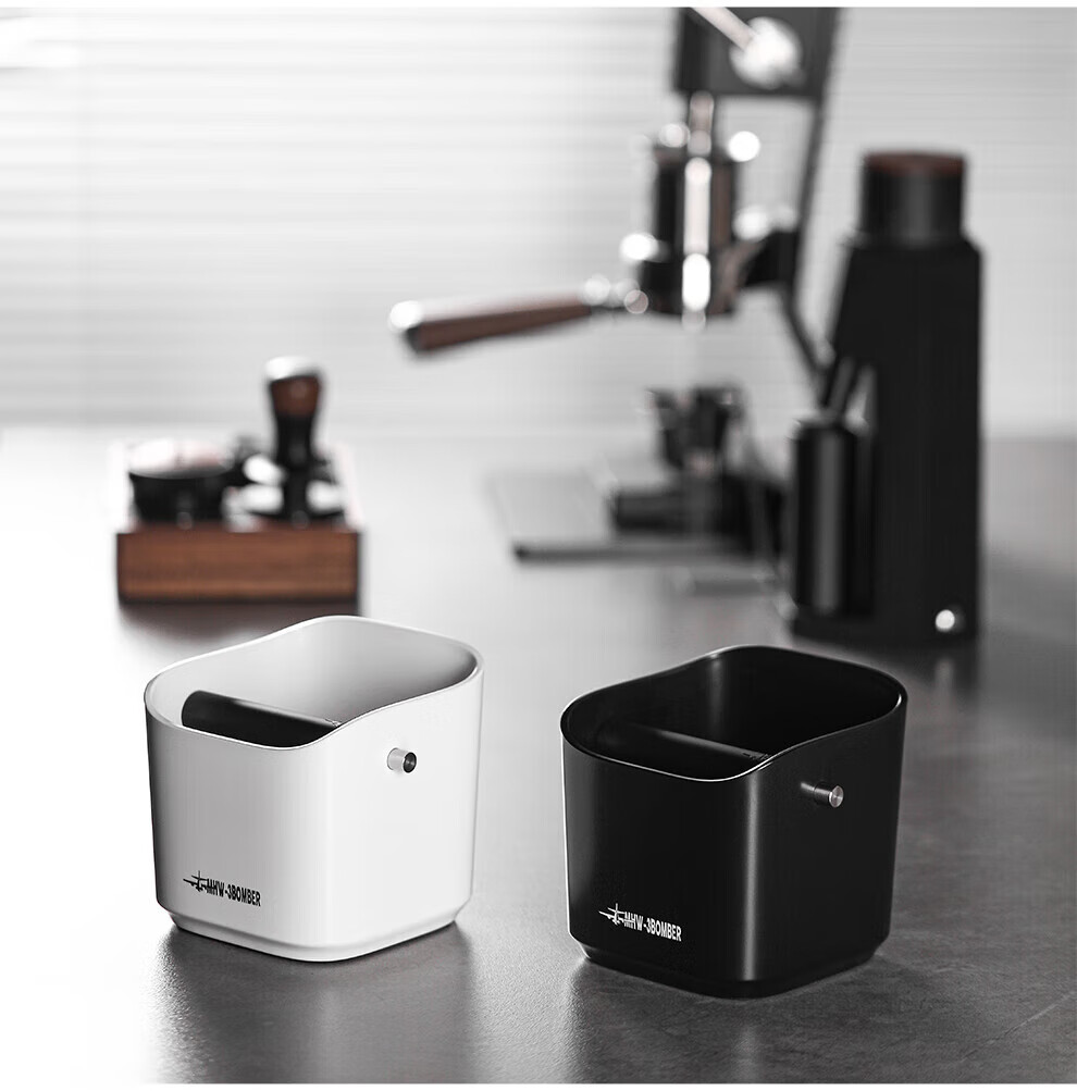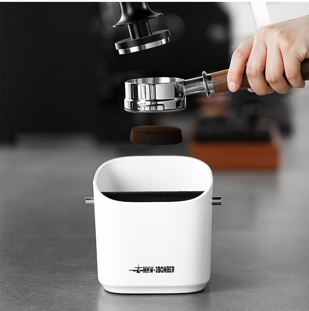 MHW-3BOMBER bomber coffee handle small dregs bucket, diagonal design coffee machine handle dregs bucket, desktop powder bucket, anti-powder splash, small square dregs bucket - dazzling black