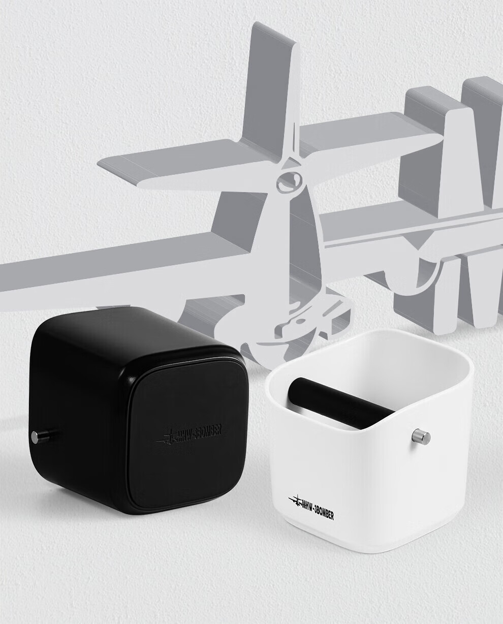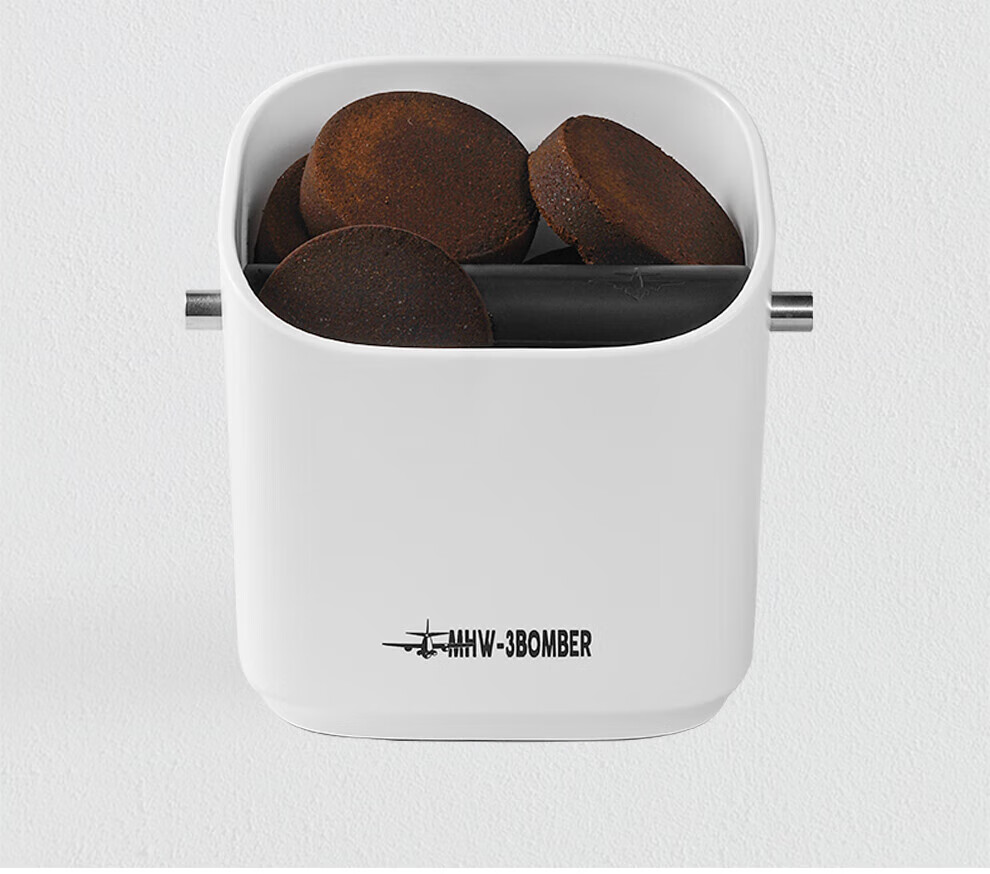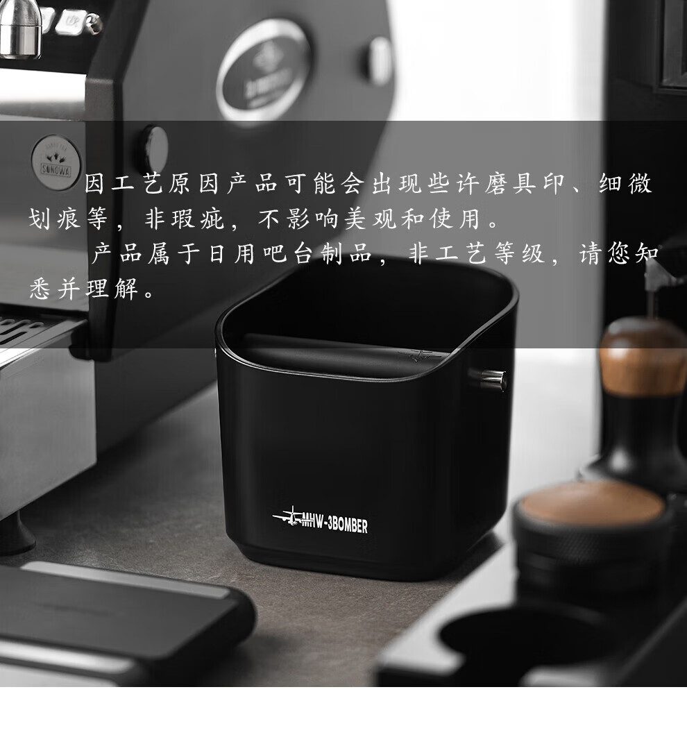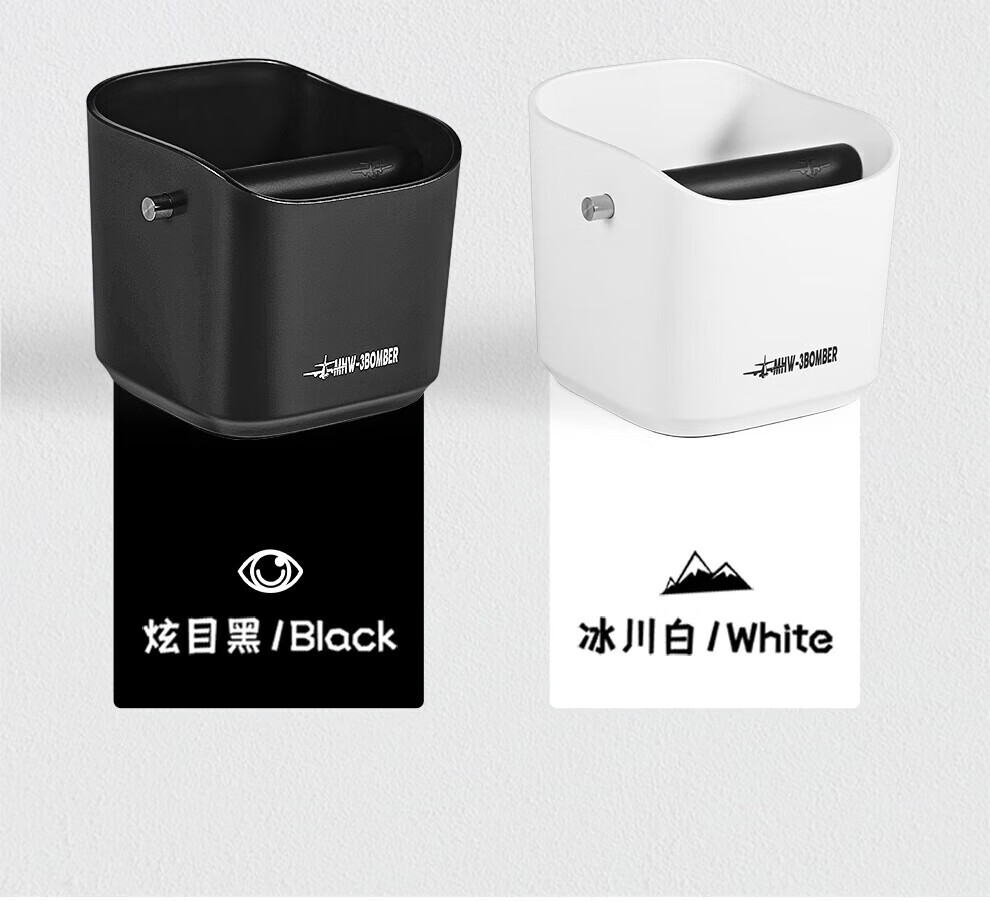 MHW-3BOMBER bomber coffee handle small dregs bucket, diagonal design coffee machine handle dregs bucket, desktop powder bucket, anti-powder splash, small square dregs bucket - dazzling black