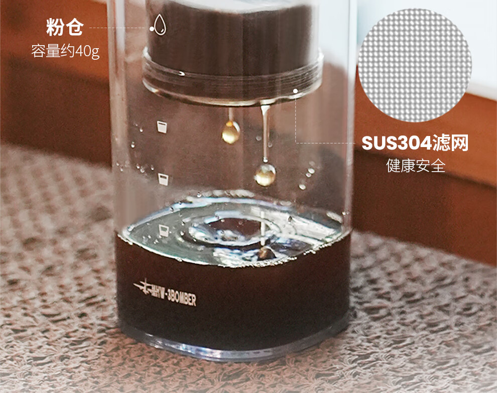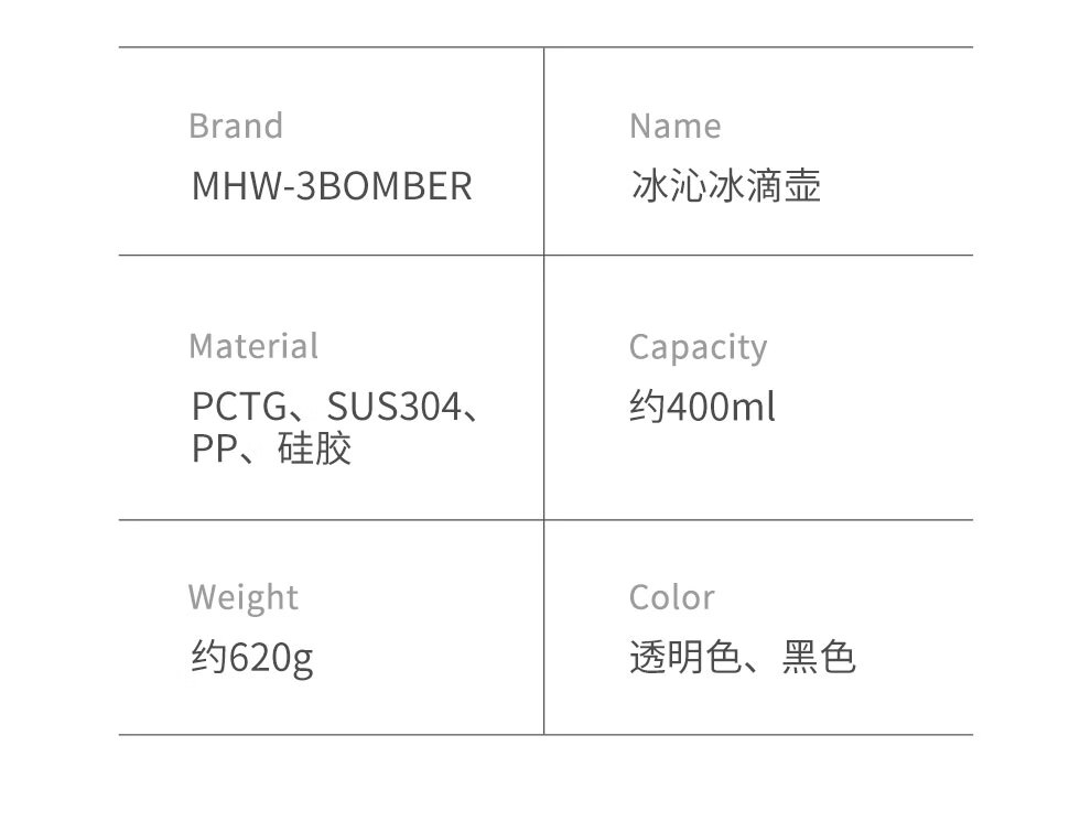 MHW-3BOMBER Bomber Bingqin Ice Drop Pot Summer Cold Brew Pot Drip-type Large Capacity Household Coffee Cold Brew Cup Cold Brew Cup Bingqin Ice Drop Pot - Transparent Color - 400ml