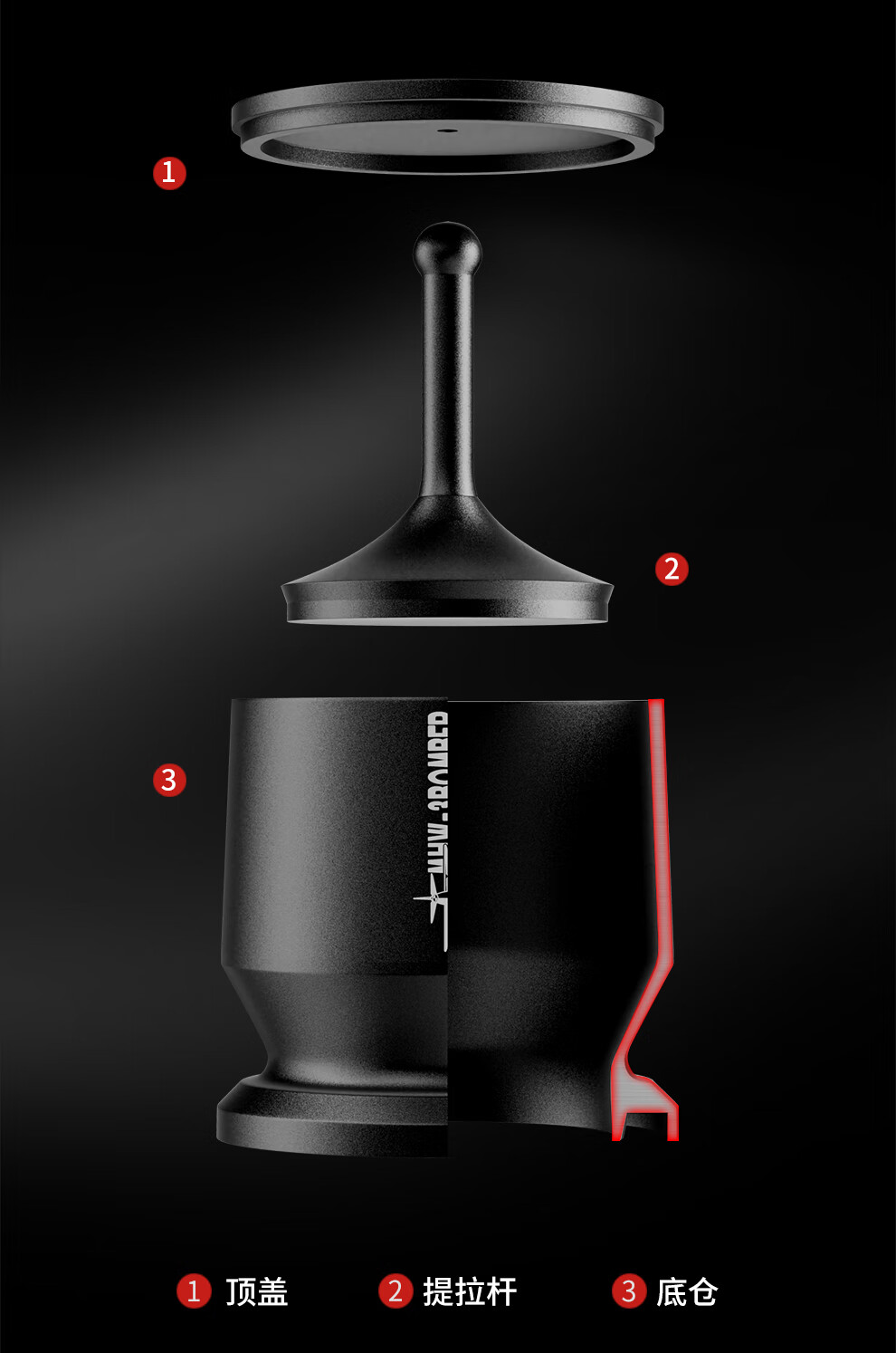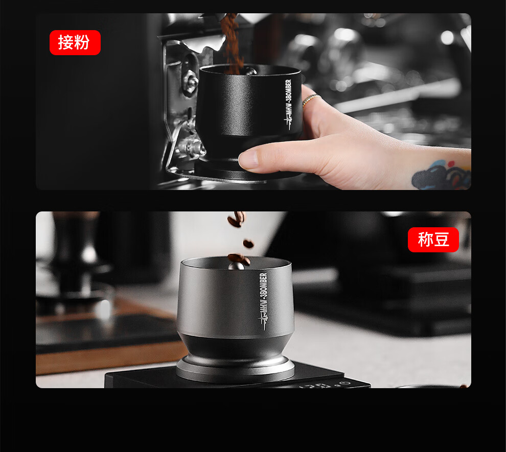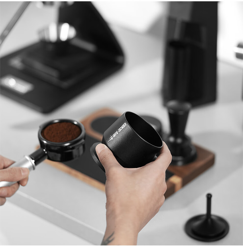 MHW-3BOMBER bomber coffee powder collector, grinder coffee powder cup, WBC coffee powder dropper, anti-spill and anti-static coffee powder dropper-black-58MM universal