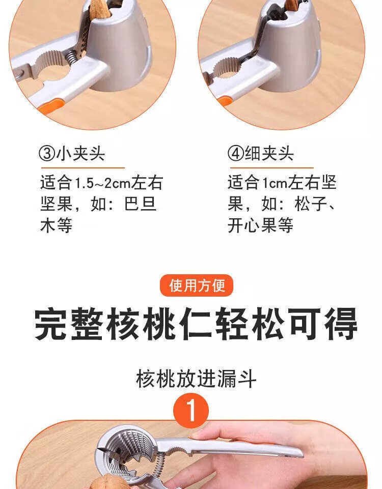Haofanjie walnut clipper artifact walnut clipper walnut clipper artifact 304 stainless steel walnut pliers to peel walnuts thickened orange handle four jaws