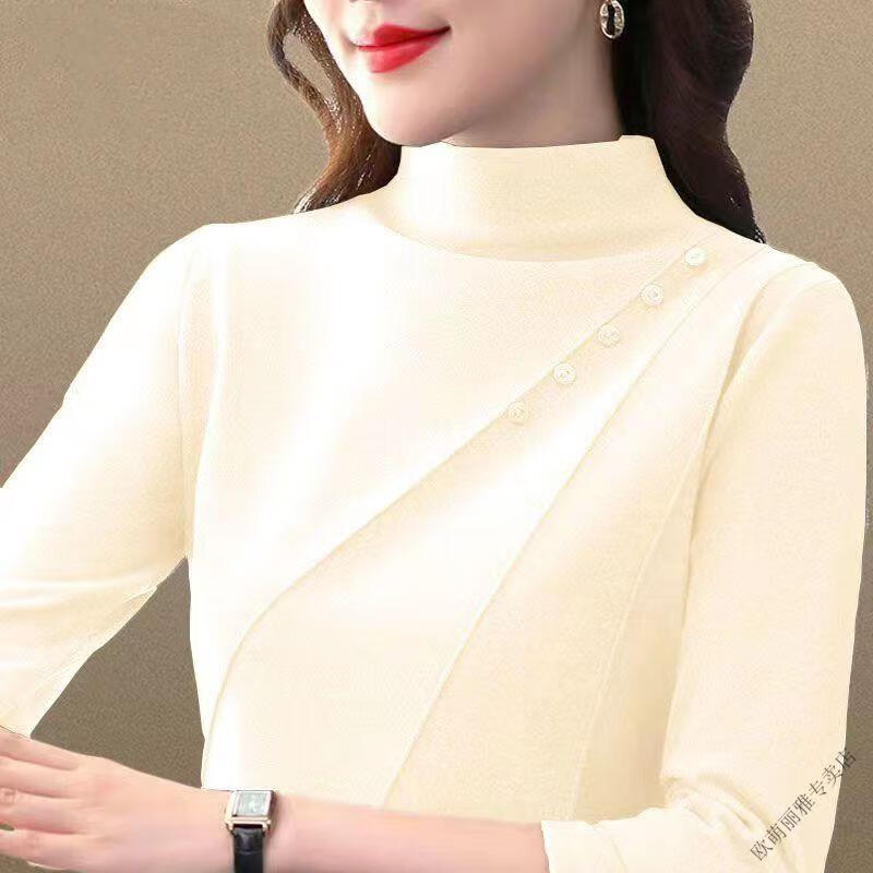 Pierre Cardin German velvet thickened bottoming shirt for women new autumn and winter outer wear and inner wear Maillard double-sided velvet half turtleneck mother's wear 5531 dark green German velvet double-sided velvet thickened 2XL 130-145 pounds
