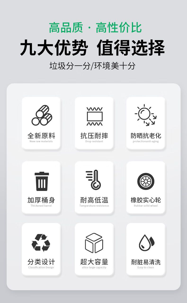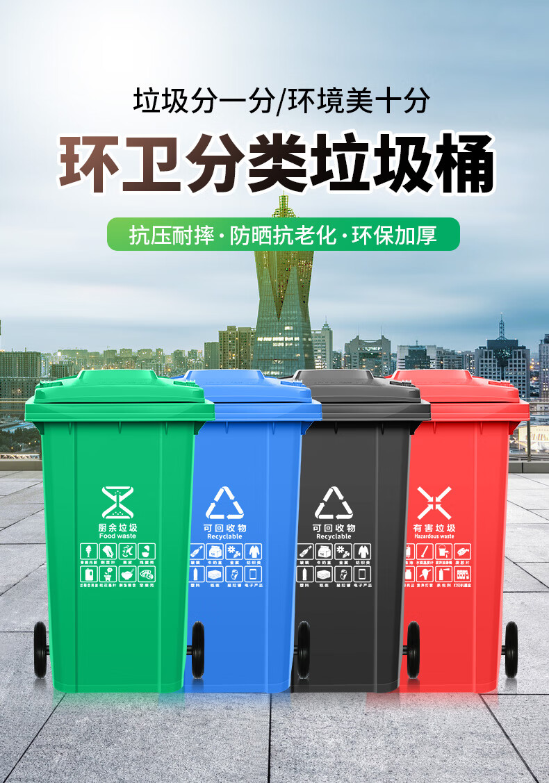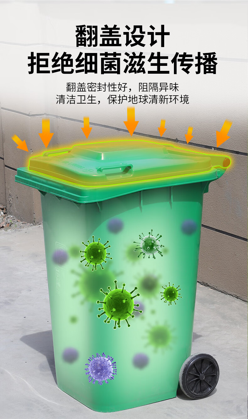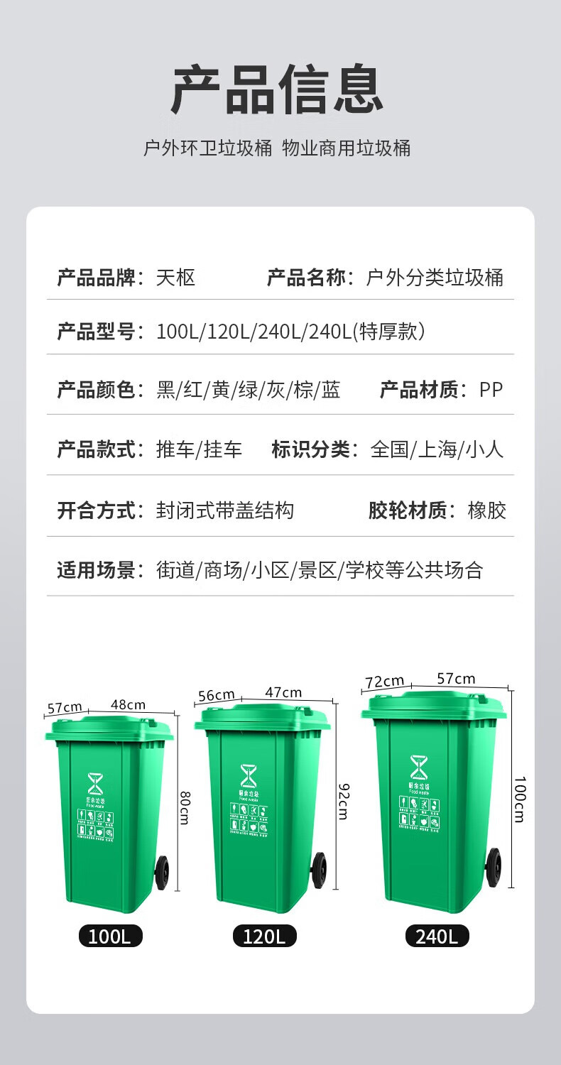Tianshu trash can outdoor sanitation large thick classified wheeled cover community property factory park scenic spot street commercial 240L new national standard extra thick flip cover wheeled black other trash cans