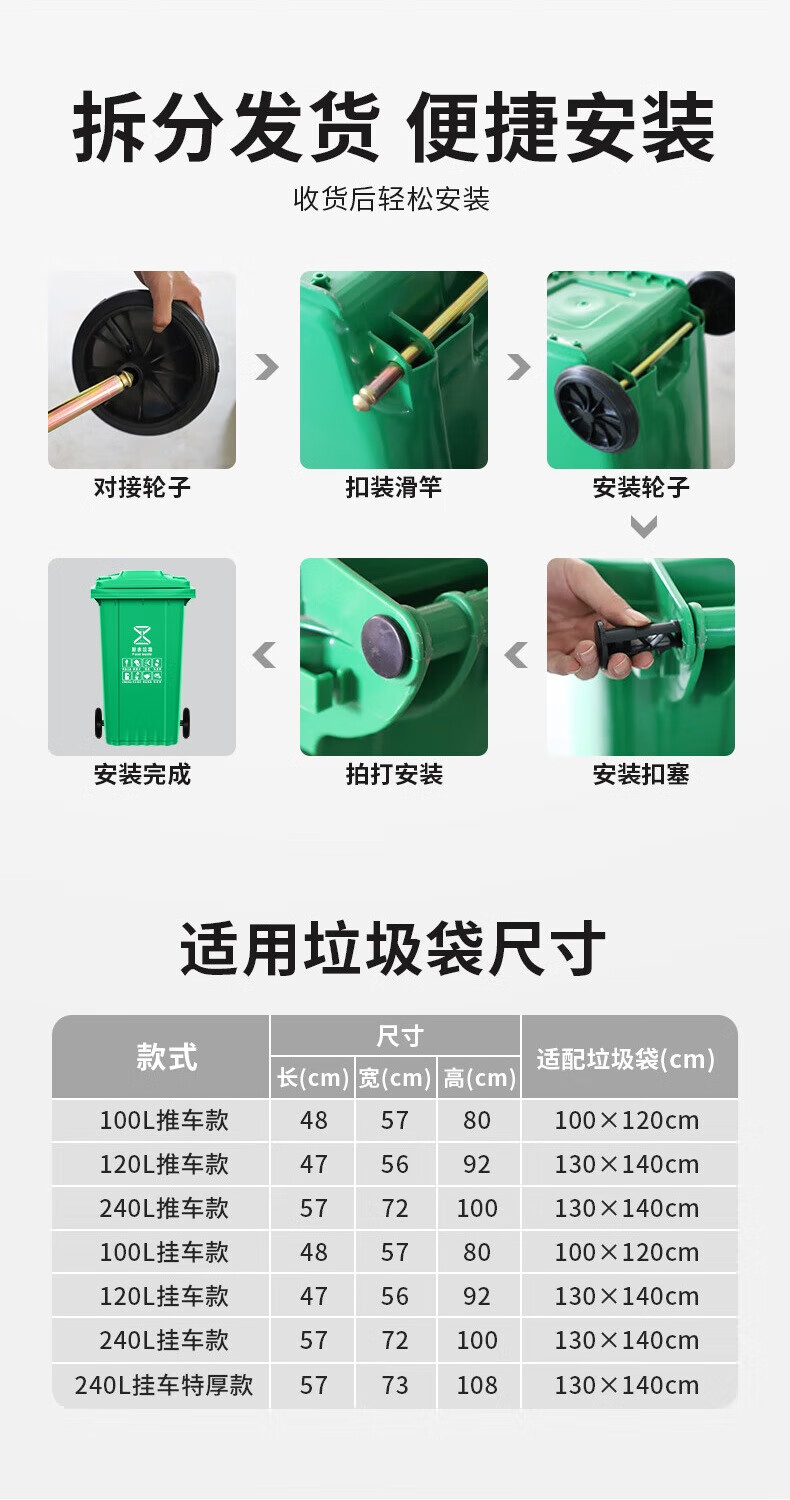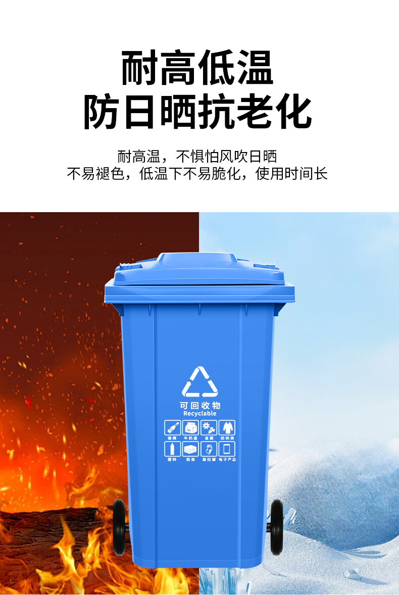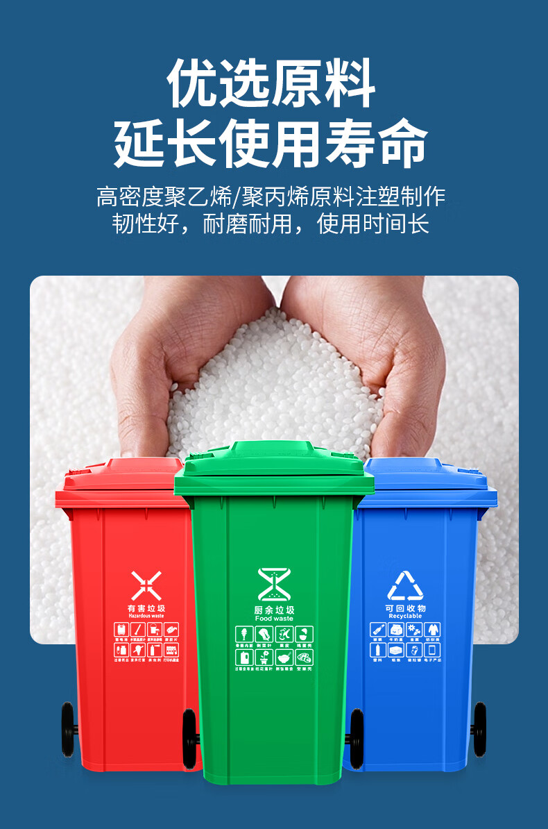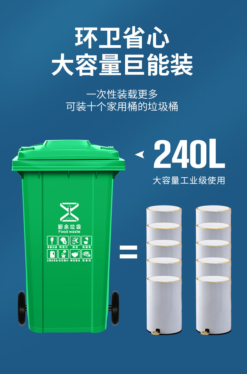 Tianshu trash can outdoor sanitation large thick classified wheeled cover community property factory park scenic spot street commercial 240L new national standard extra thick flip cover wheeled black other trash cans
