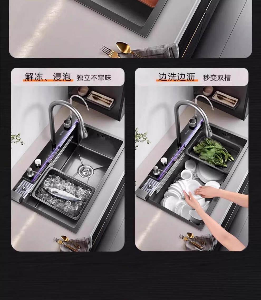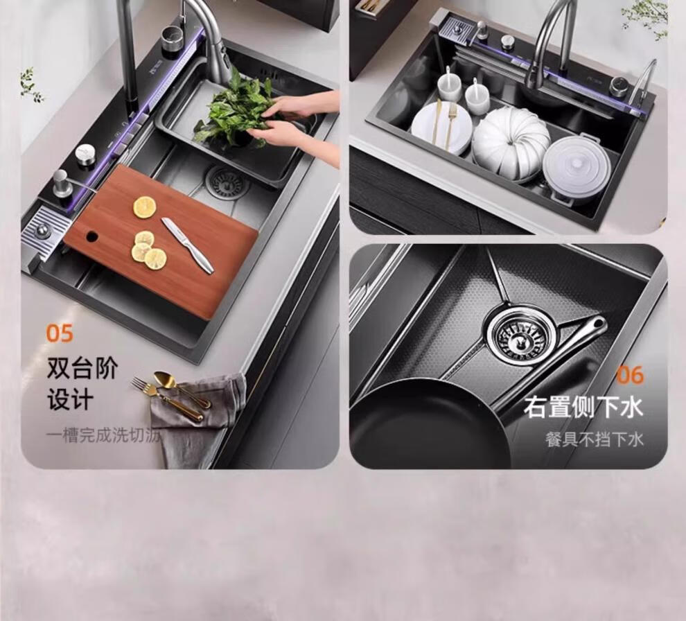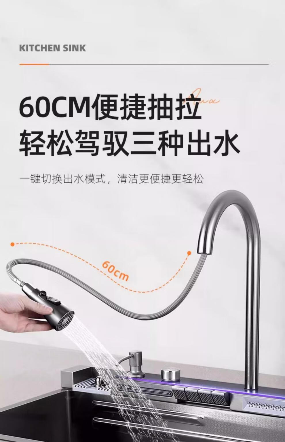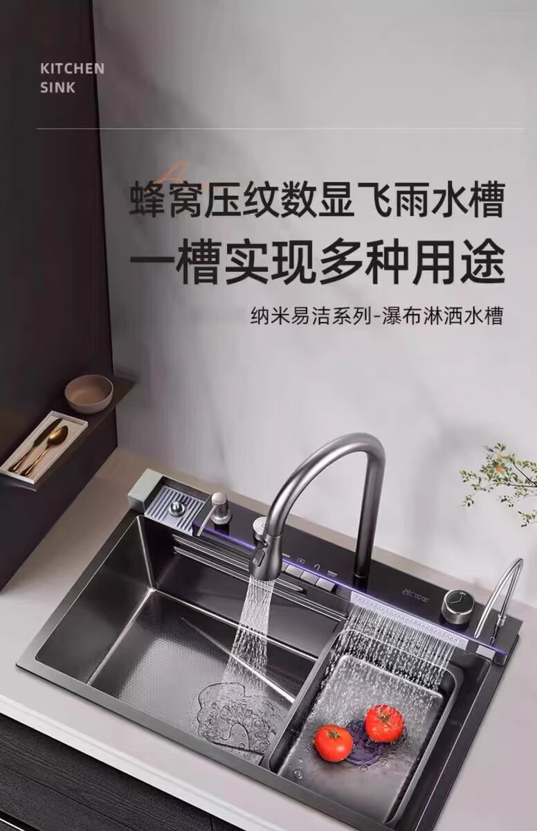 JCZS5.0 Thickened Raindance Waterfall Sink 304 Stainless Steel Handmade Large Single Slot Home Kitchen Above and Below Counter Wash Basin 5.0 Thick 68X45 Generation No Button Basic