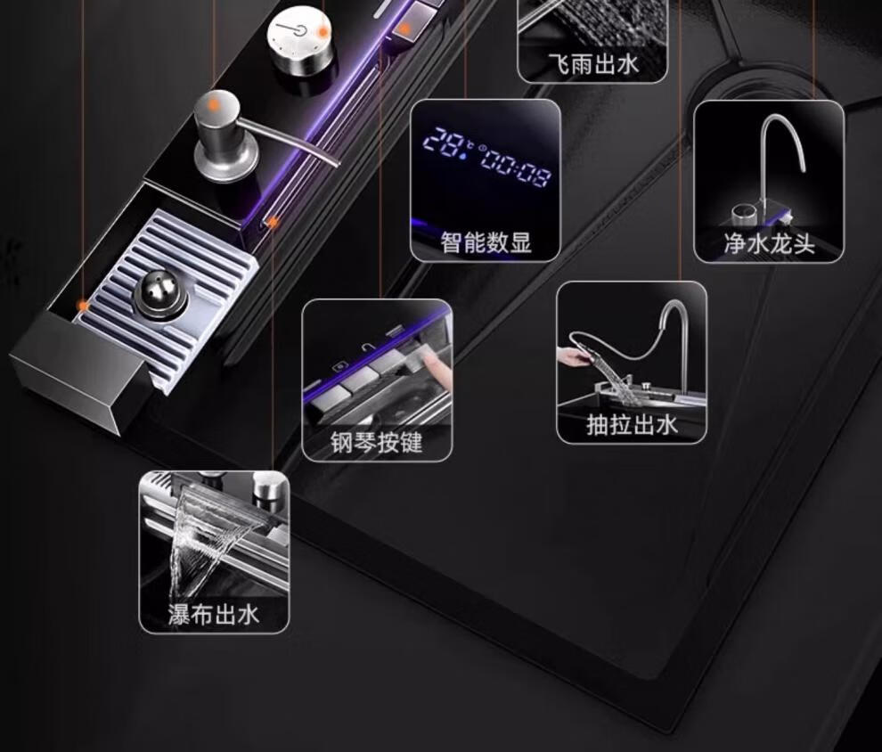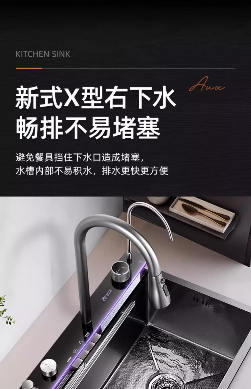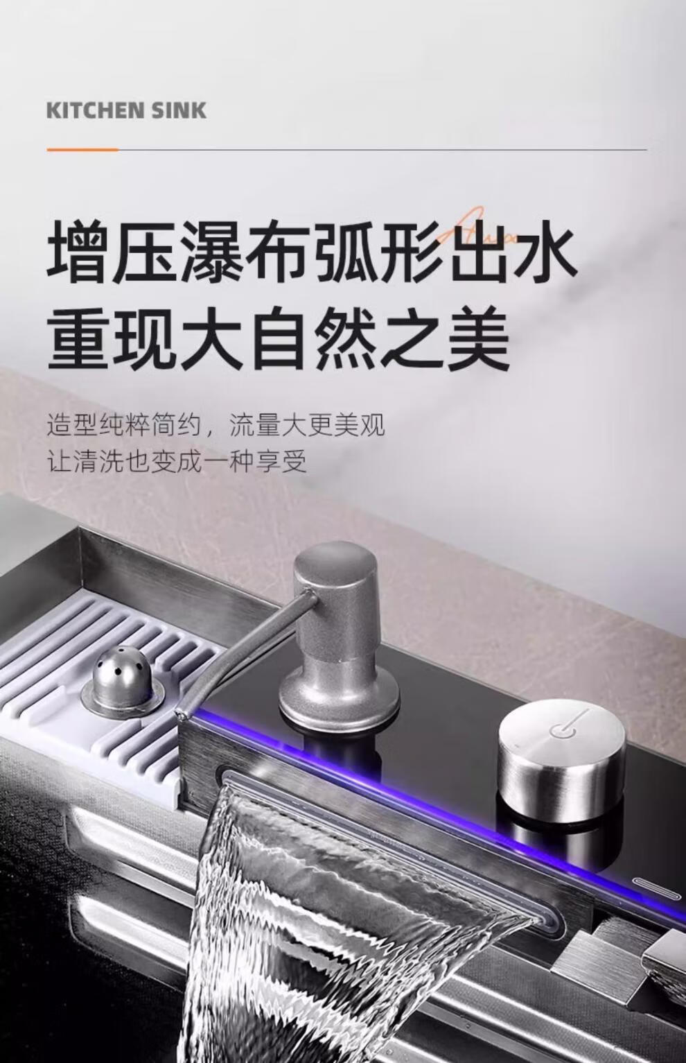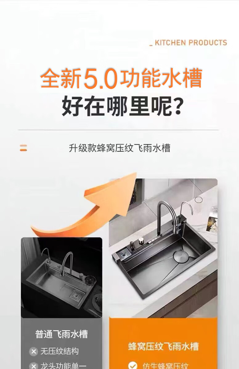 JCZS5.0 Thickened Raindance Waterfall Sink 304 Stainless Steel Handmade Large Single Slot Home Kitchen Above and Below Counter Wash Basin 5.0 Thick 68X45 Generation No Button Basic