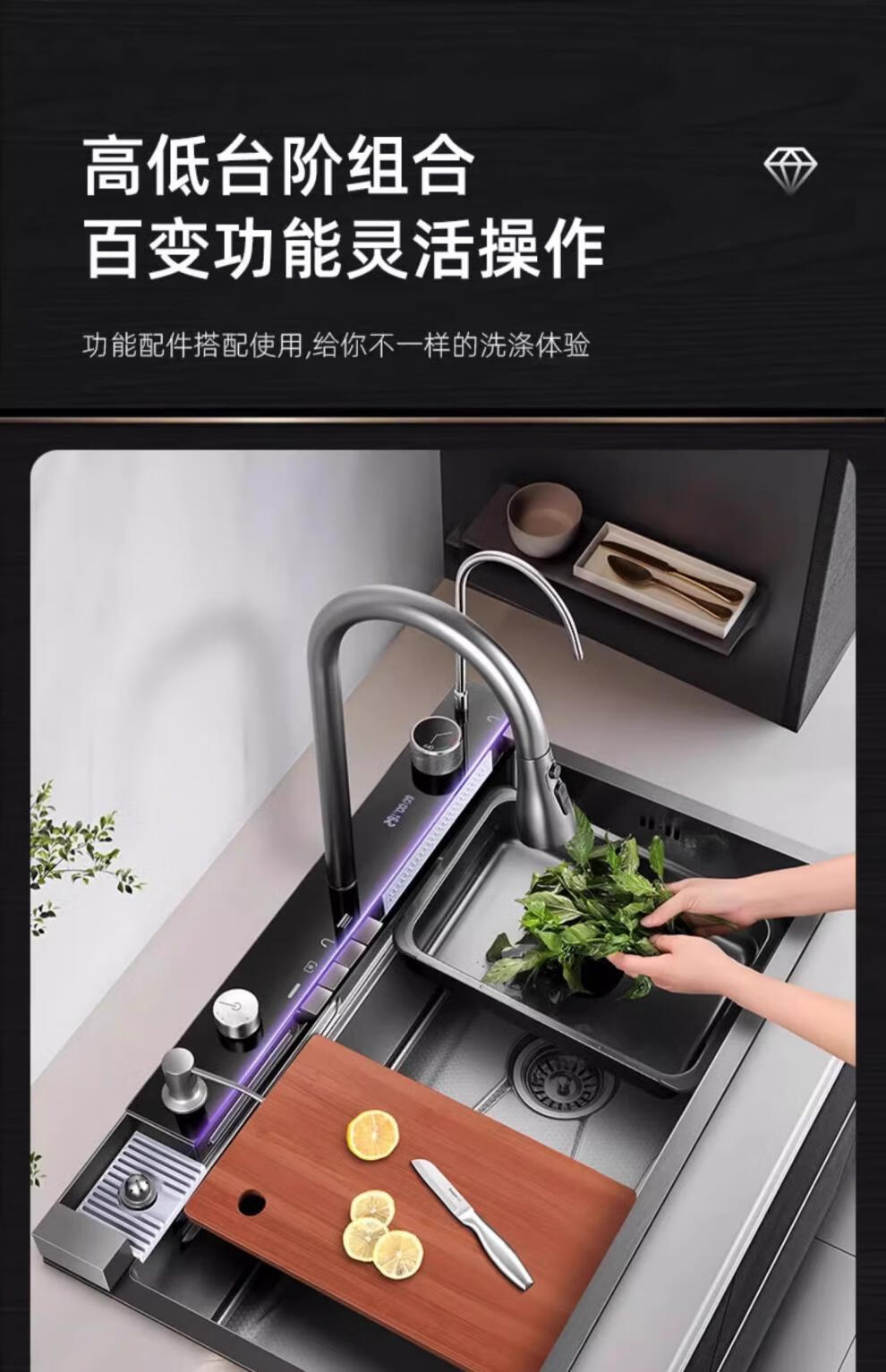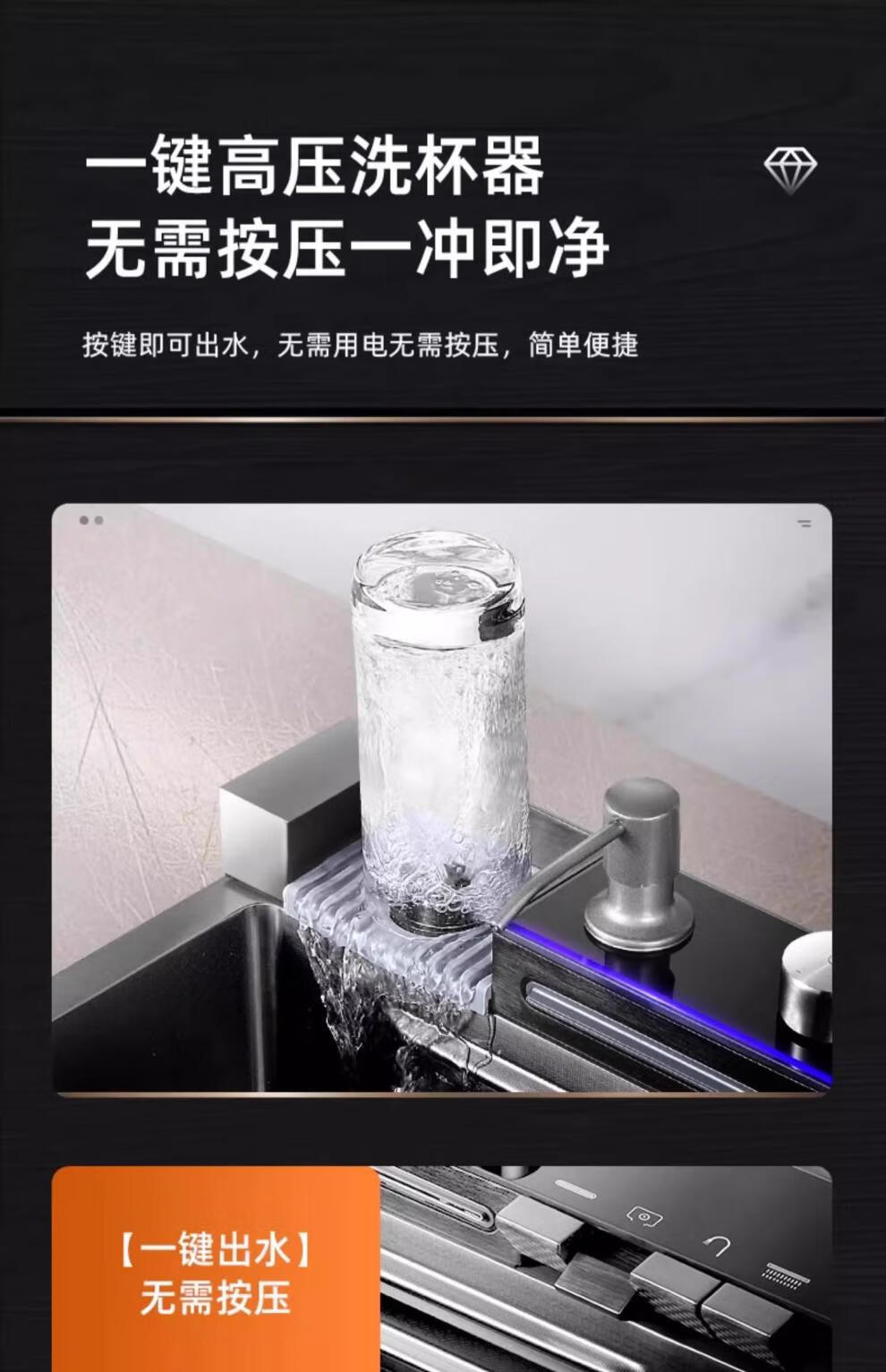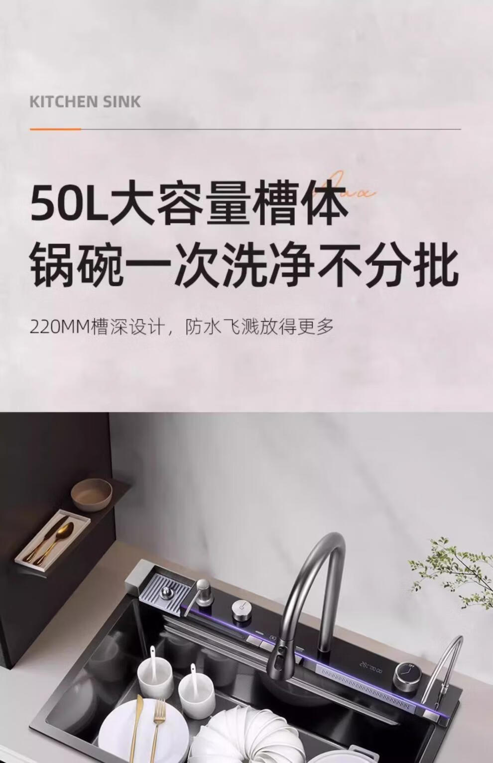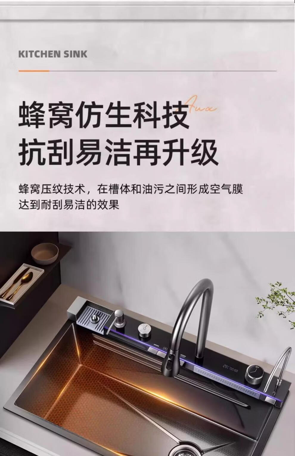 JCZS5.0 Thickened Raindance Waterfall Sink 304 Stainless Steel Handmade Large Single Slot Home Kitchen Above and Below Counter Wash Basin 5.0 Thick 68X45 Generation No Button Basic