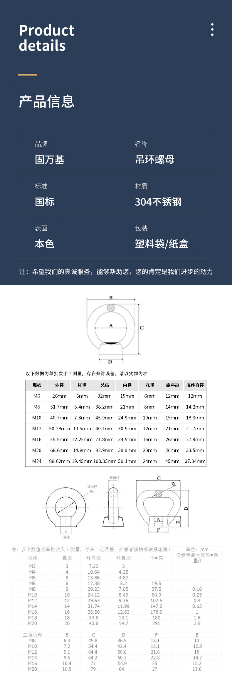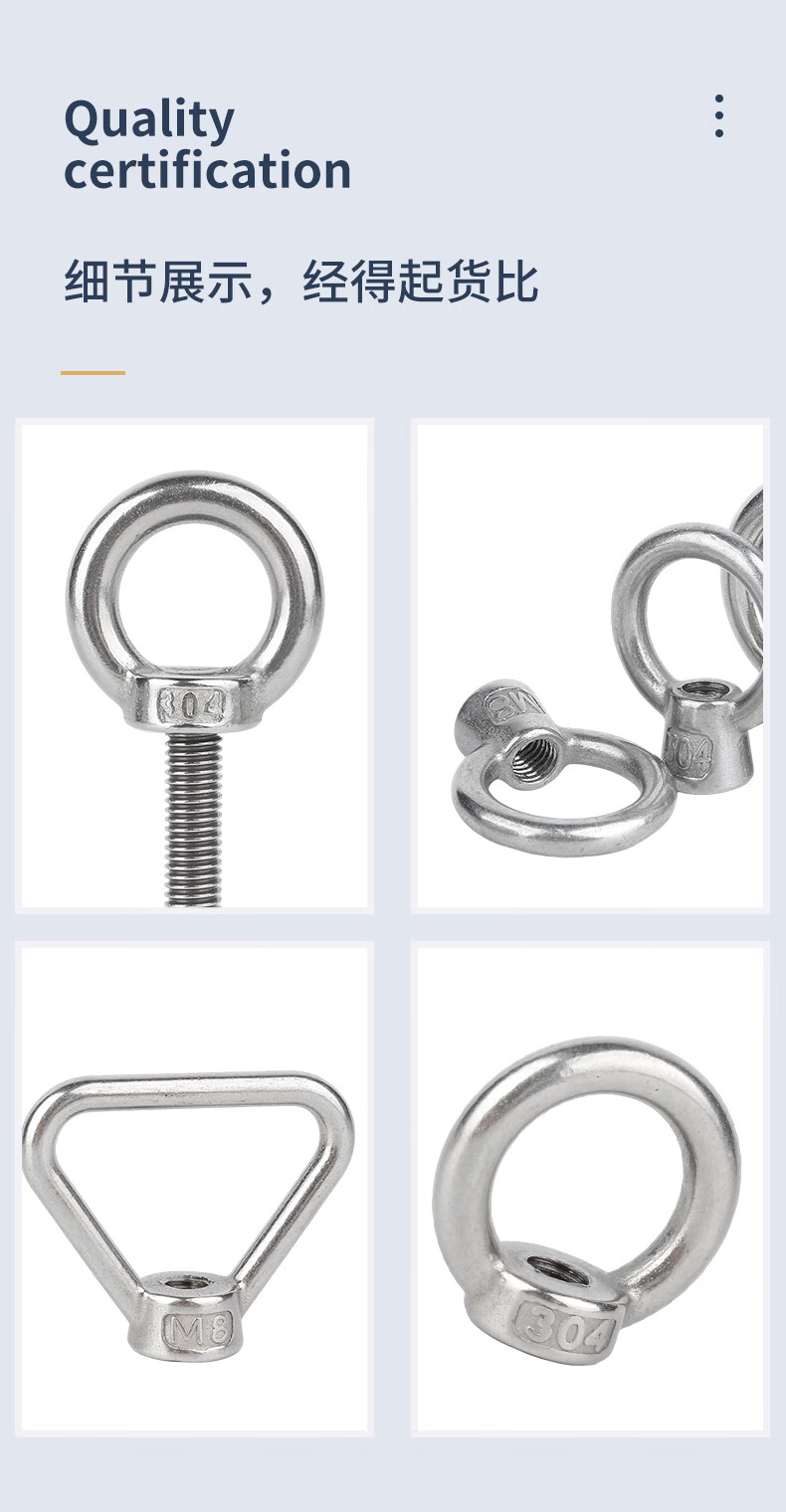 Guwanji national standard 304 stainless steel Japanese-style lifting eye nut high-foot lifting nut screw cap annular ring standard accessories 304 round lifting eye nut M48 (1 piece)