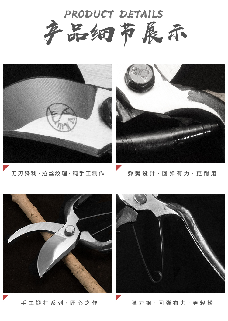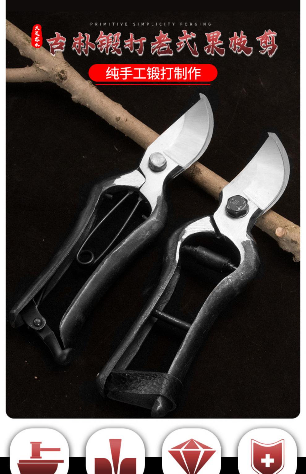 Customized floral old-fashioned fruit tree scissors, pruning shears, gardening scissors, labor-saving scissors, thick branch shears, pruning branch shears, 8-inch leather buckle Wangershan