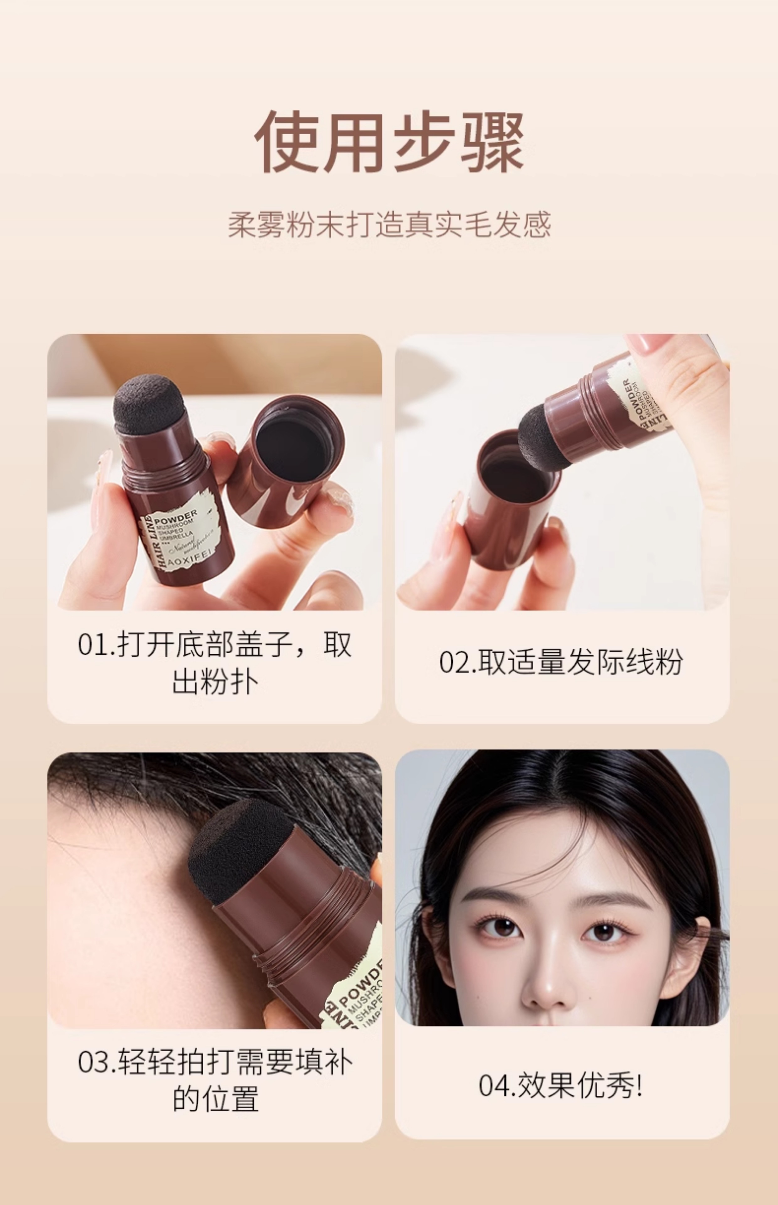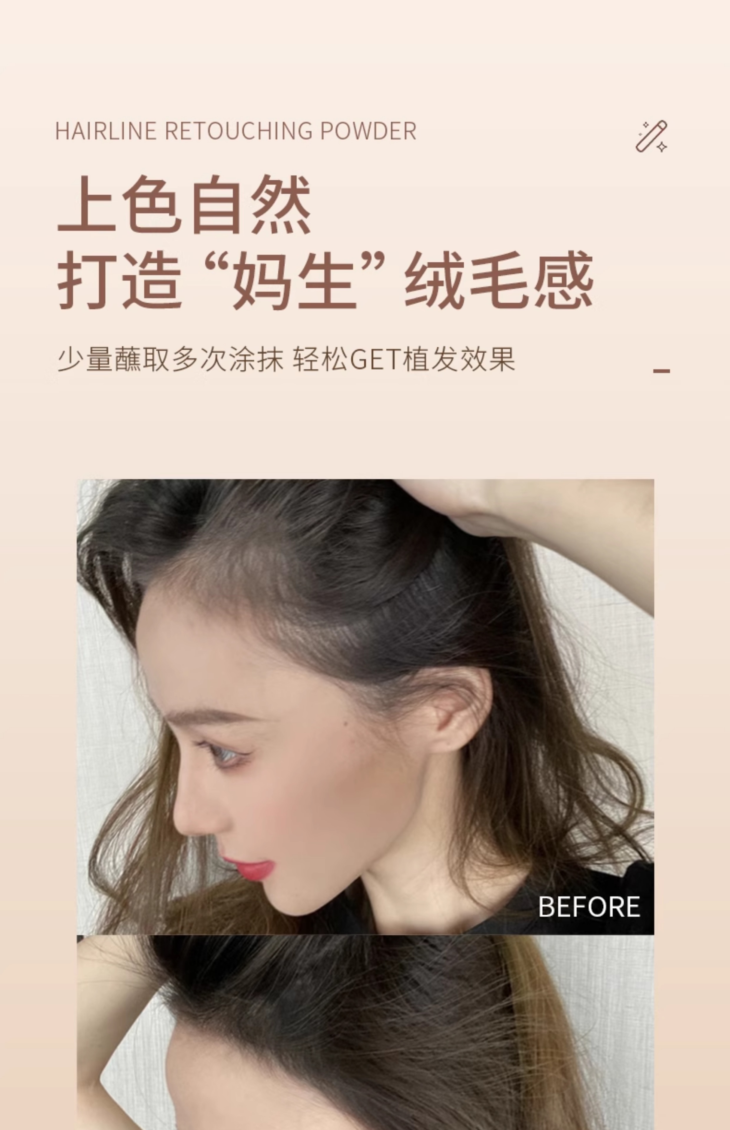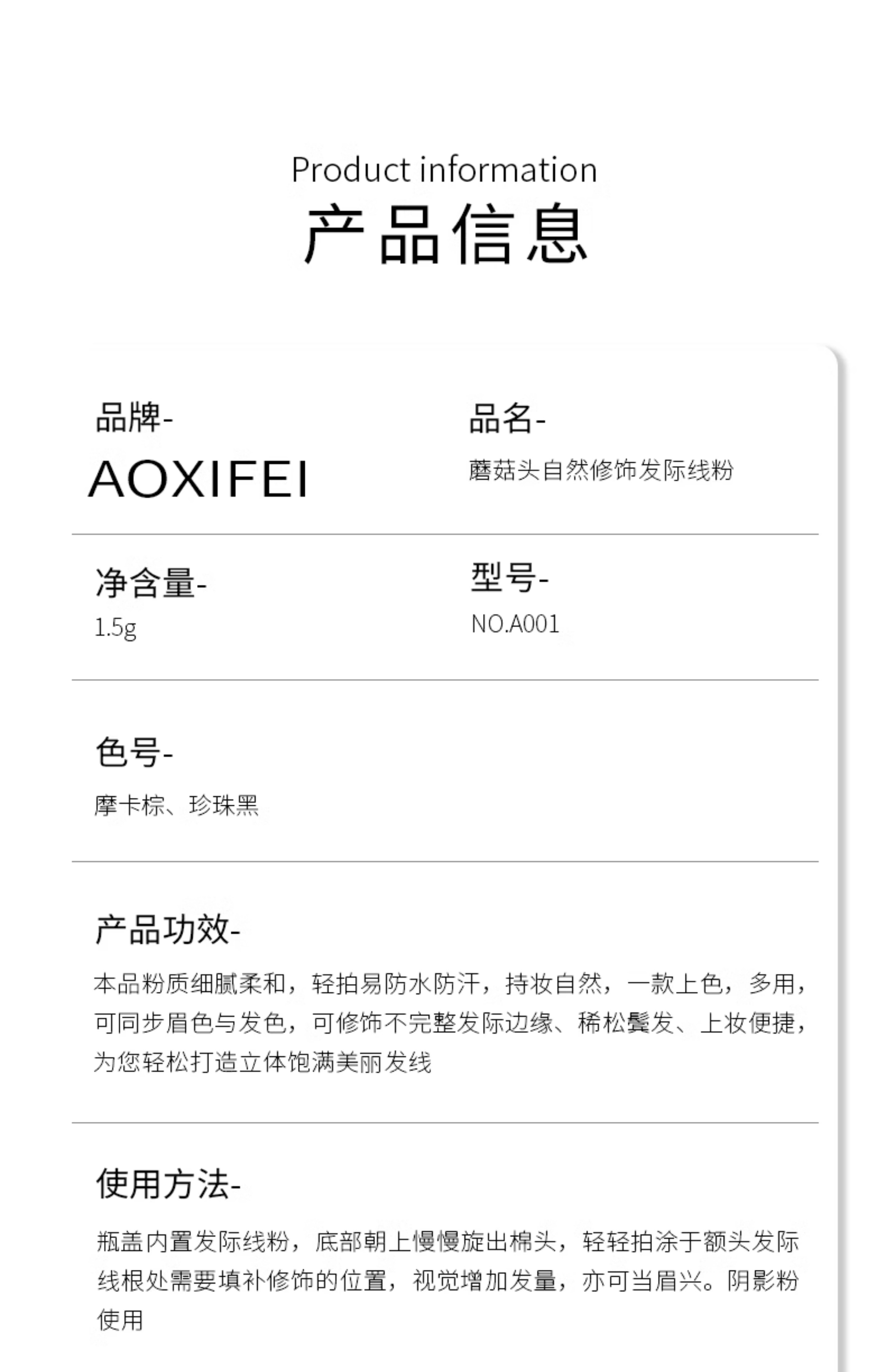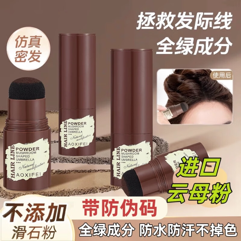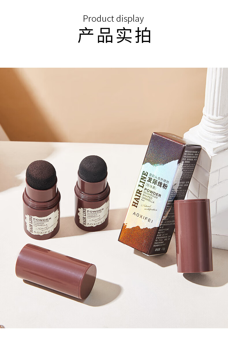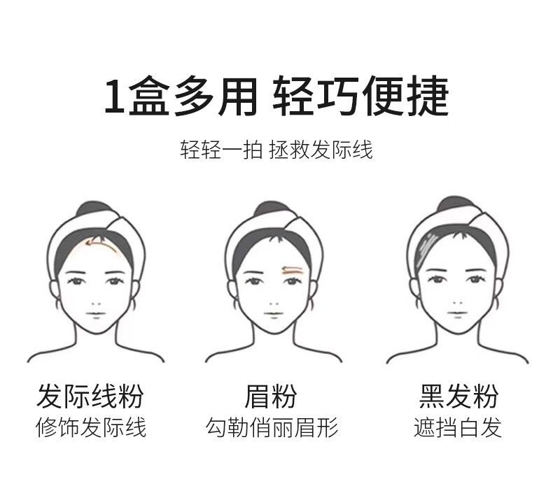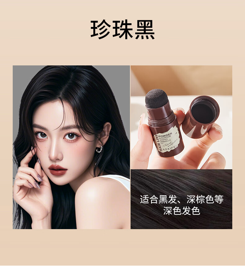 Oshie Fei Japanese hairline powder repair shadow modification filling hair powder cream re-hair artifact concealing high forehead shadow pen for women, pearl black 1 piece, natural black