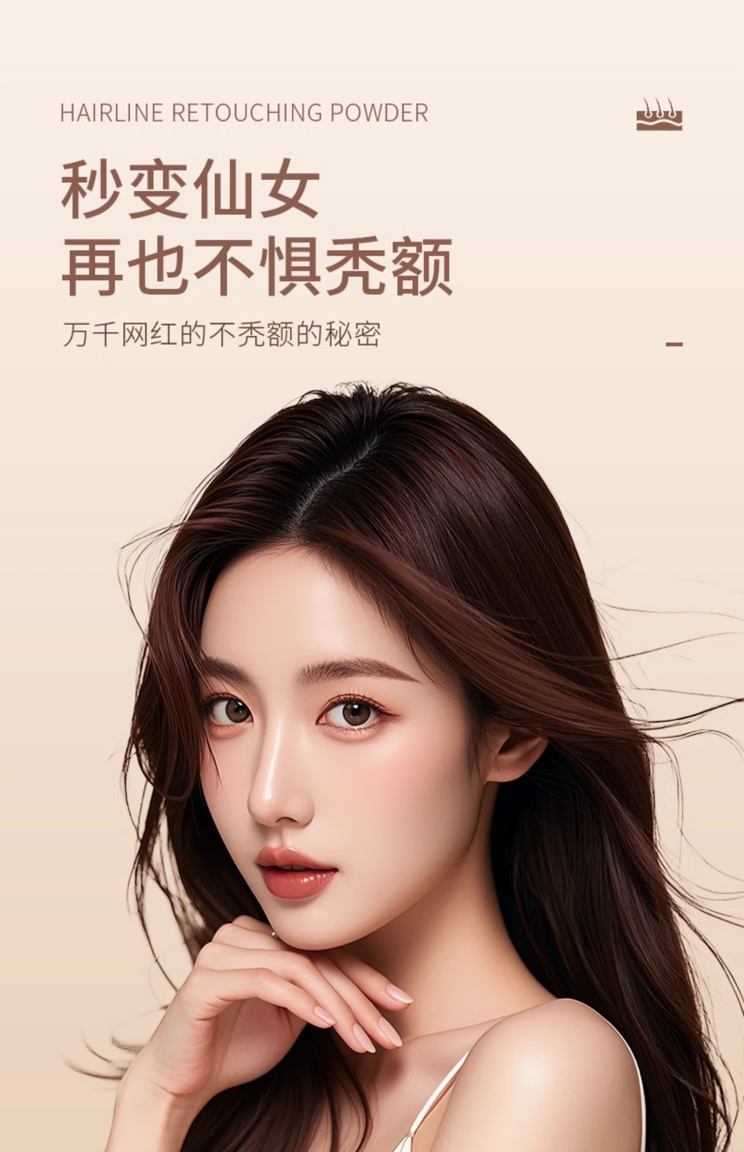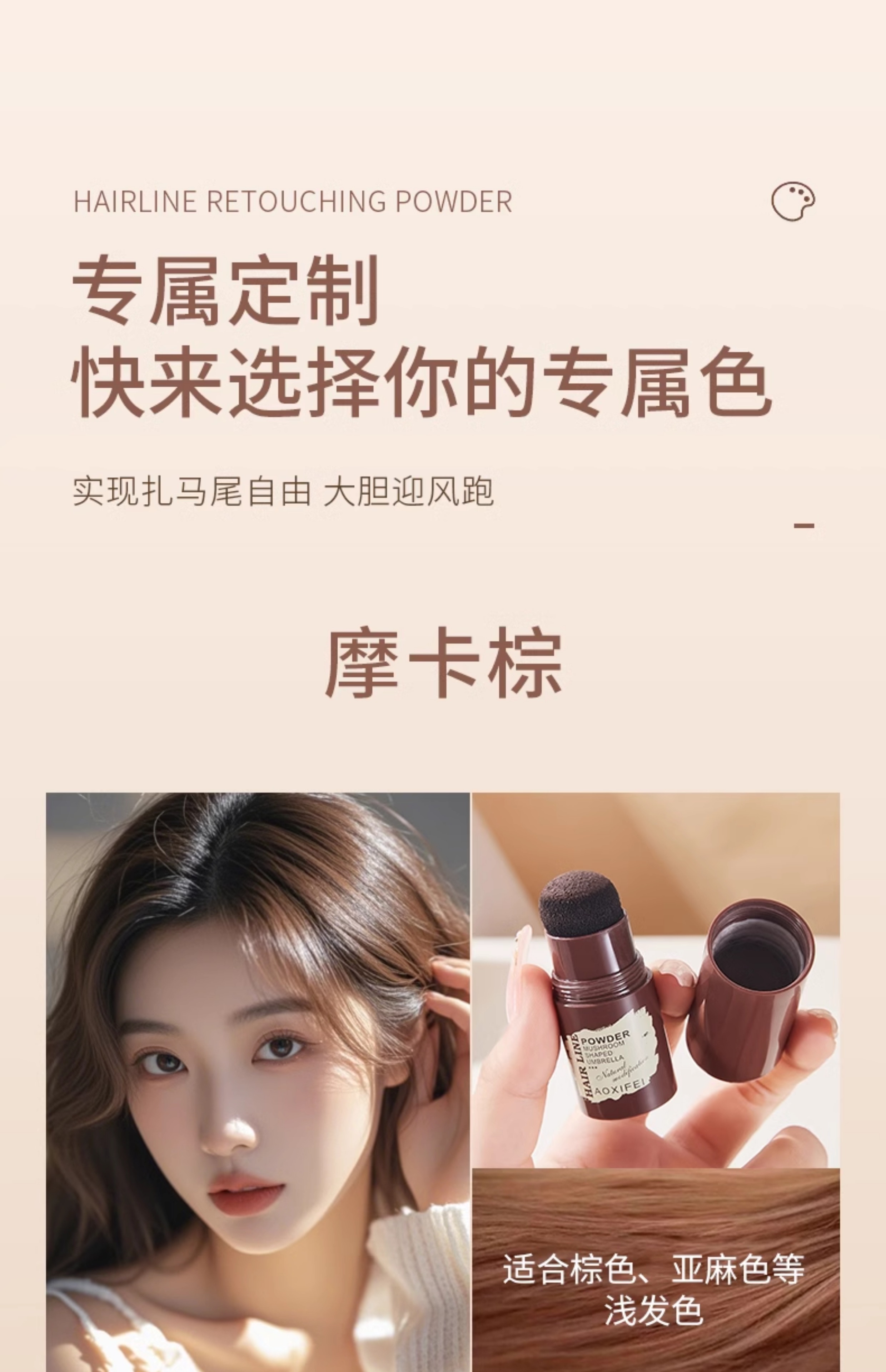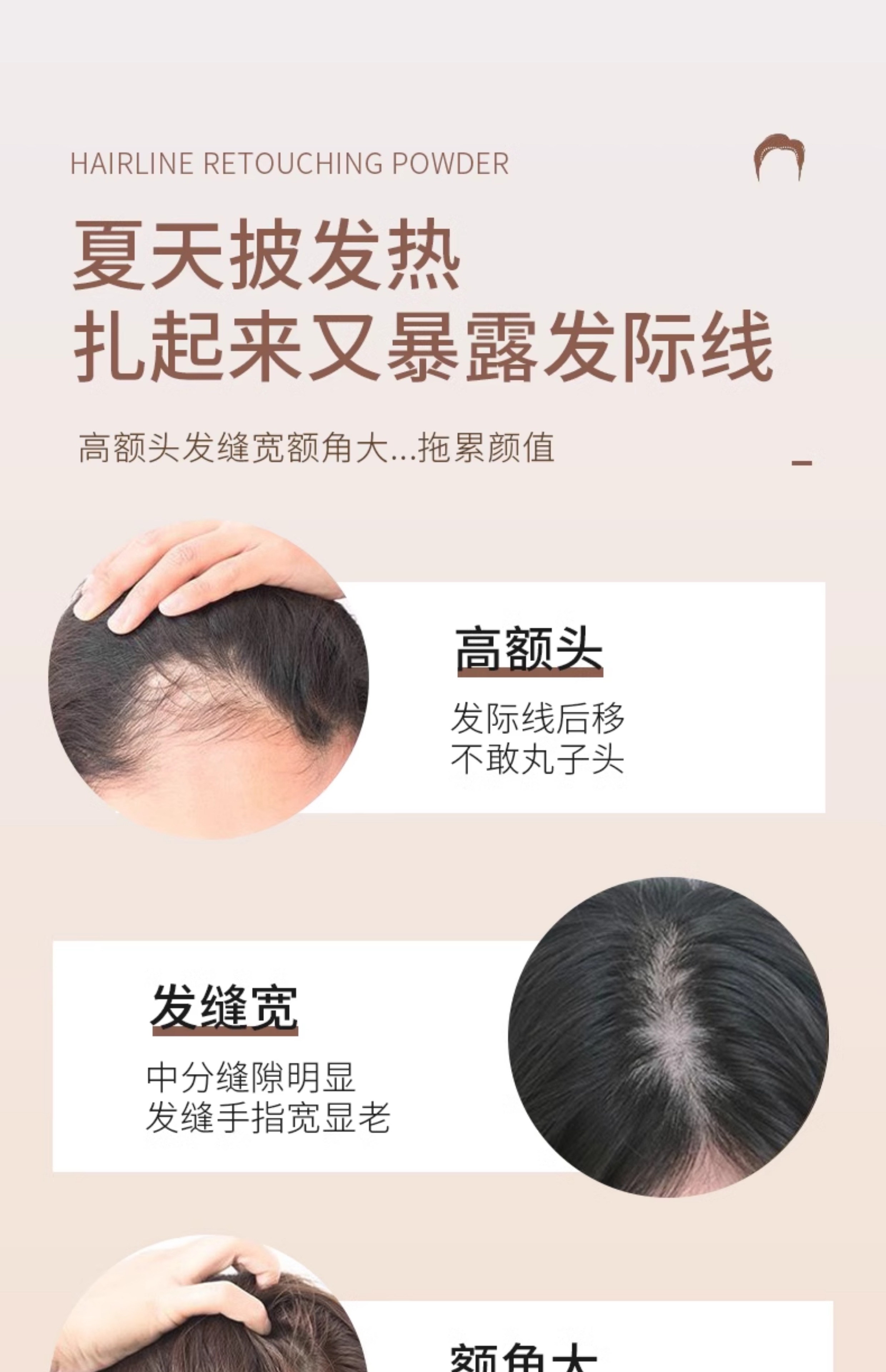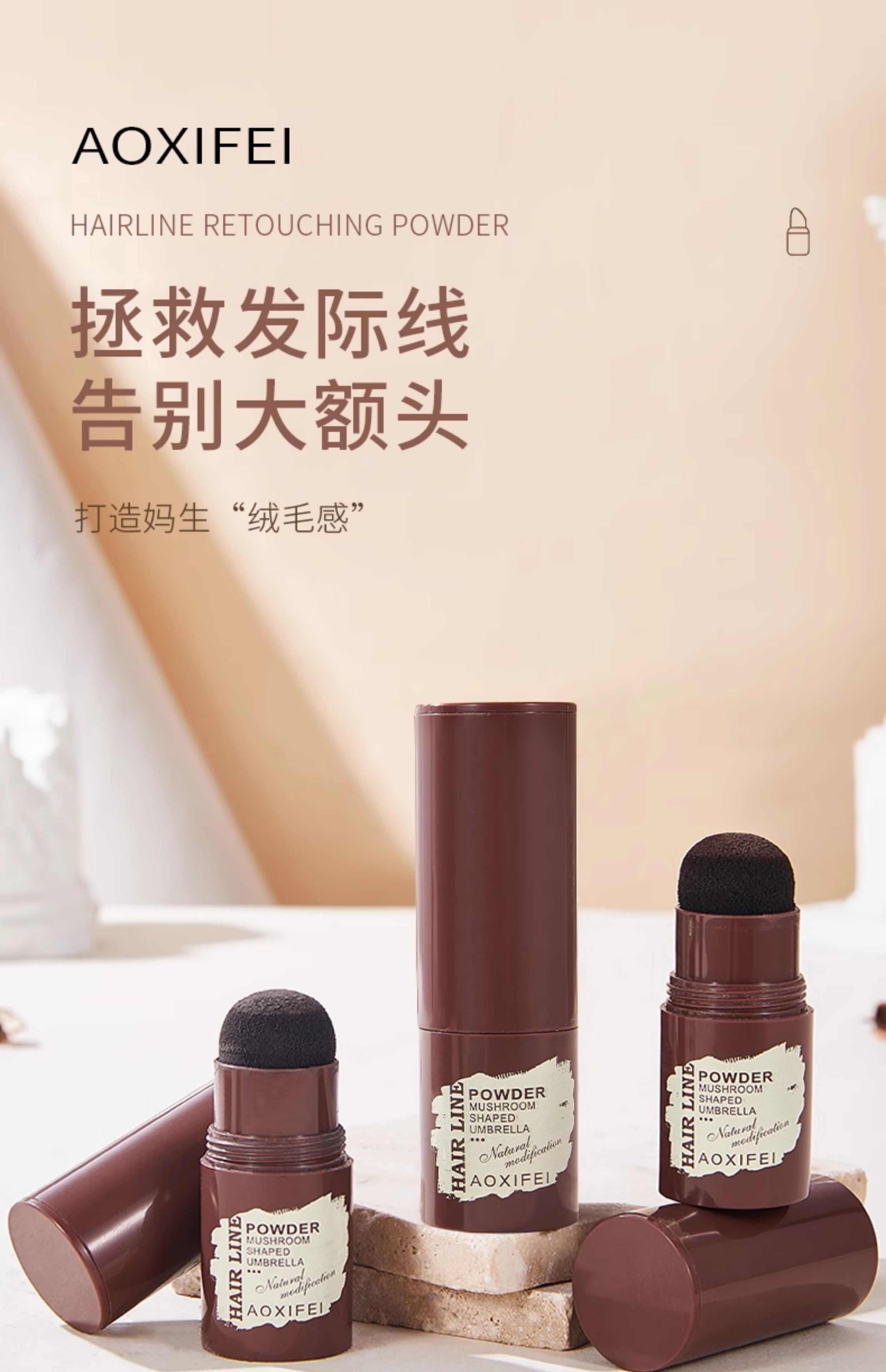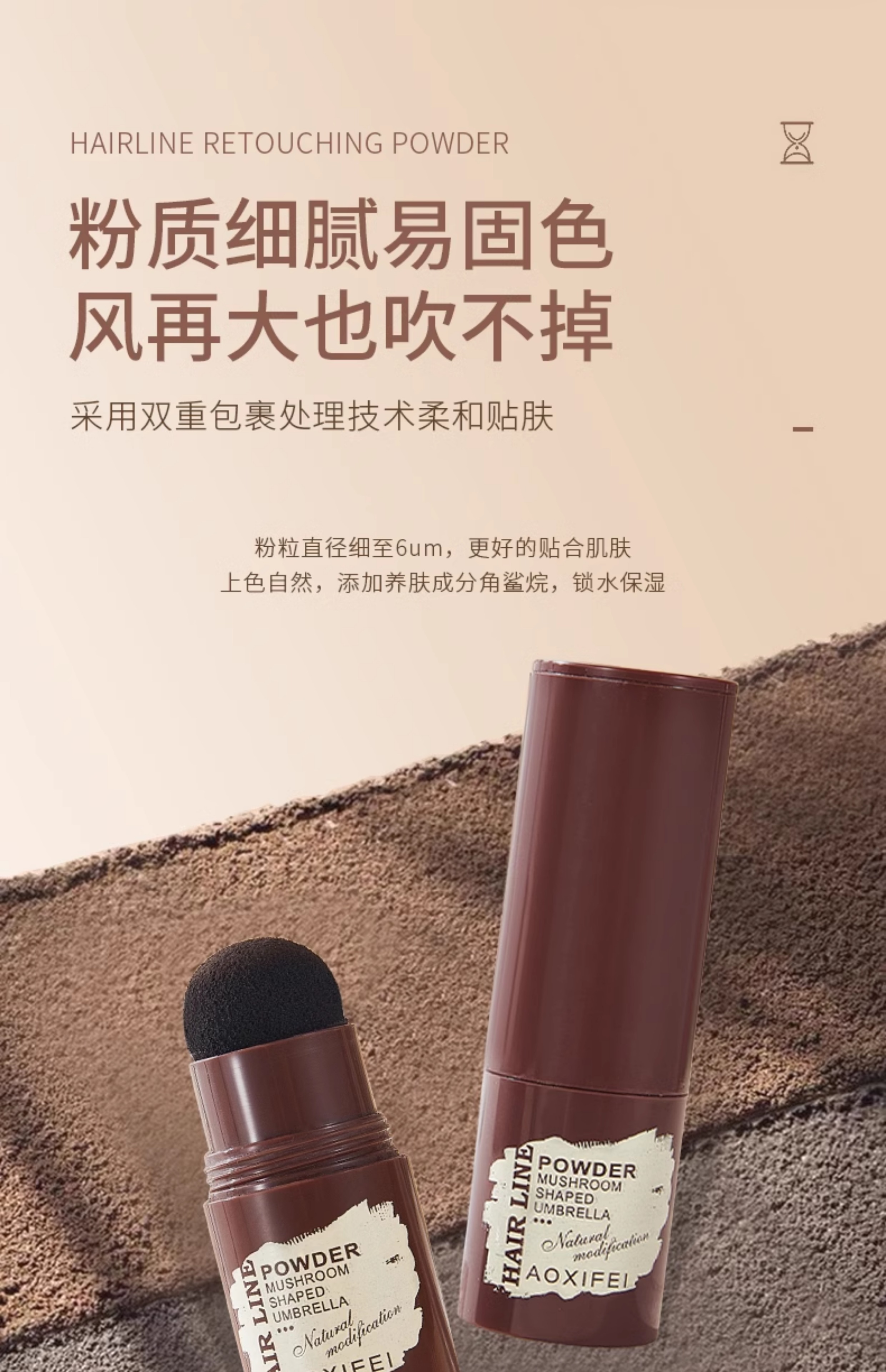 Oshie Fei Japanese hairline powder repair shadow modification filling hair powder cream re-hair artifact concealing high forehead shadow pen for women, pearl black 1 piece, natural black