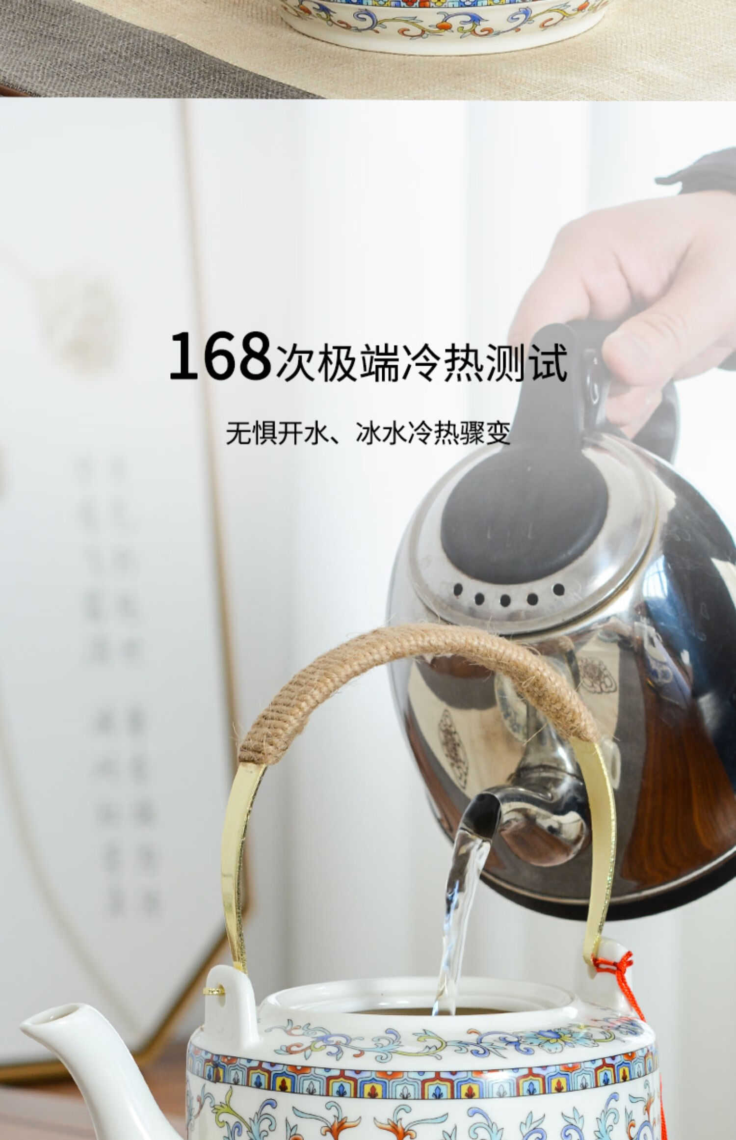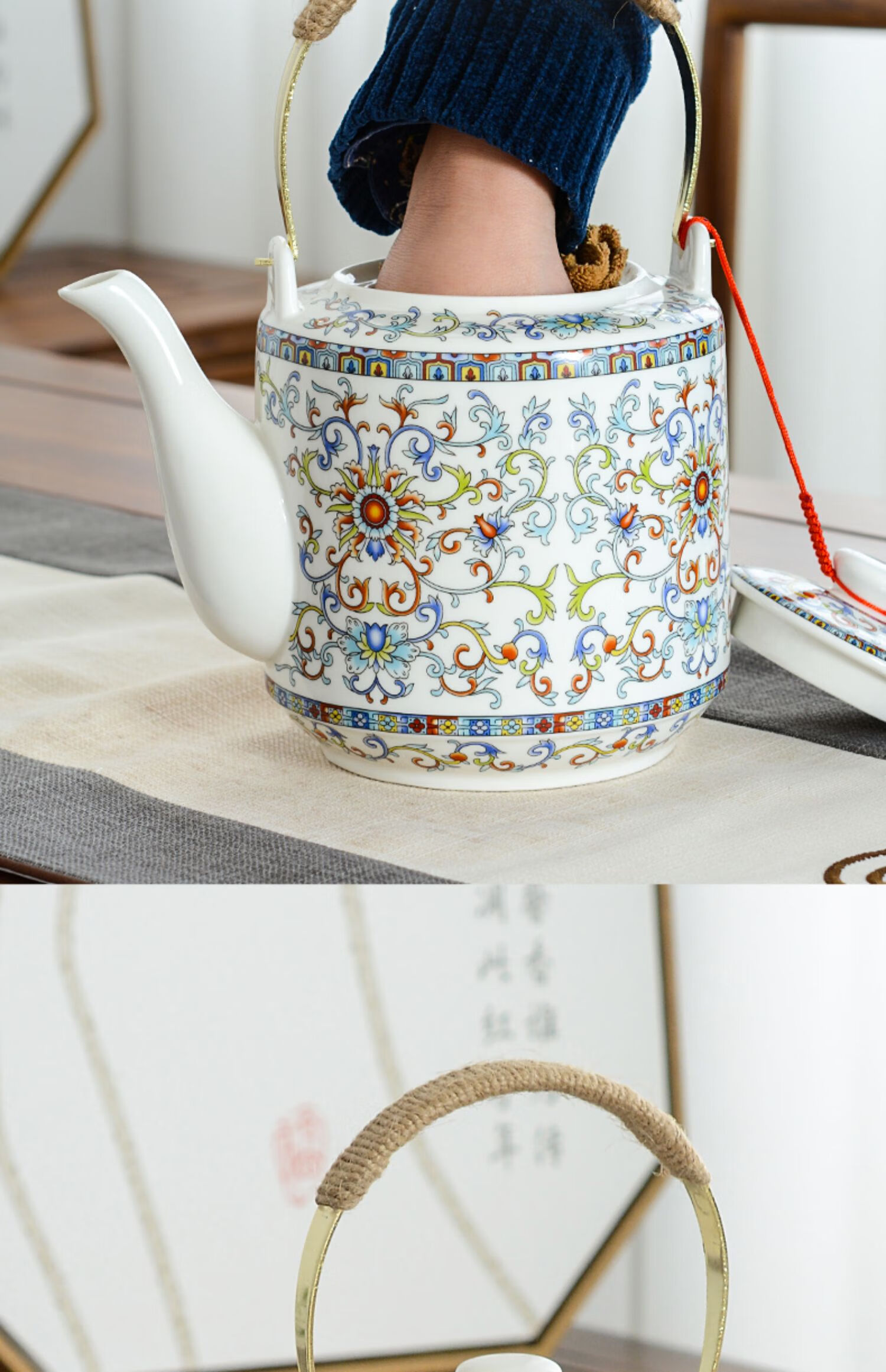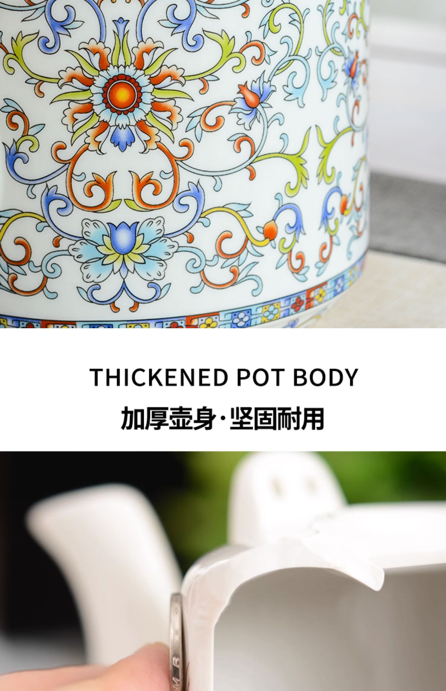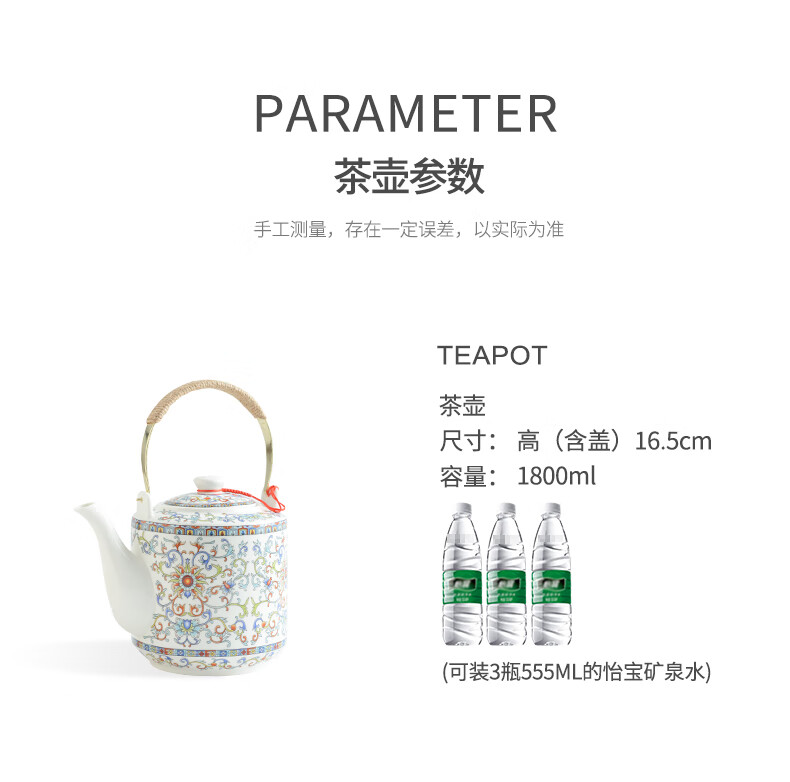 Mengyier Ceramic Cold Kettle Cold Kettle Large Large Capacity Kettle Summer Household Water Large Pot Teapot + 2 Cups 2 Large Double Copper Splendid Landscape 1L 1L