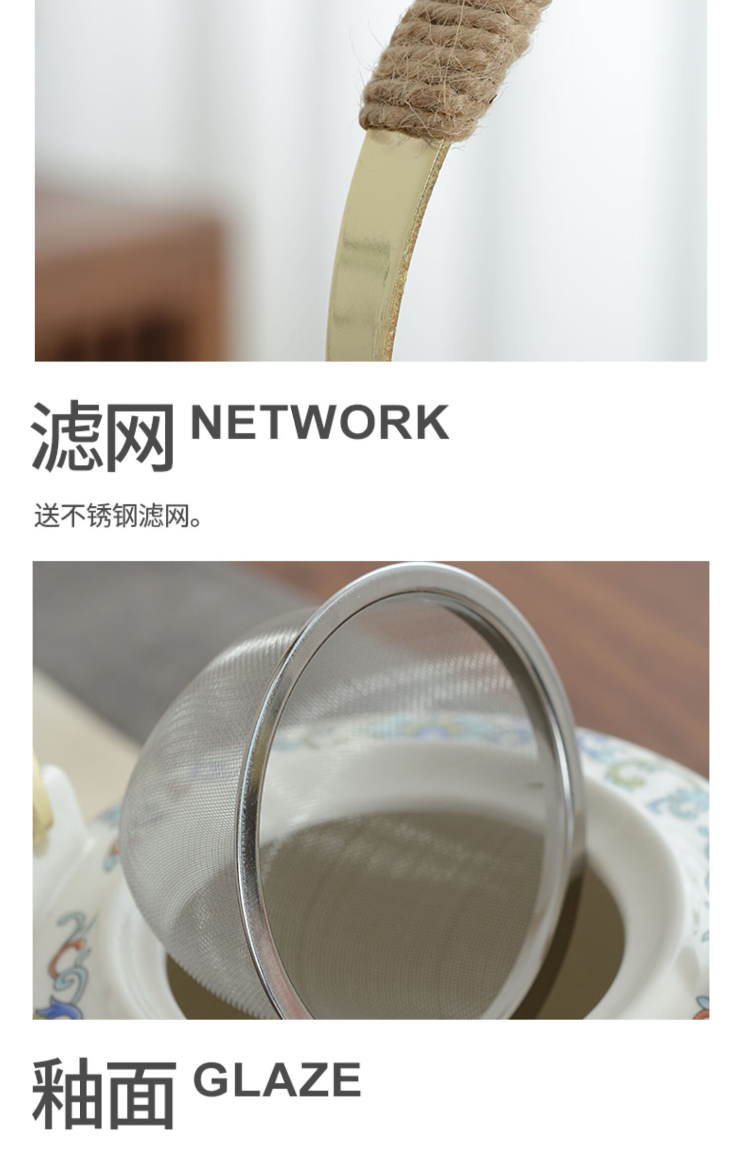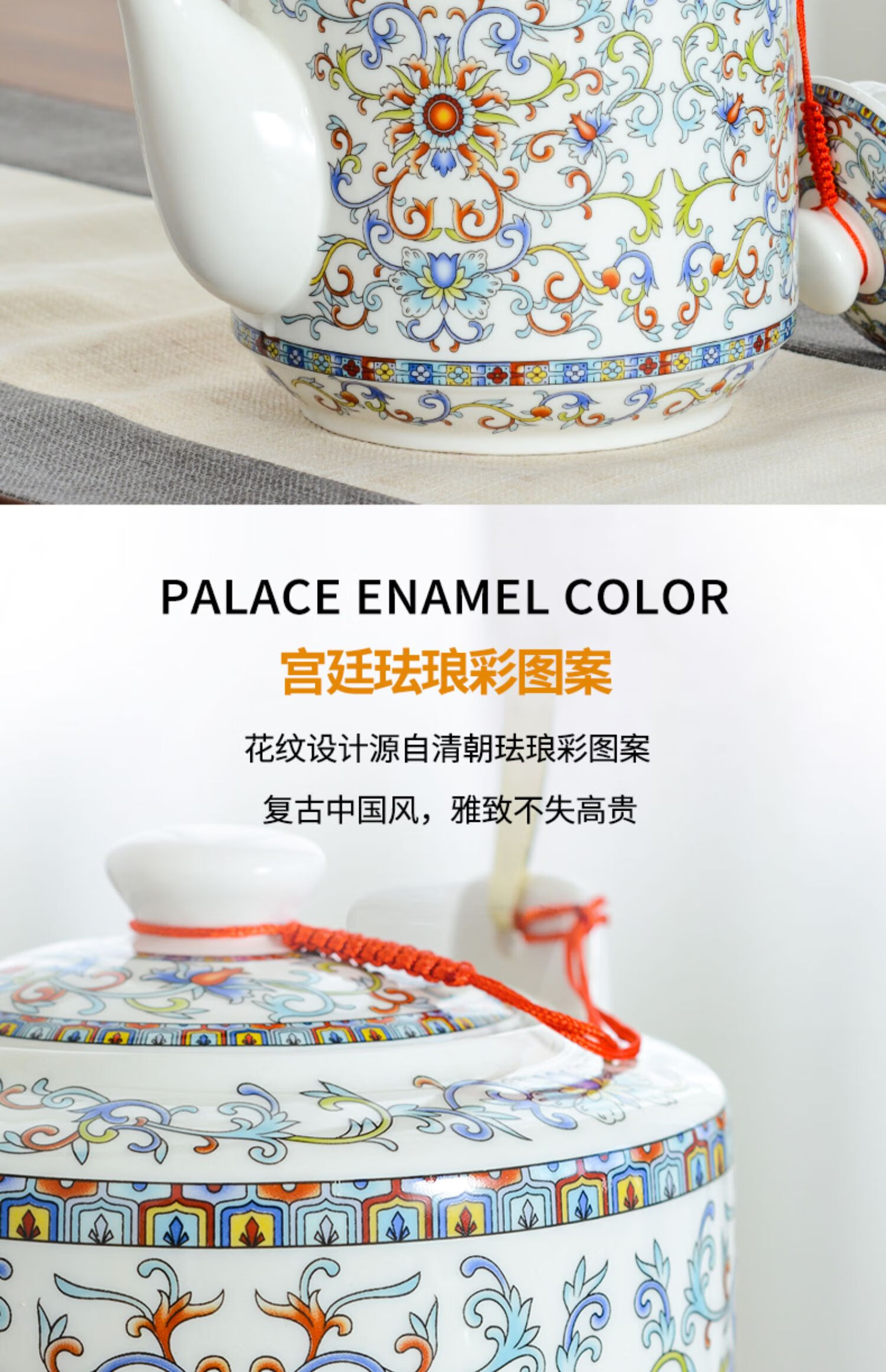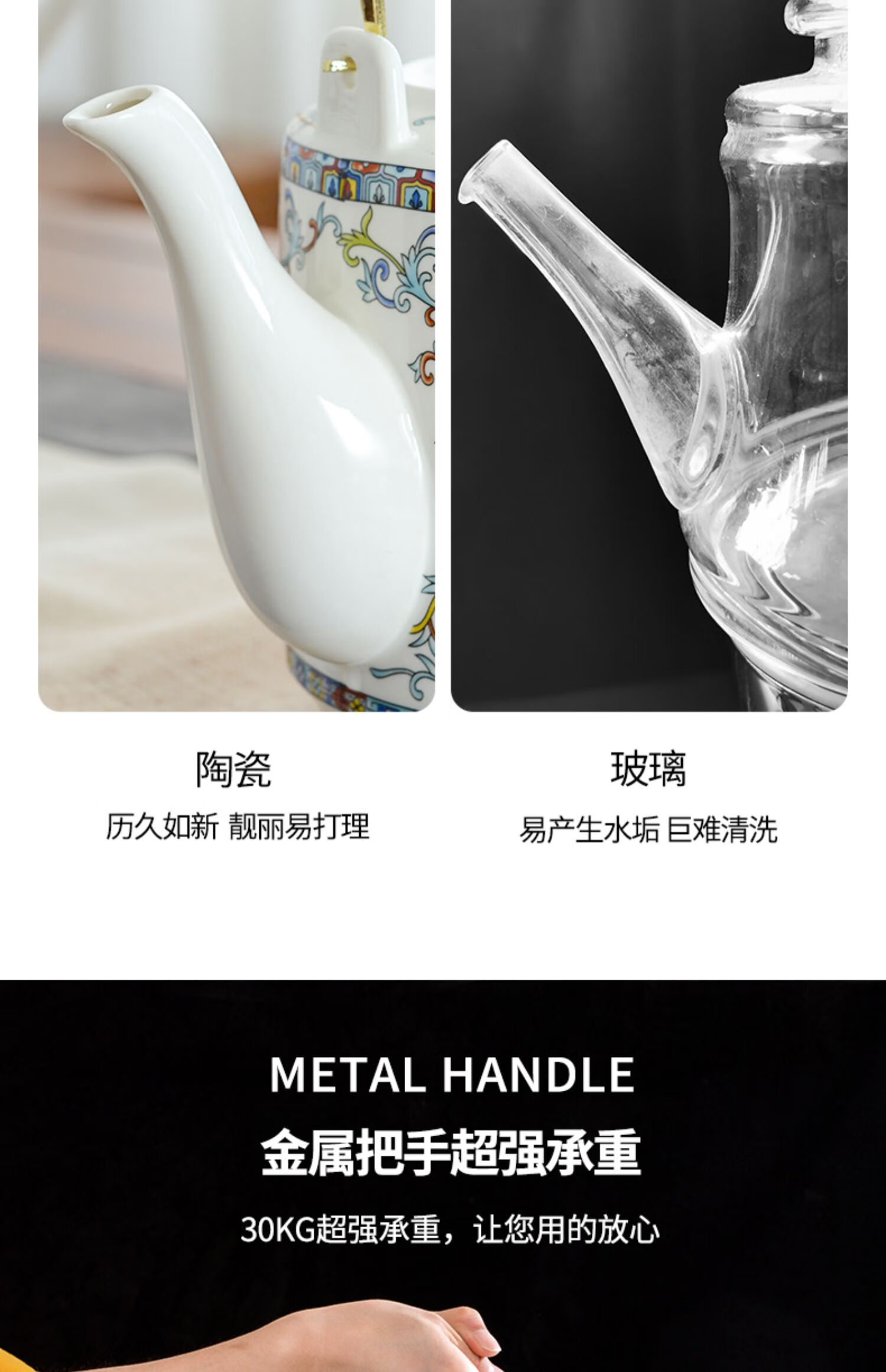 Mengyier Ceramic Cold Kettle Cold Kettle Large Large Capacity Kettle Summer Household Water Large Pot Teapot + 2 Cups 2 Large Double Copper Splendid Landscape 1L 1L