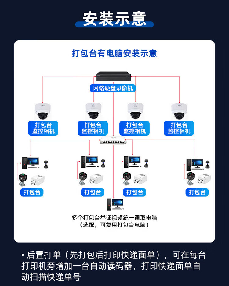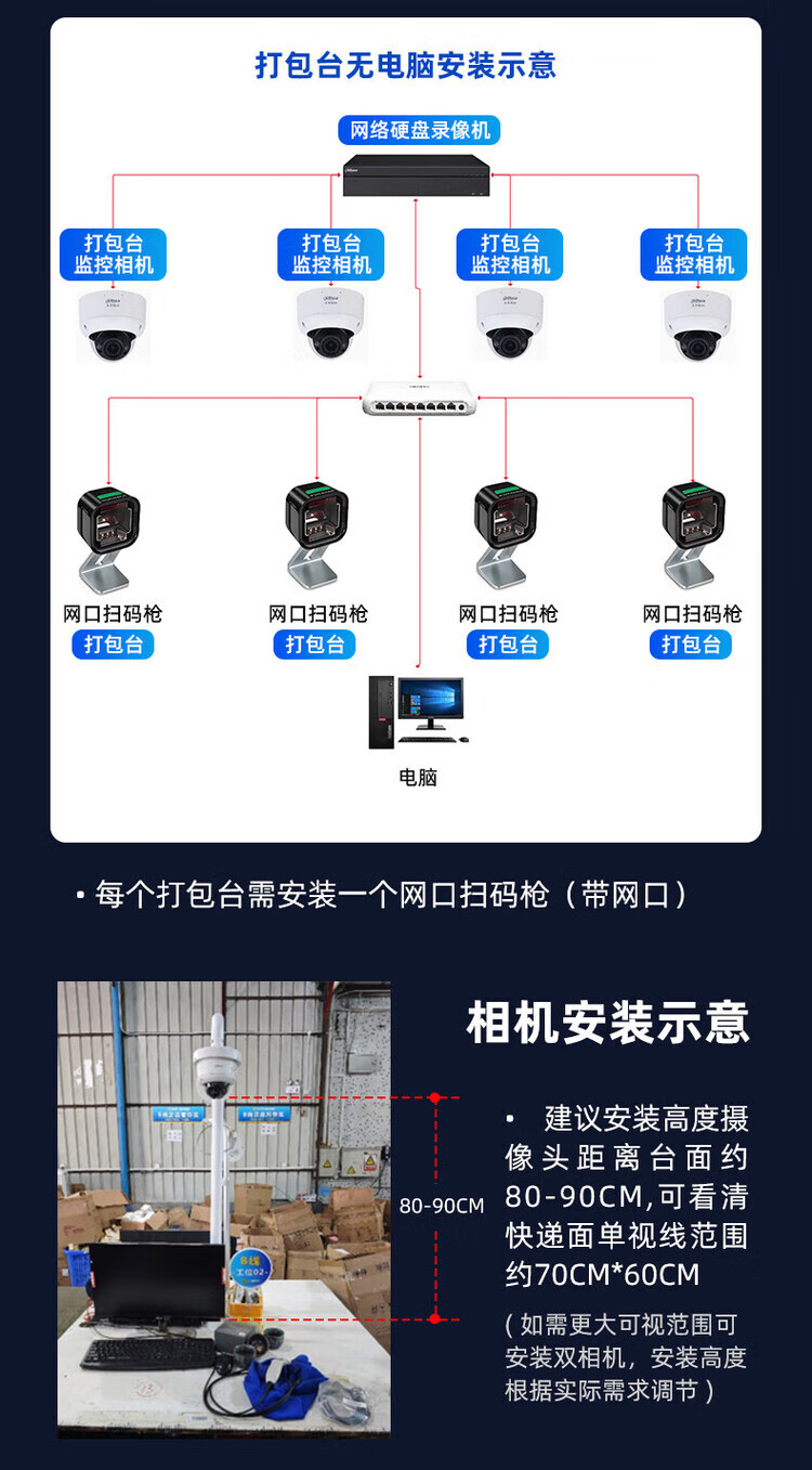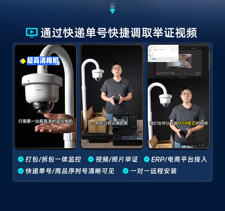 Dahua monitoring solution warehousing logistics express order number evidence checking video security monitoring set 8 million high-definition electric zoom intelligent tracking form identification POE for video recorder a packaging station (camera + video recorder + video traceability software 2-year package) does not include hard disk