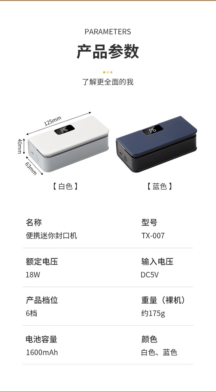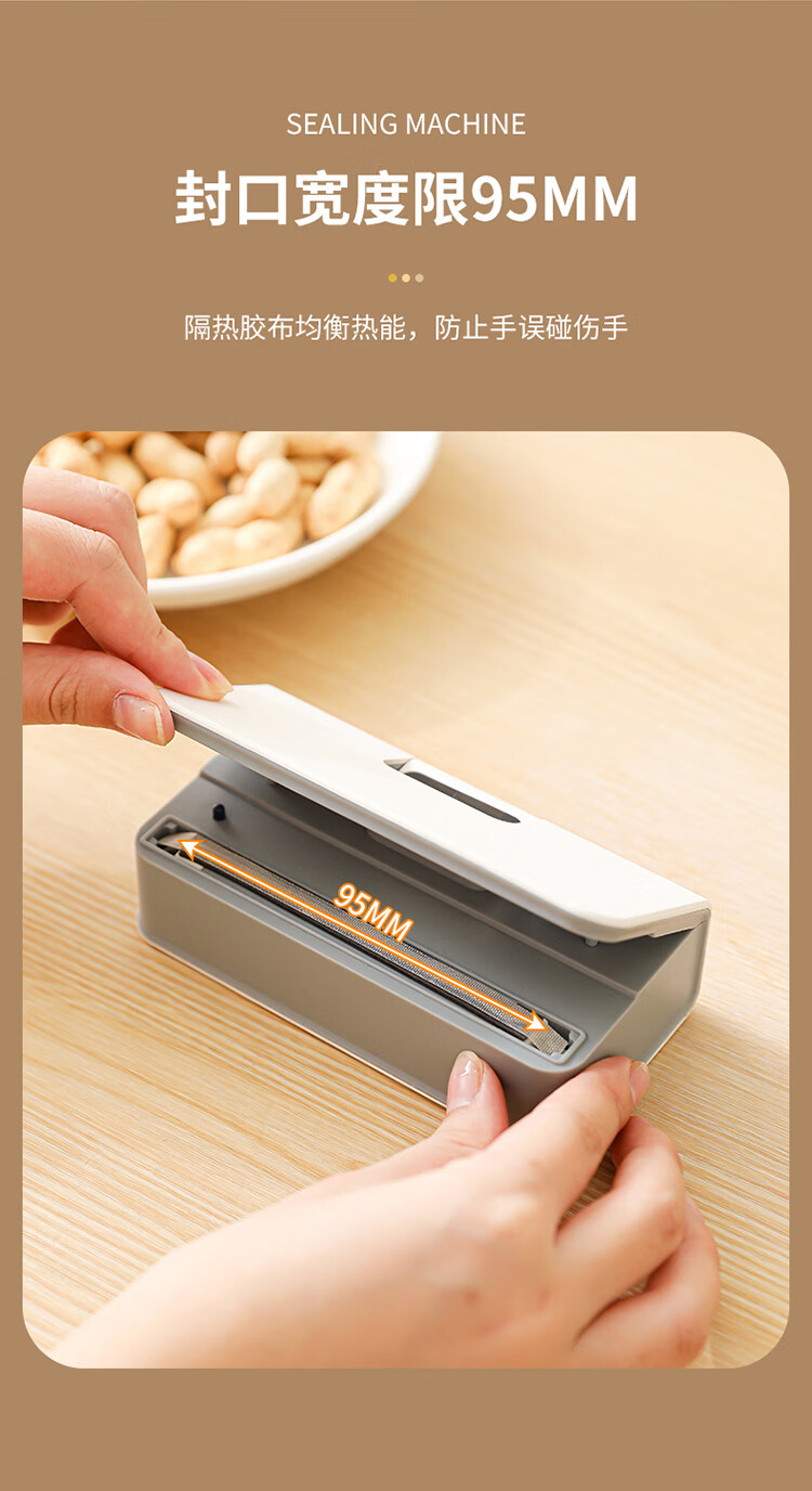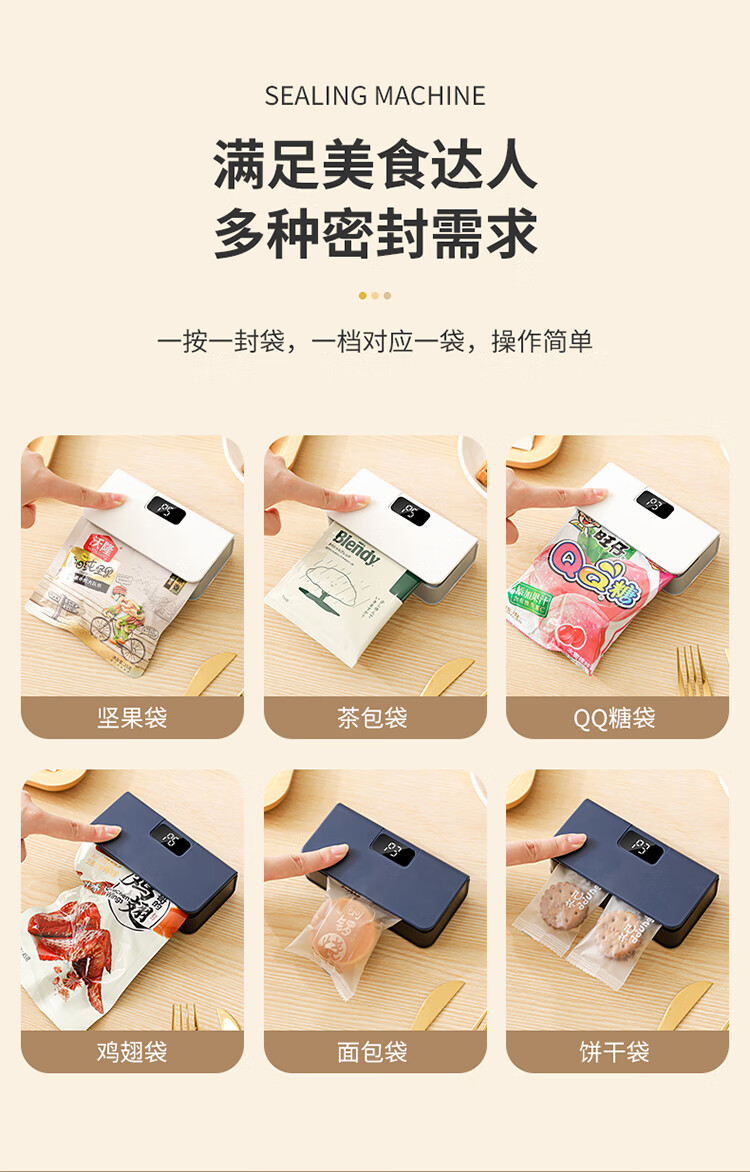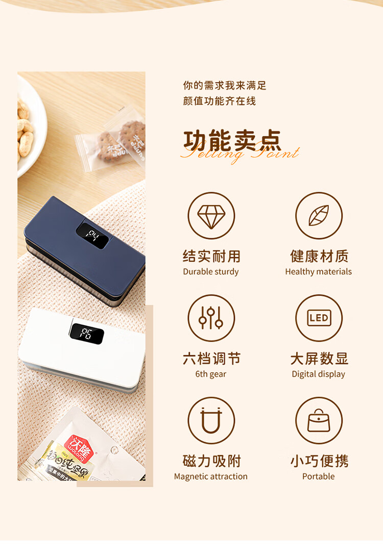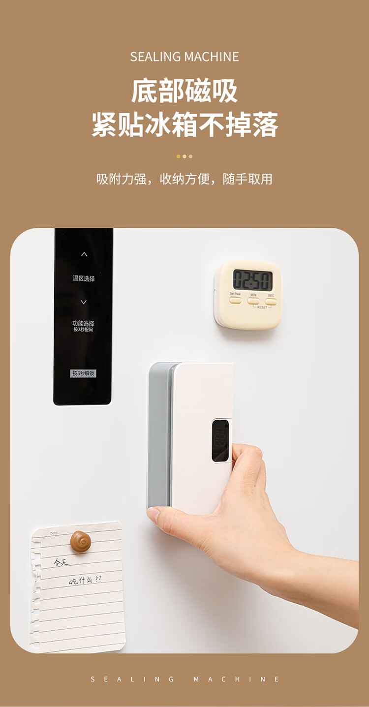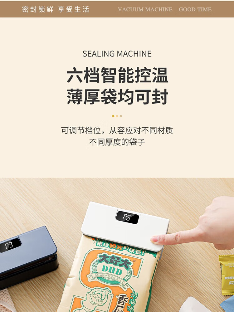 Aonian rechargeable sealing machine household mini snack sealer plastic bag food preservation bag heat sealing machine artifact white 6-speed temperature control + digital display + magnetic suction + cutting