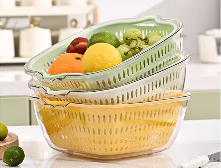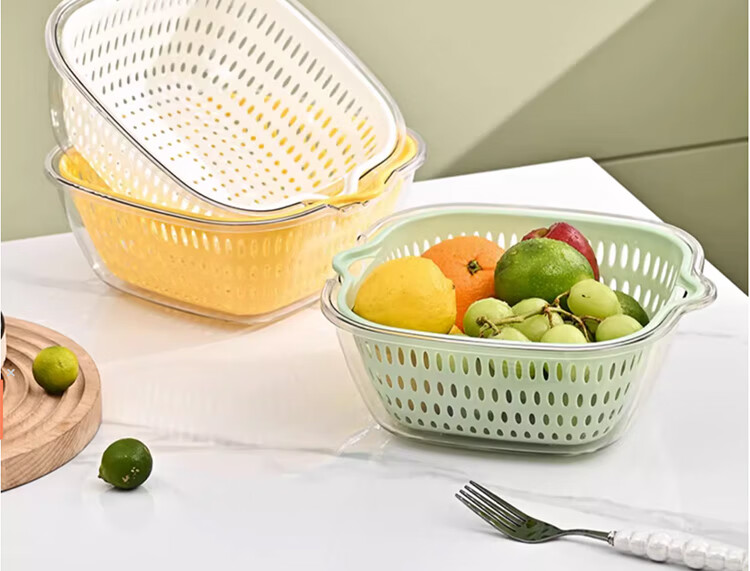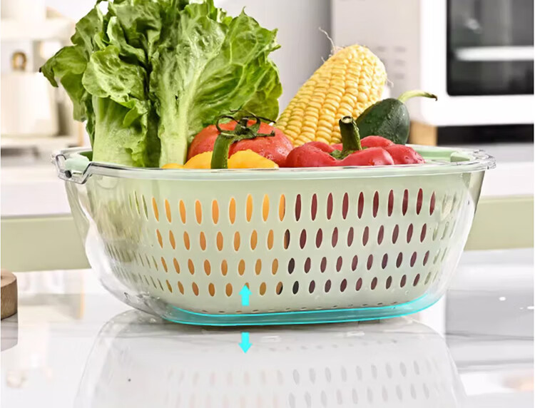 WELLMEET sink drain basket food-grade kitchen water filter artifact new household plastic vegetable basket double-layer fruit plate mint green large, medium and small 3-piece set recommended by the store manager food-grade PET/drain and mildew-proof