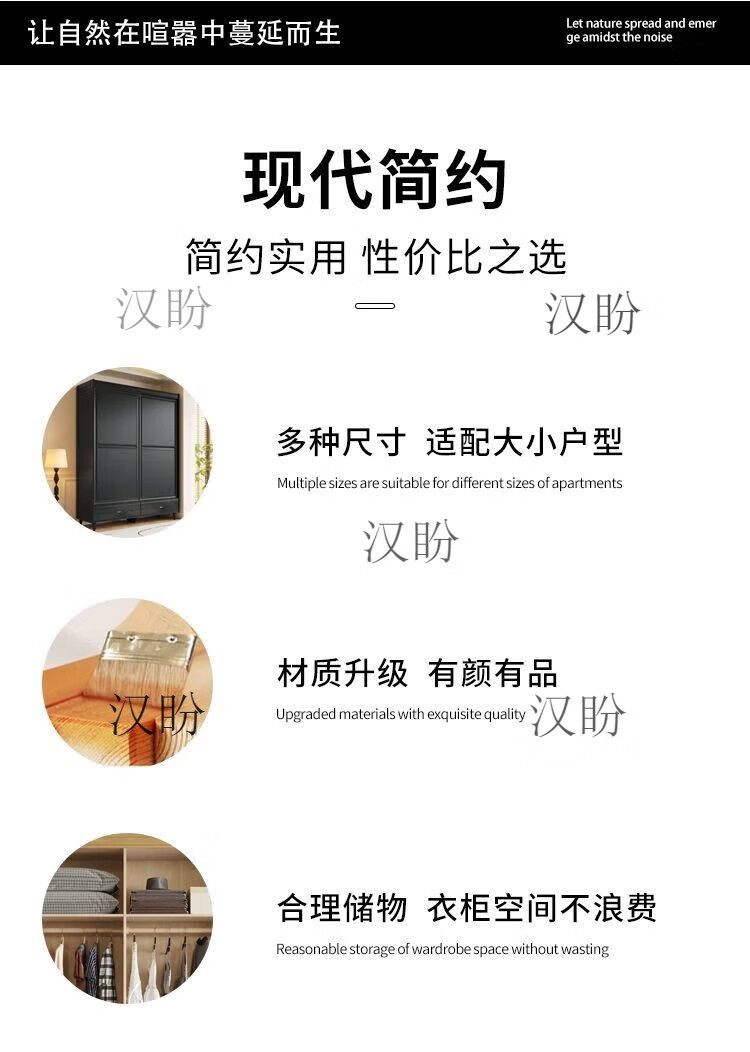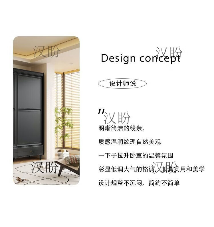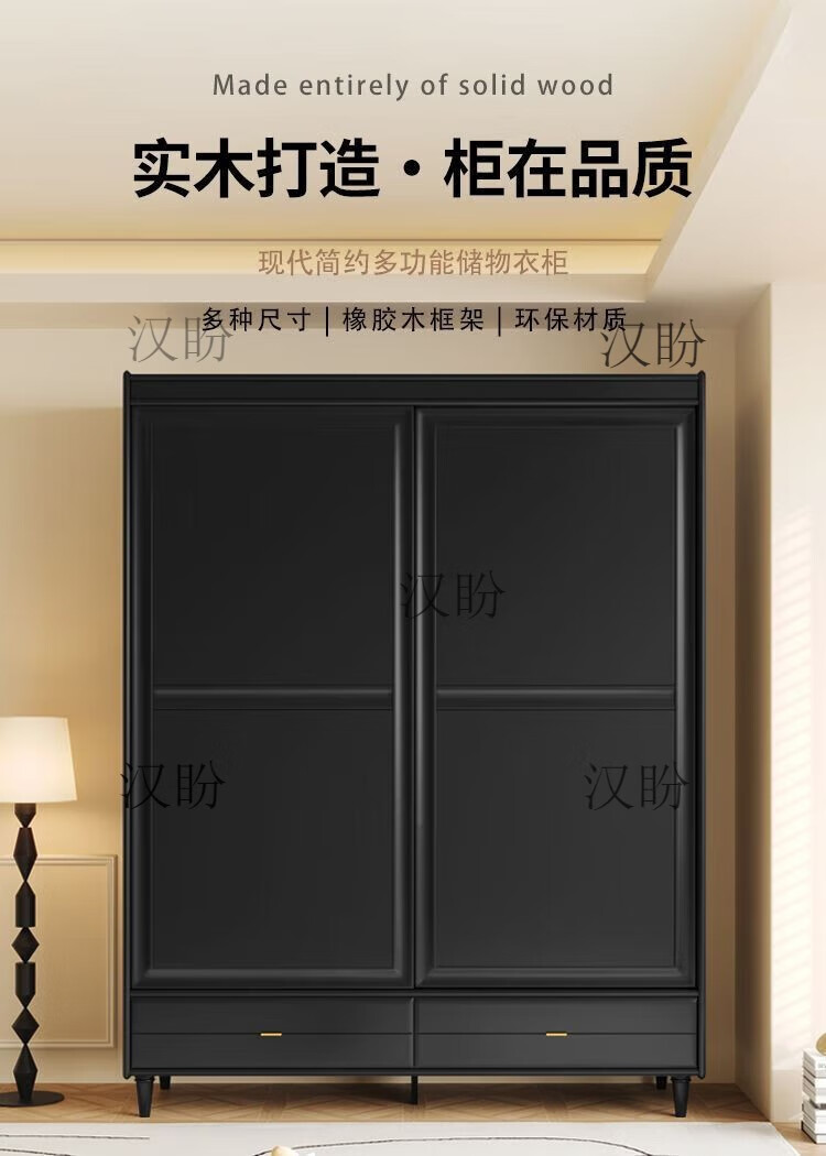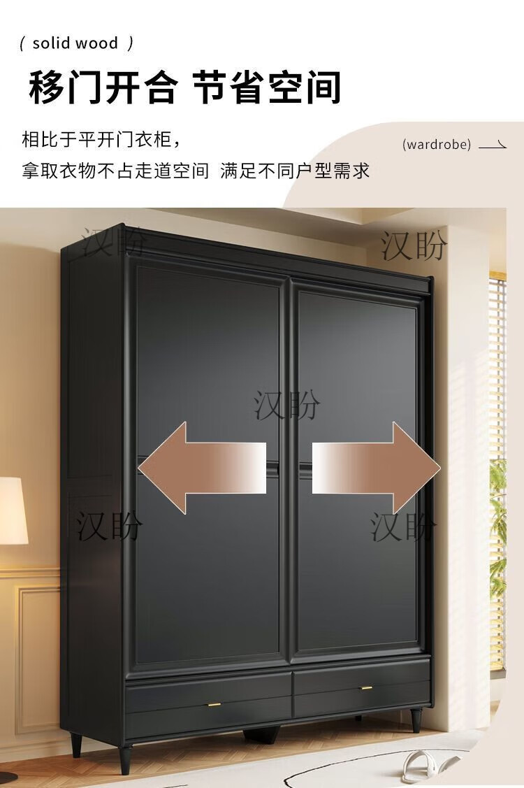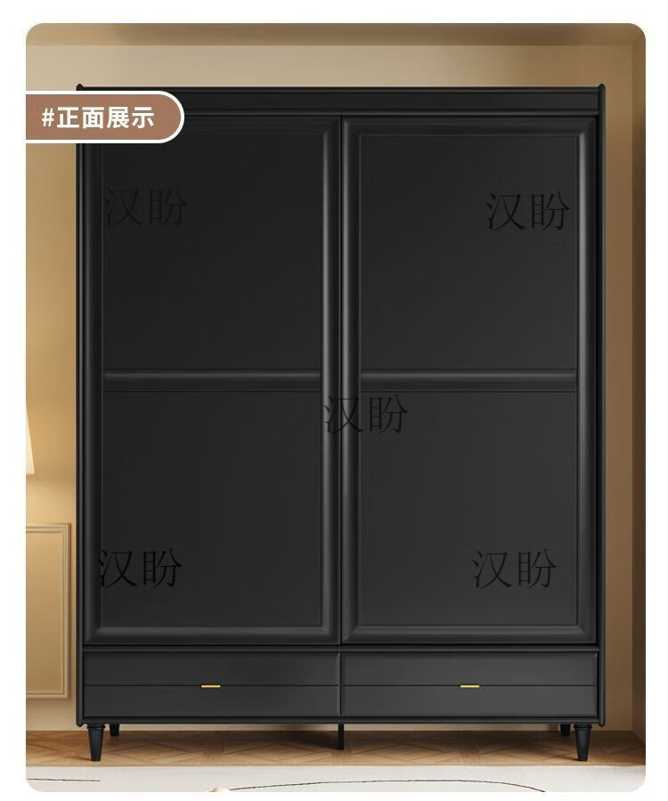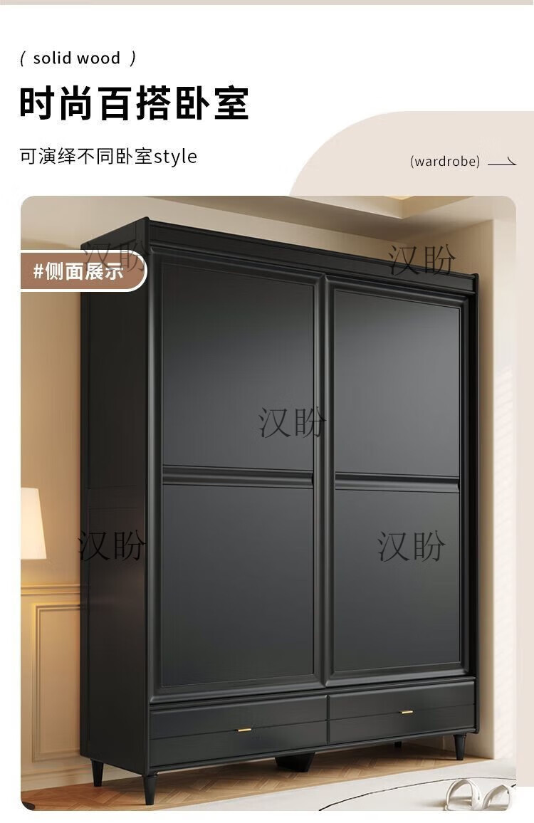Hanpan retro wardrobe retro style black modern simple solid wood home bedroom sliding door sliding door wardrobe light luxury 178 two-door sliding (installation included)
