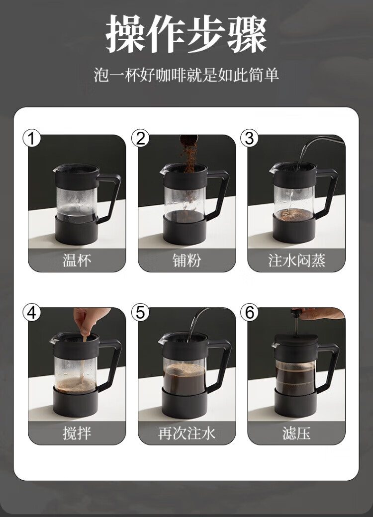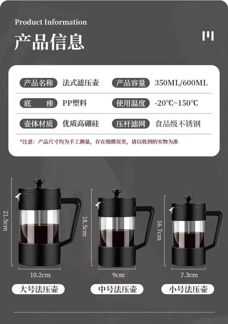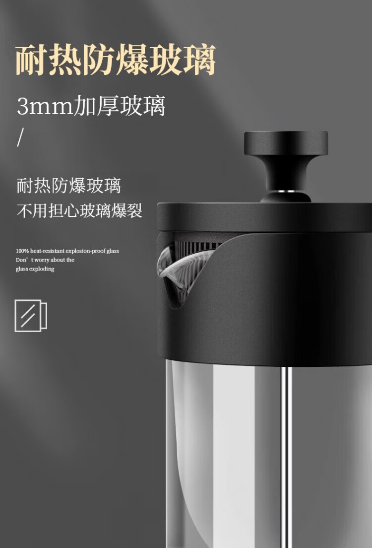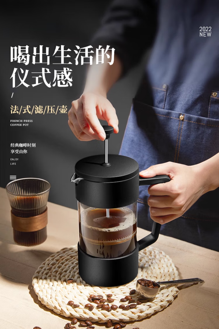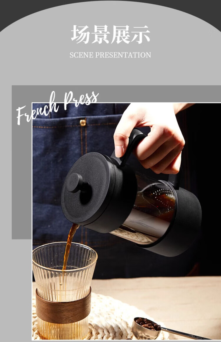 WCZ German French Press Pot Home Coffee Filter Tea Maker Set Cold Brew Coffee Filter Cup Flagship Model (Add Coffee Powder Measuring Spoon) 350ml