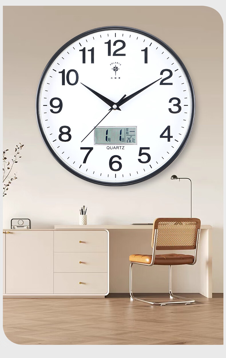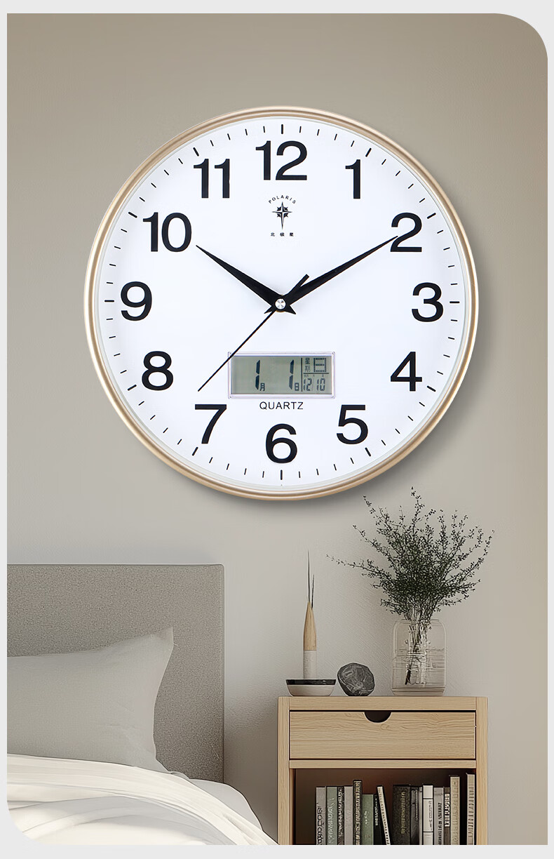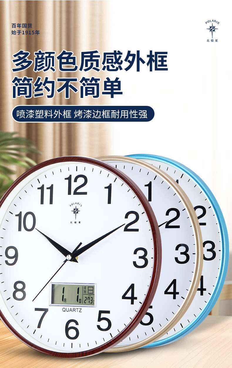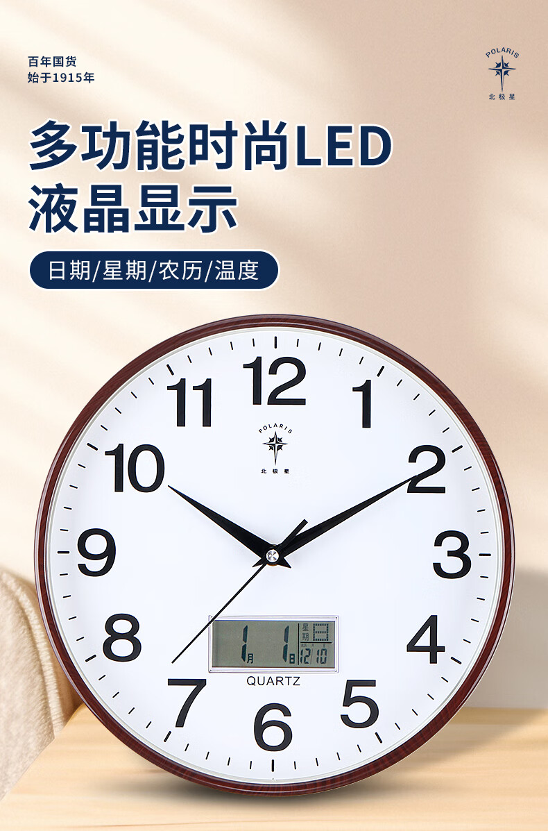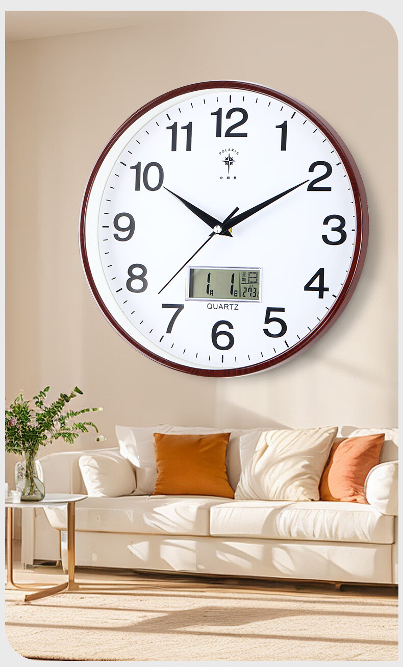 Polaris (POLARIS) clock wall clock living room household silent clock modern wall-mounted simple wall clock 2025 new quartz clock silent movement calendar model-wood grain color 12 inches (diameter 30.5 cm)