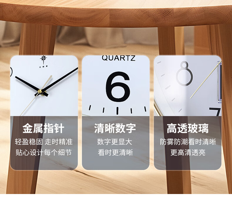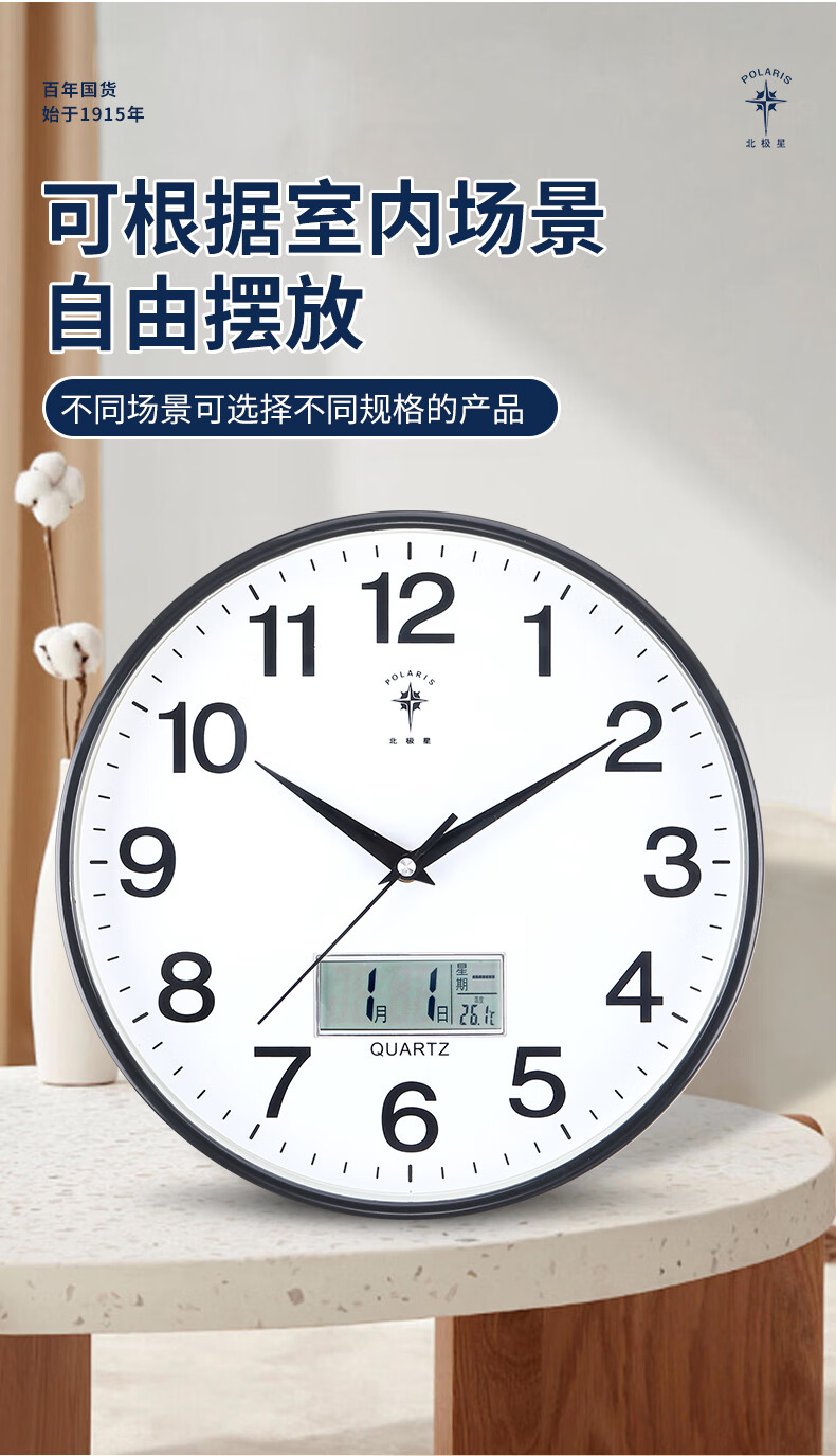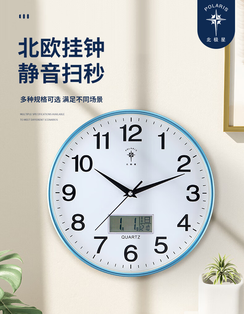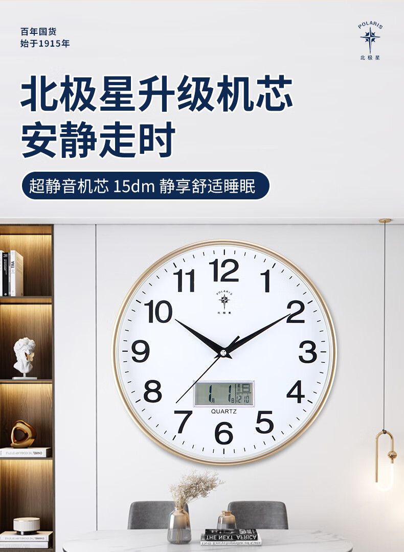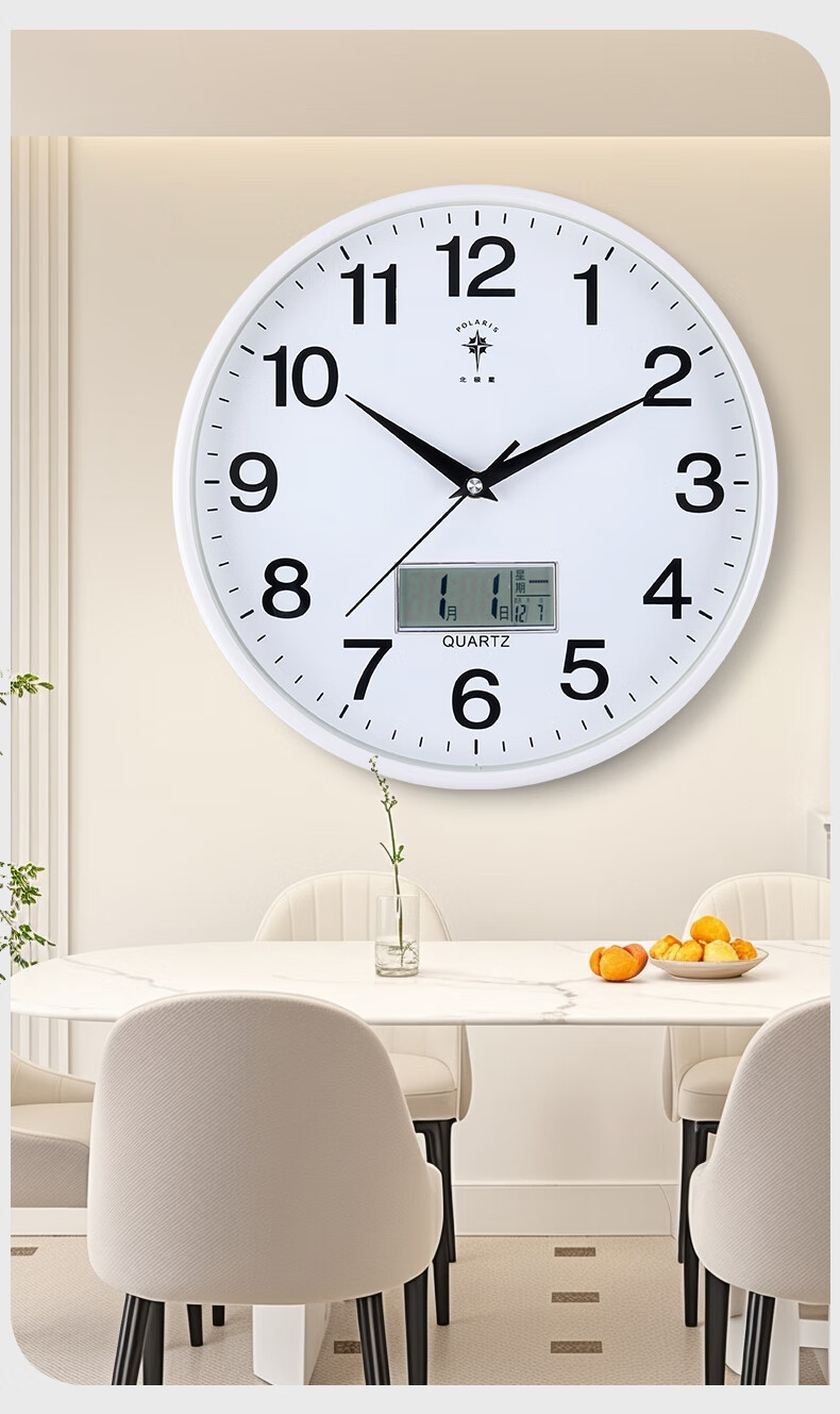 Polaris (POLARIS) clock wall clock living room household silent clock modern wall-mounted simple wall clock 2025 new quartz clock silent movement calendar model-wood grain color 12 inches (diameter 30.5 cm)