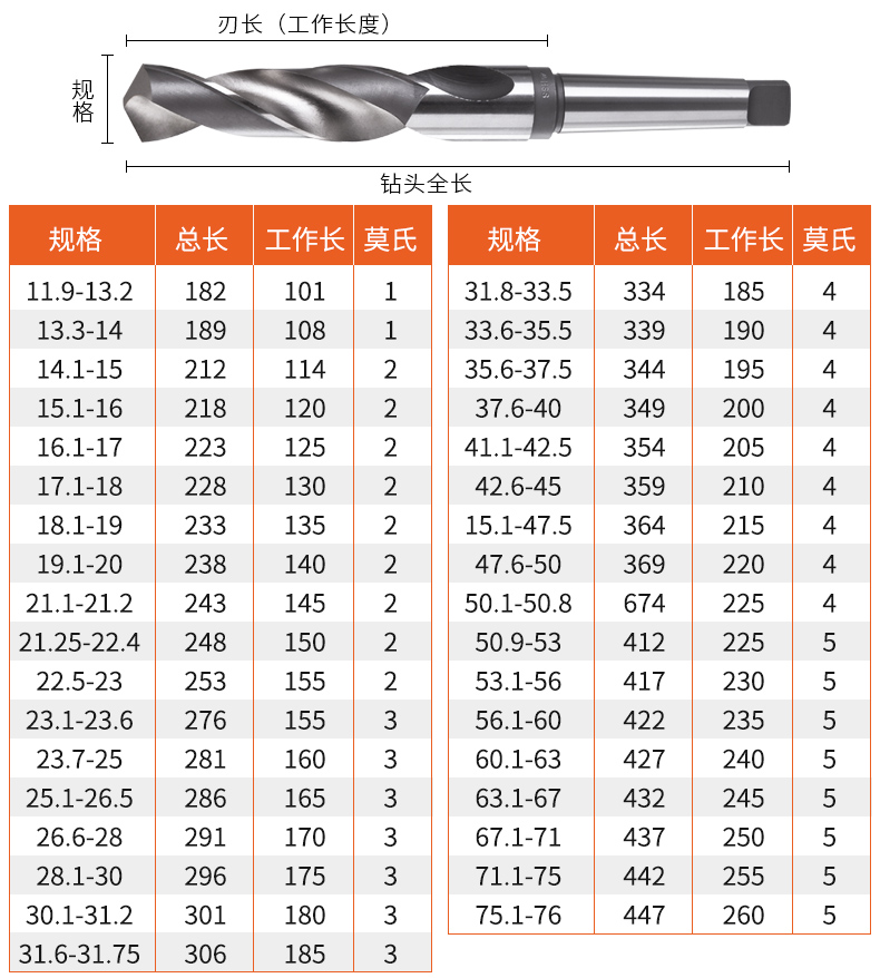 Taslon cone drill cone shank drill bit cone shank twist drill high-speed steel twist drill reaming drill bit 34-57 34/34.5mm