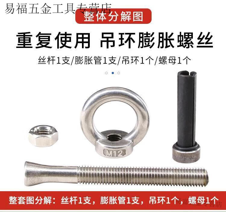 An Junsheng hanging mother lifting ring reusable expansion screw stainless steel removable screw expansion tube expansion M12 small loach hanging ring three pieces 1 piece