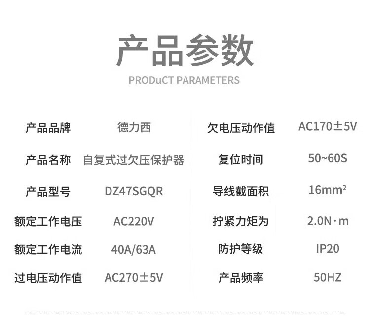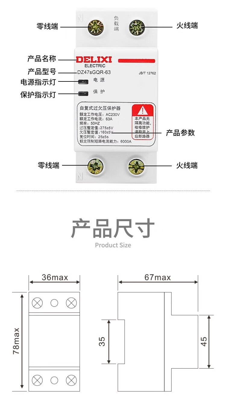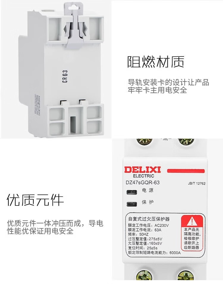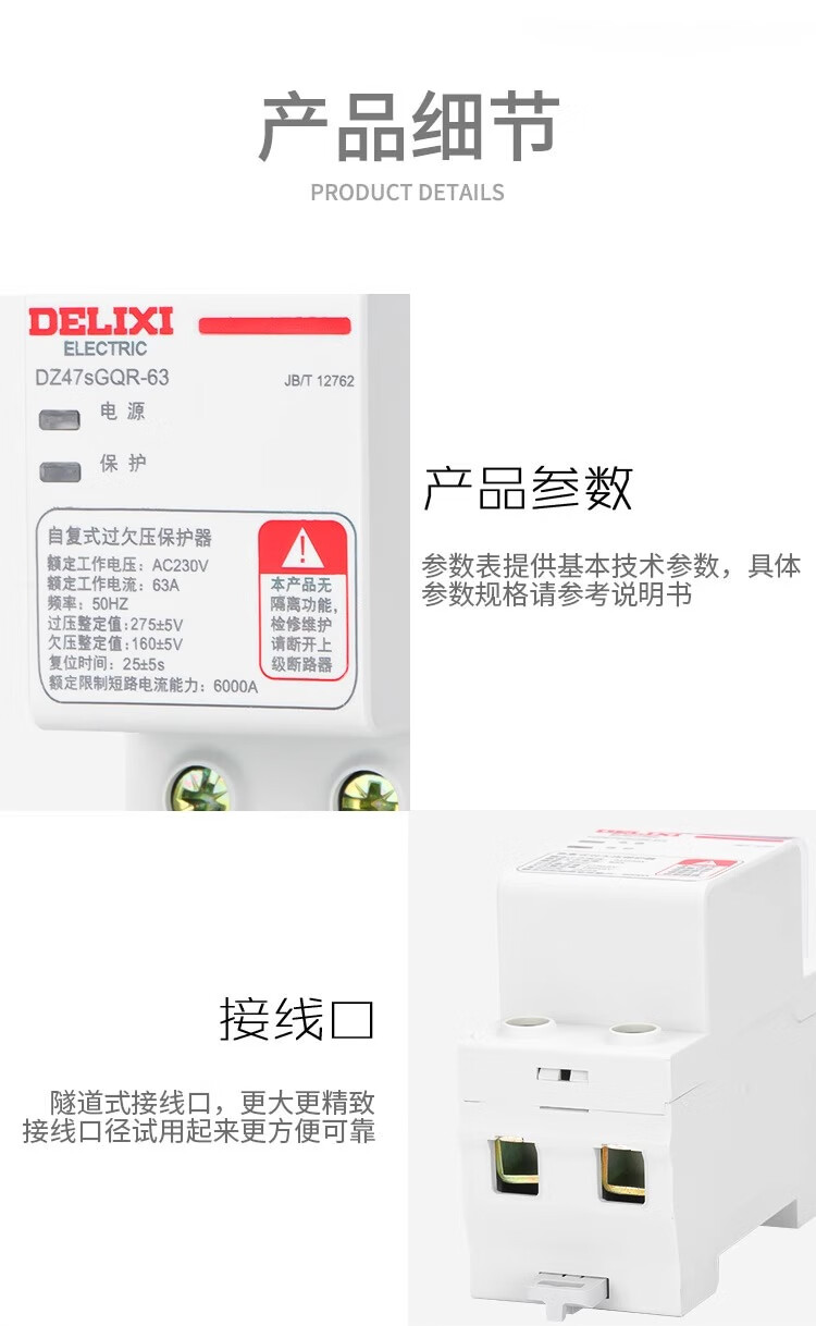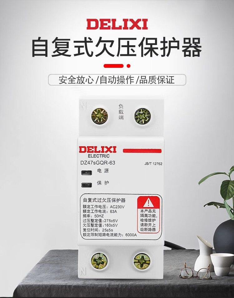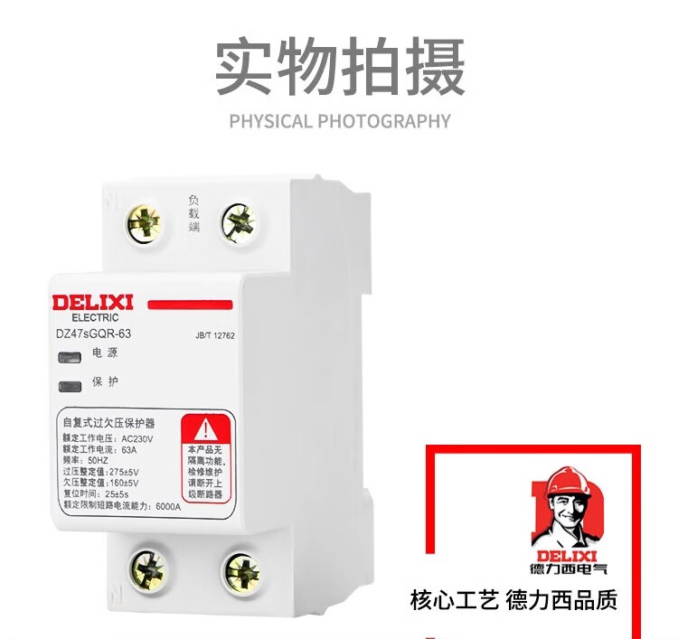 Delixi self-restoring over-voltage and under-voltage protector DZ47SGQR bottom in and top out 1P+N63a household 40a under voltage protection DZ47sGQR bottom in and top out 63A