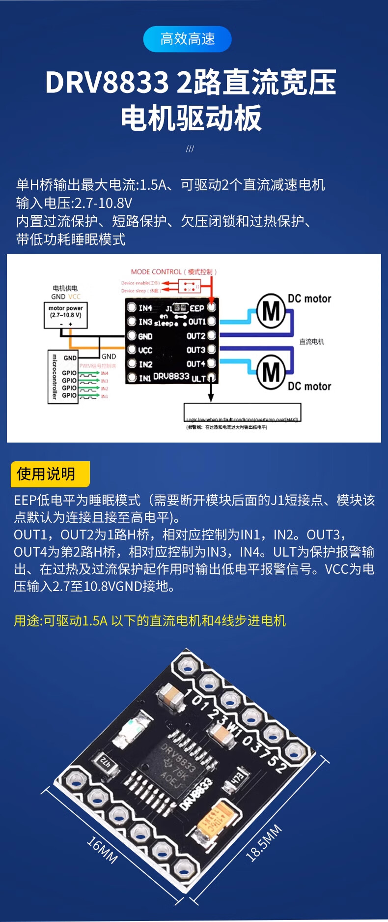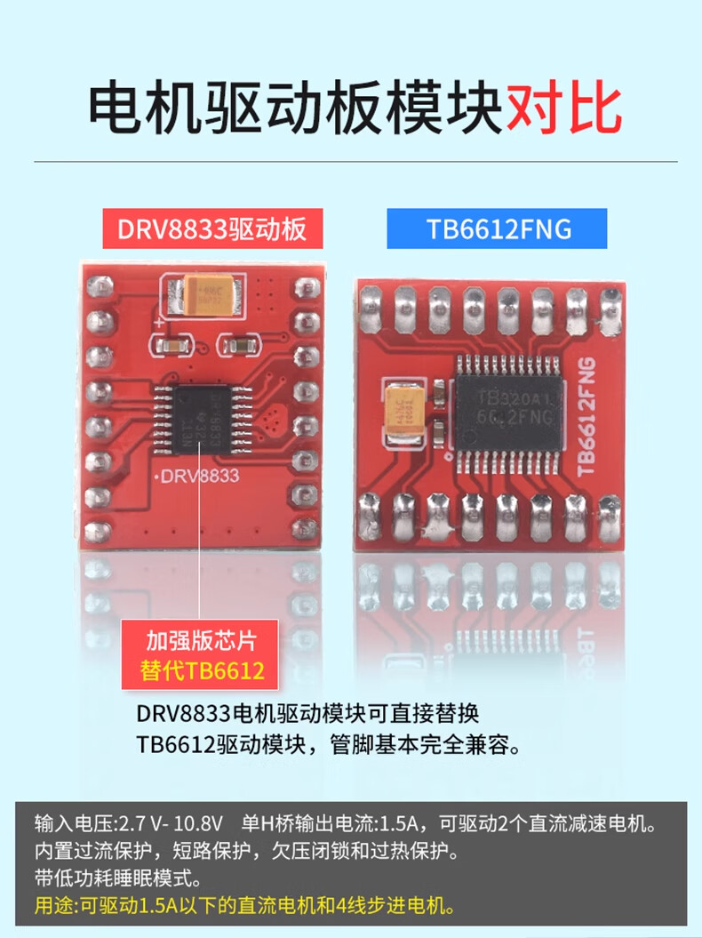 DZQJ TB6612FNG motor driver board module L298N DC motor driver module DRV8833 motor driver DRV8833 driver board (replaces TB6612) welded