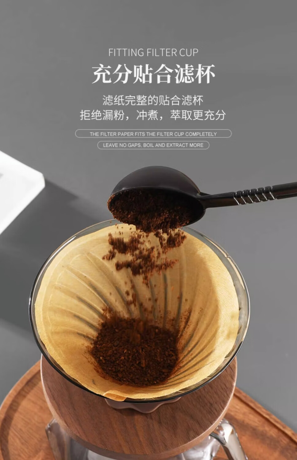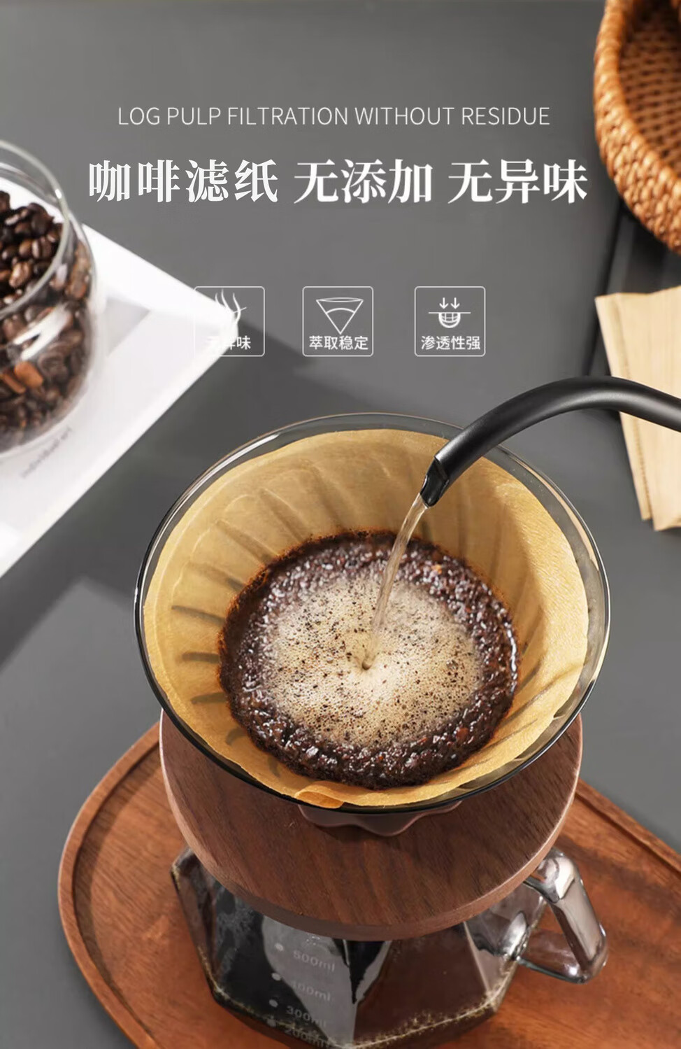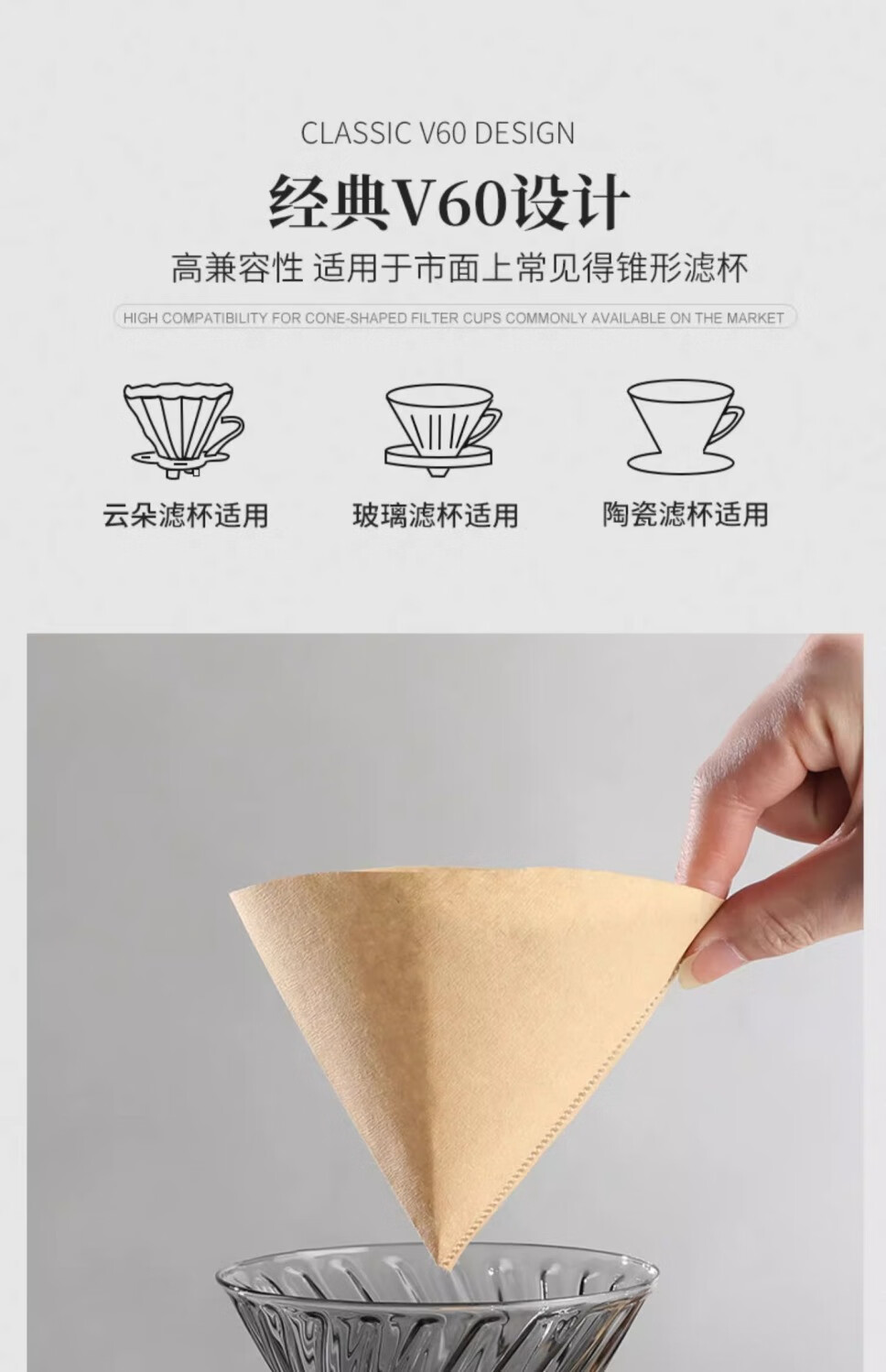 Hand-brewed coffee filter paper, household hand-ground coffee fan-shaped conical V-shaped non-dyed puree drip filter paper, large size 100 sheets