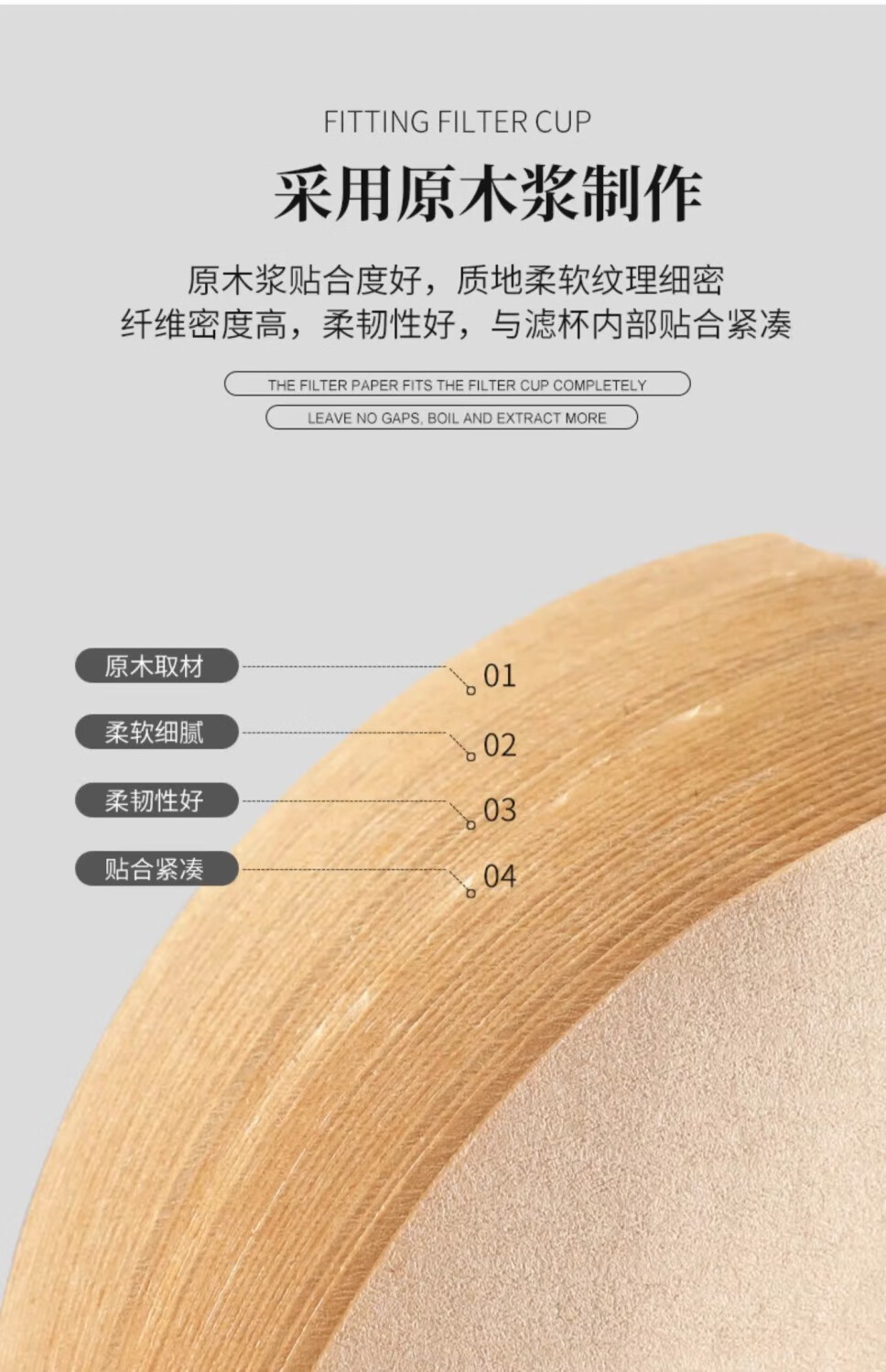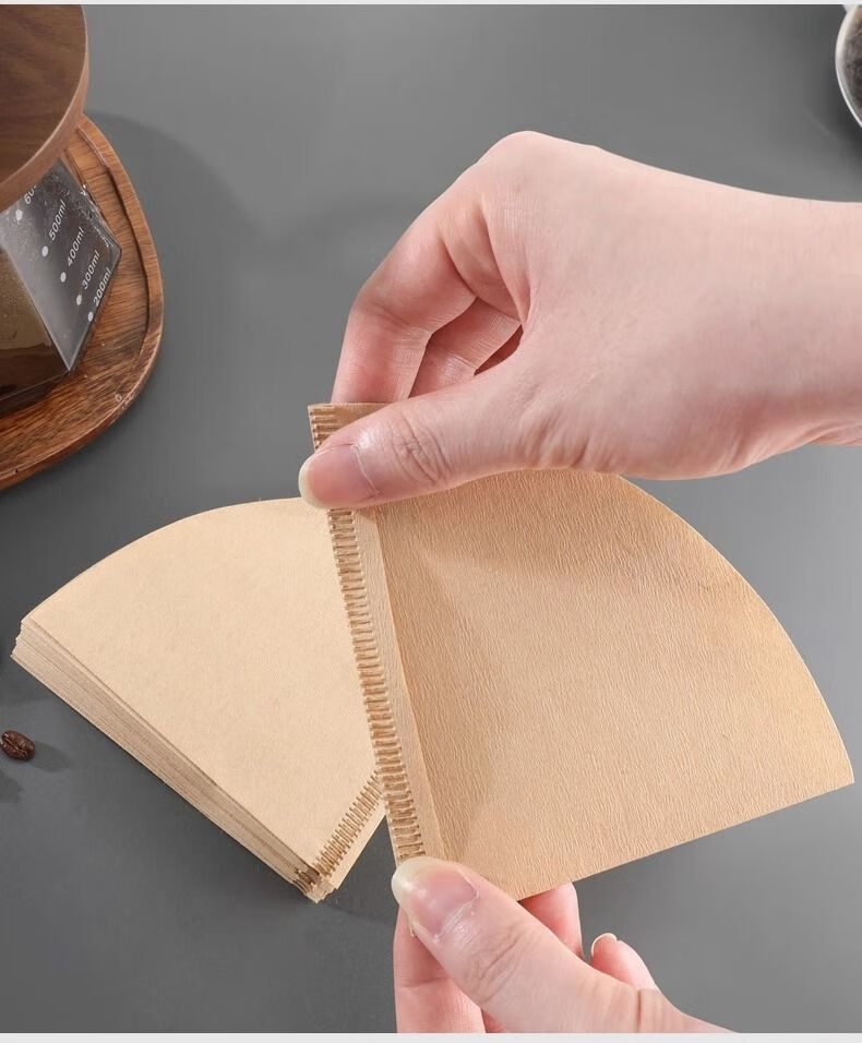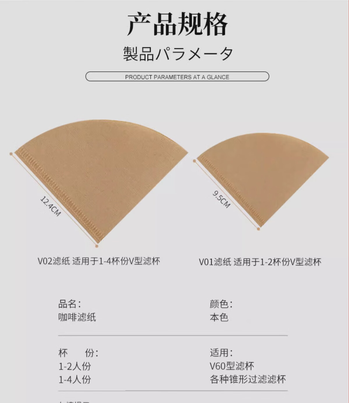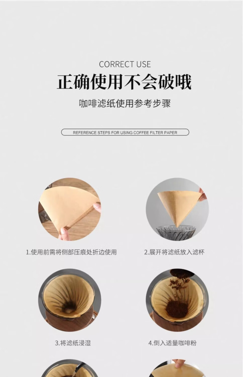 Hand-brewed coffee filter paper, household hand-ground coffee fan-shaped conical V-shaped non-dyed puree drip filter paper, large size 100 sheets