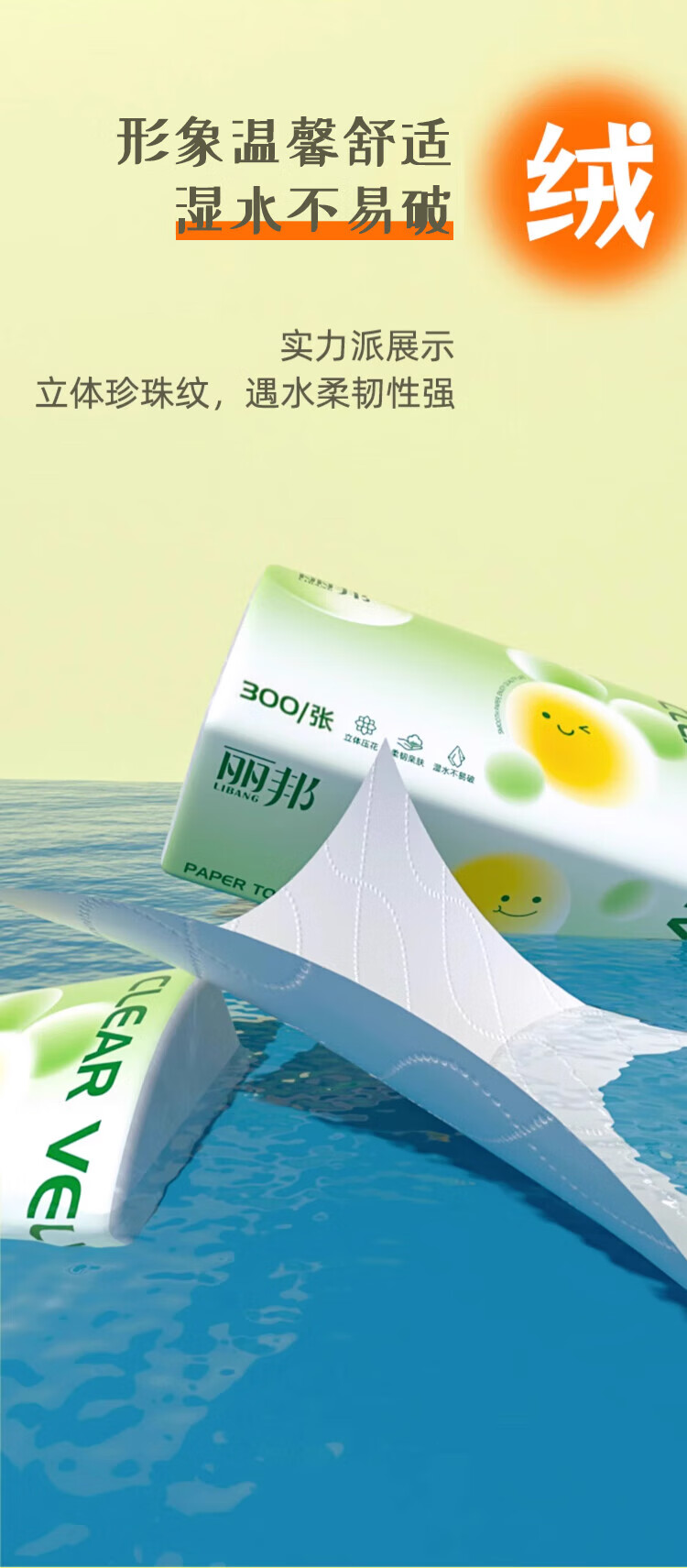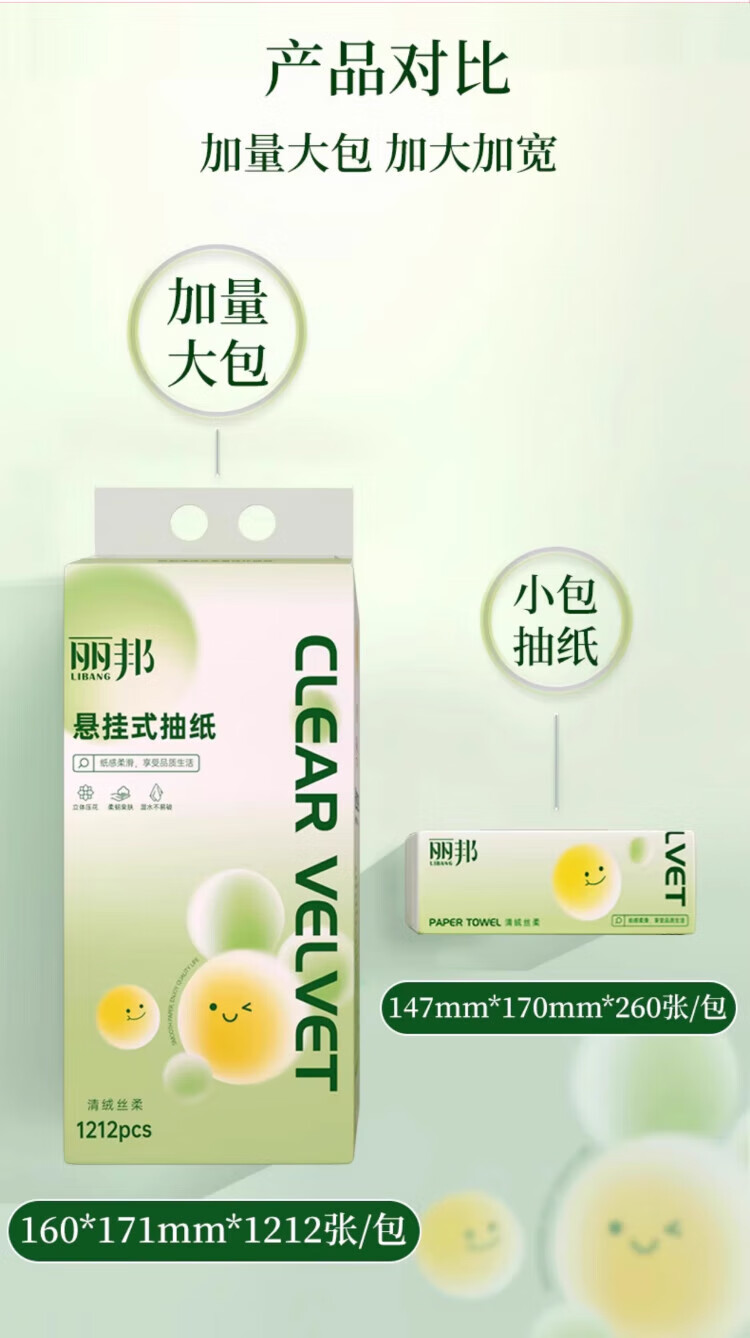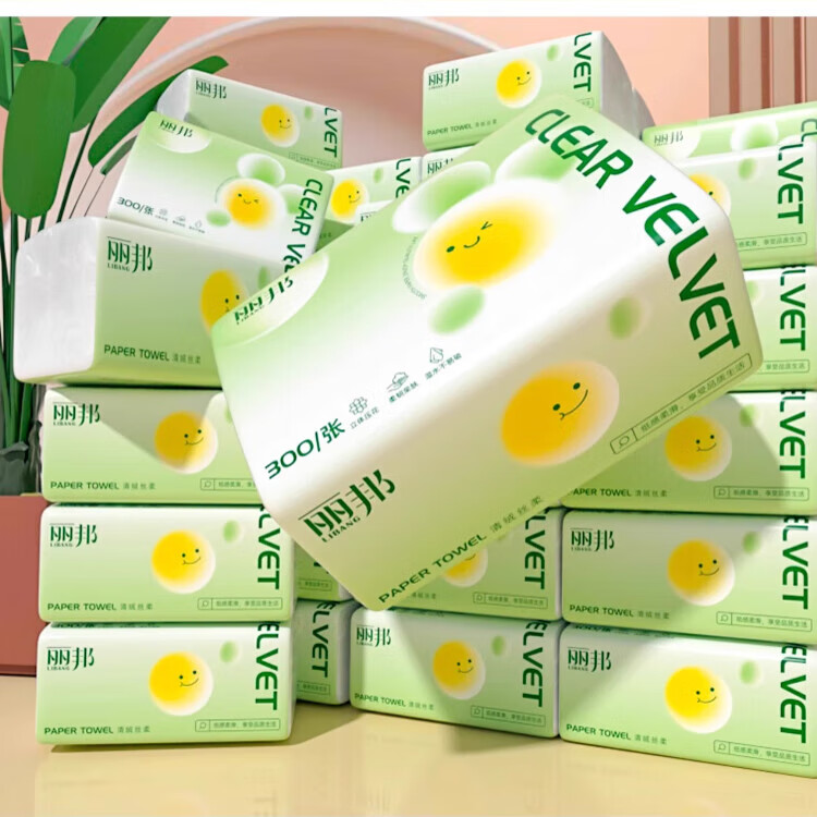 Libang tissue paper fresh green series baby facial tissue napkin toilet paper tissue paper household fresh green 4 layers 300 sheets * 30 pack