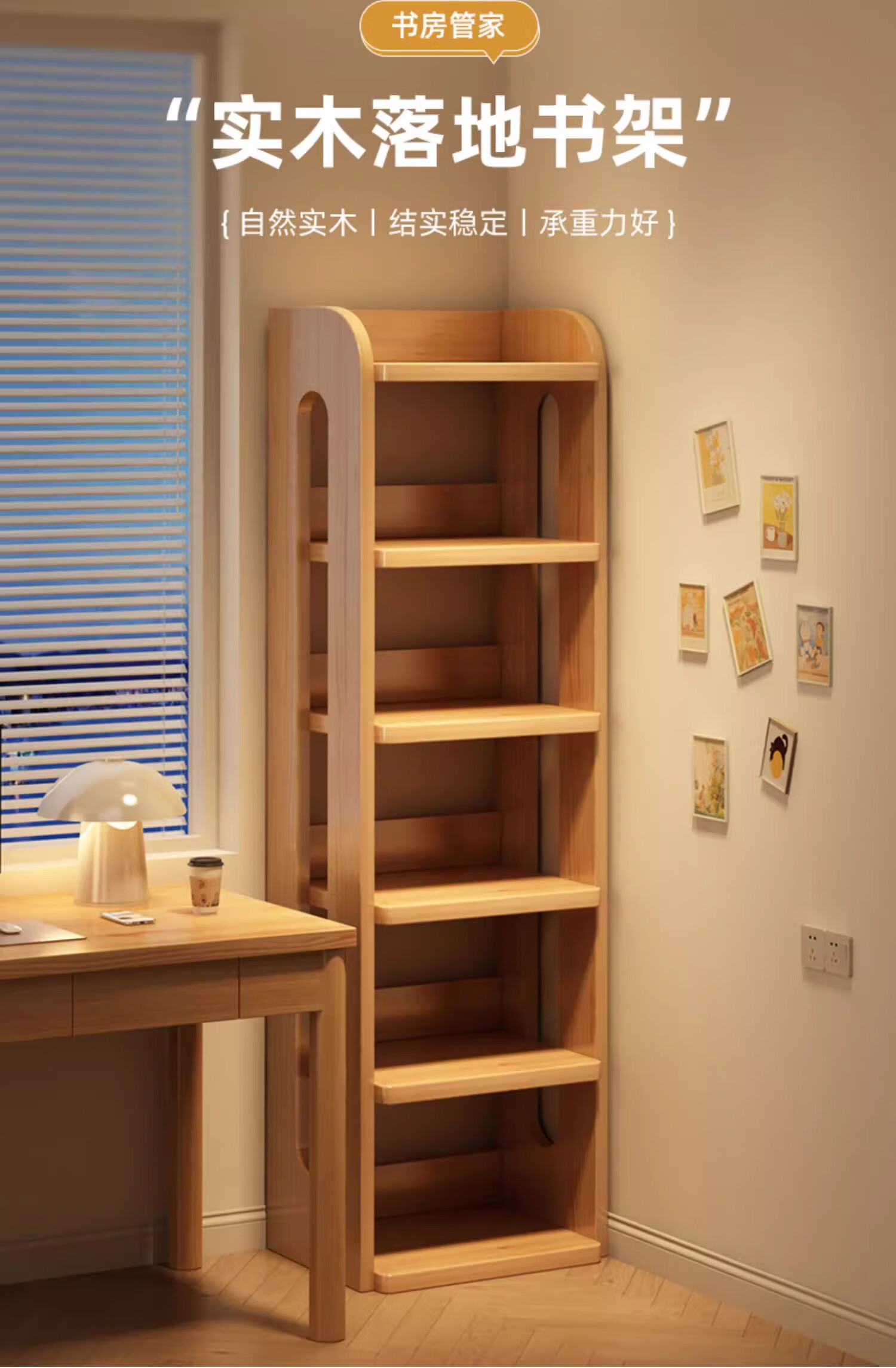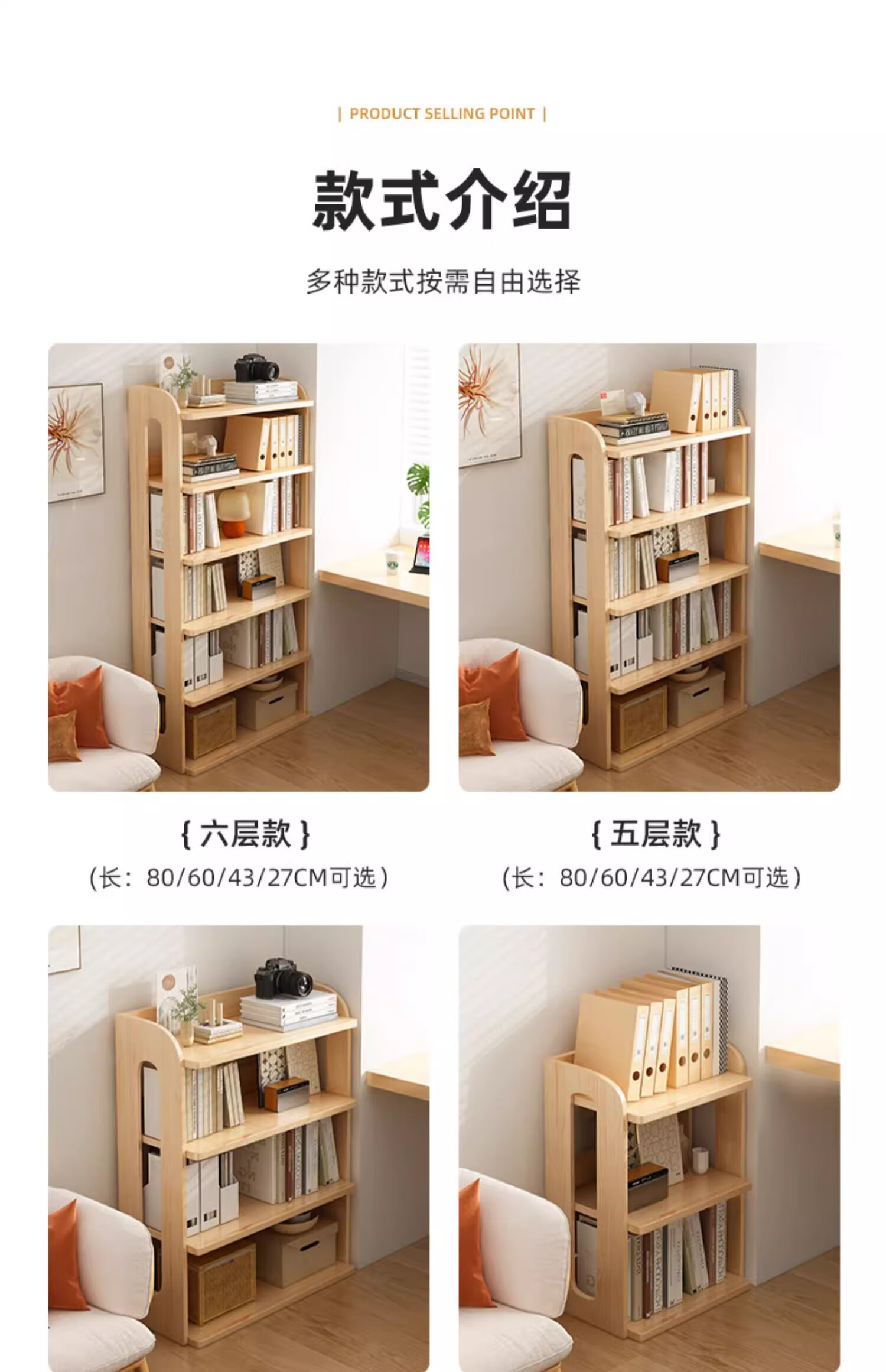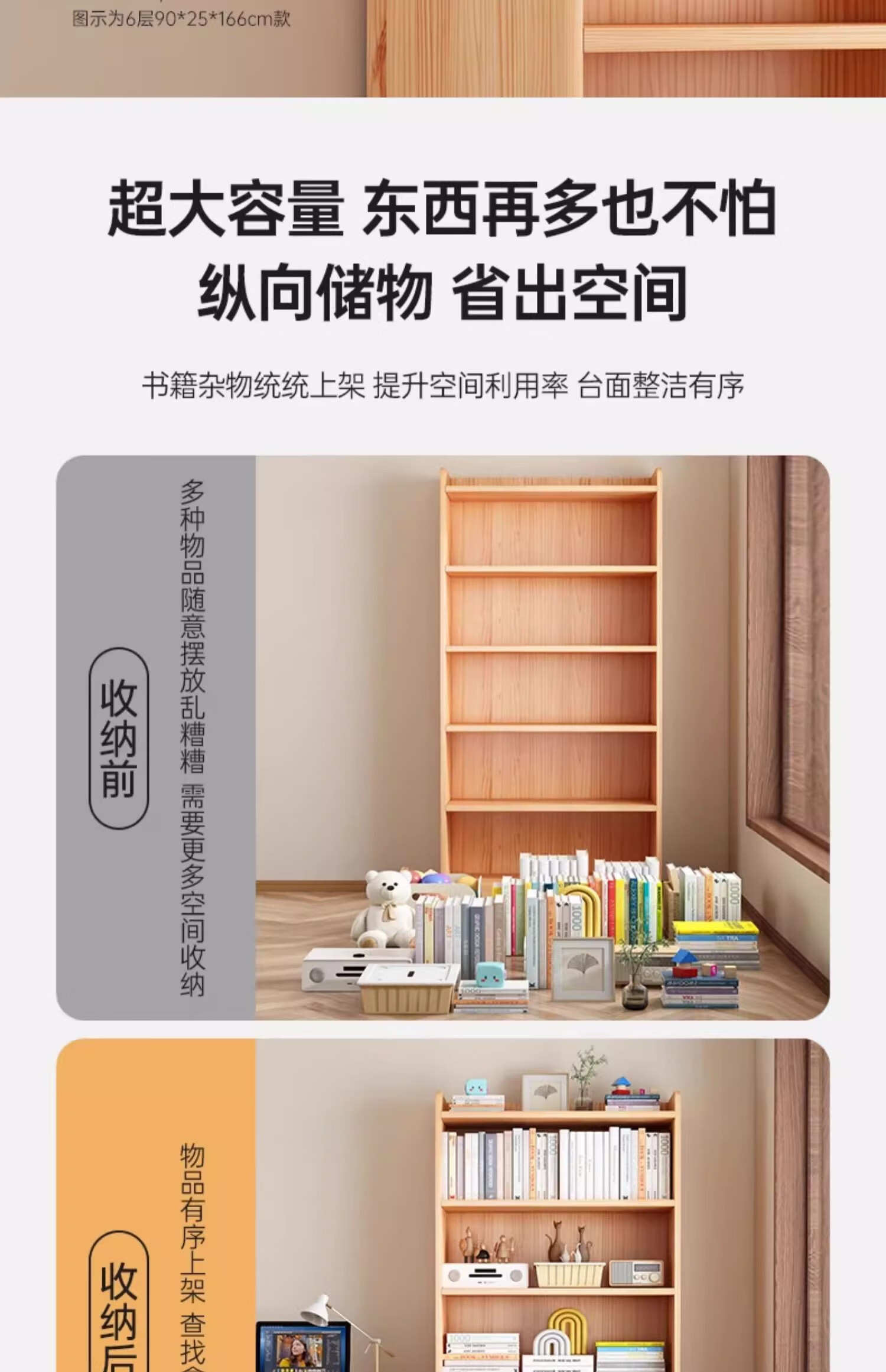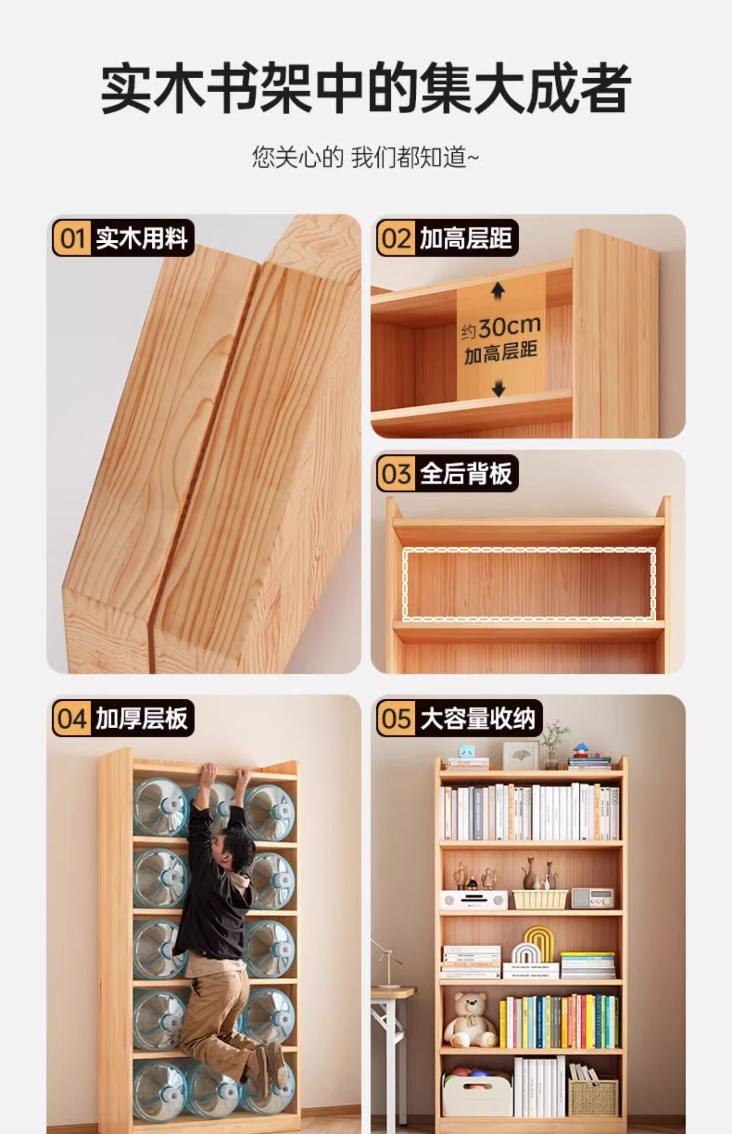 Zhuohe solid wood bookshelf storage rack floor-standing integrated wall corner storage cabinet simple shelf student desk pine bookcase best-selling model (paint-free solid wood) six layers 43x160