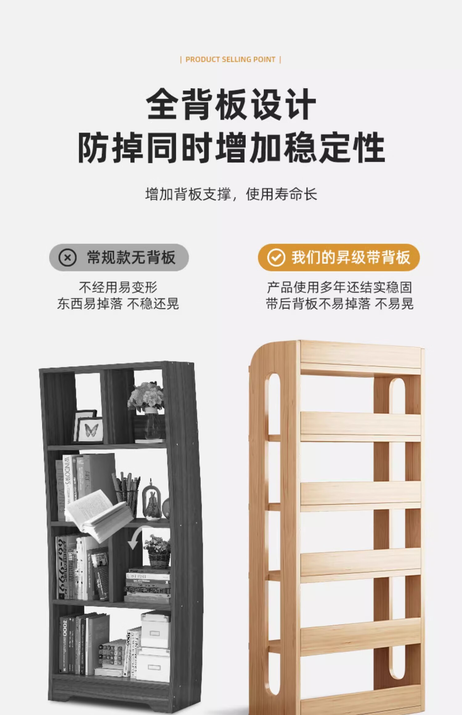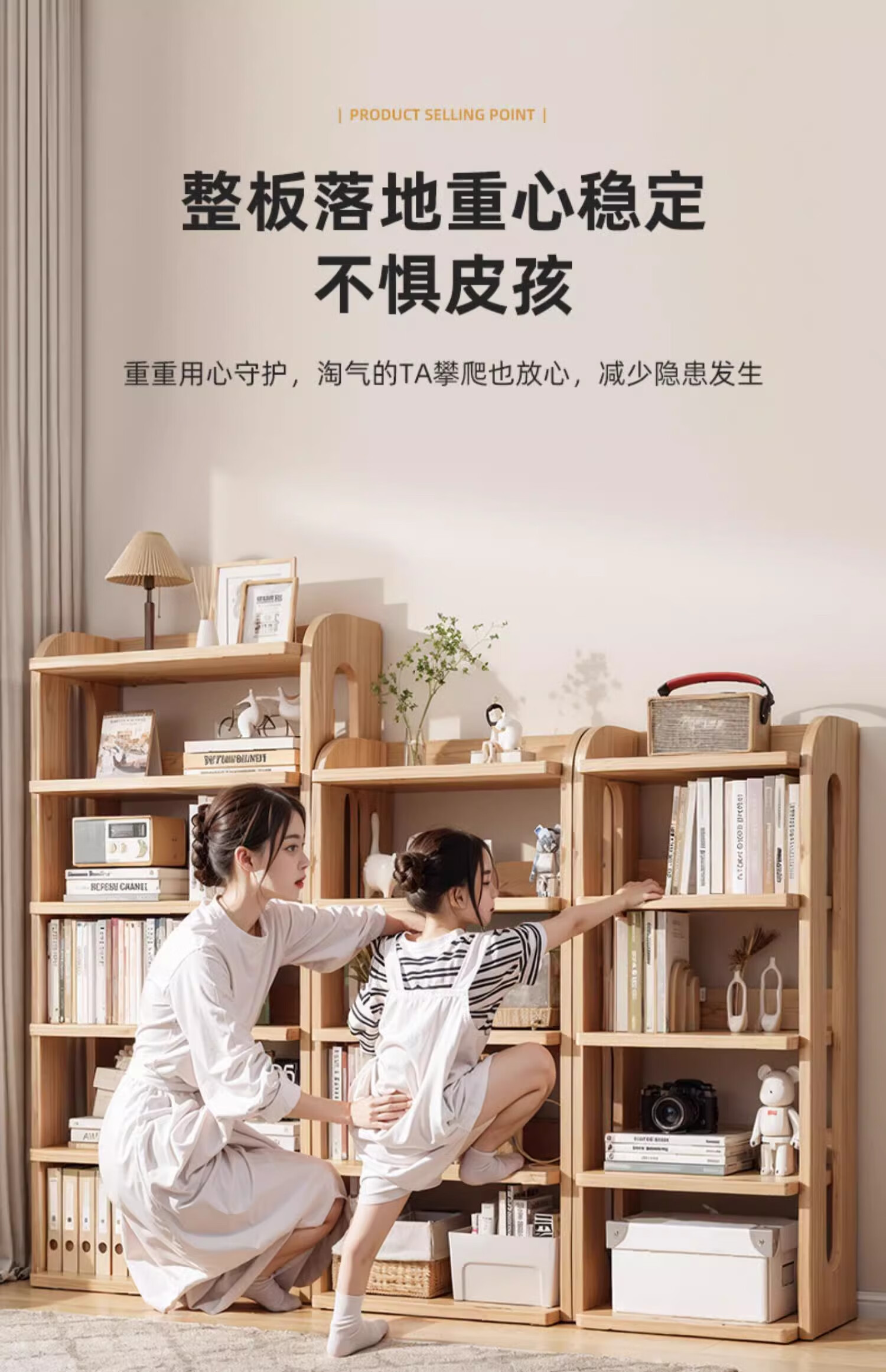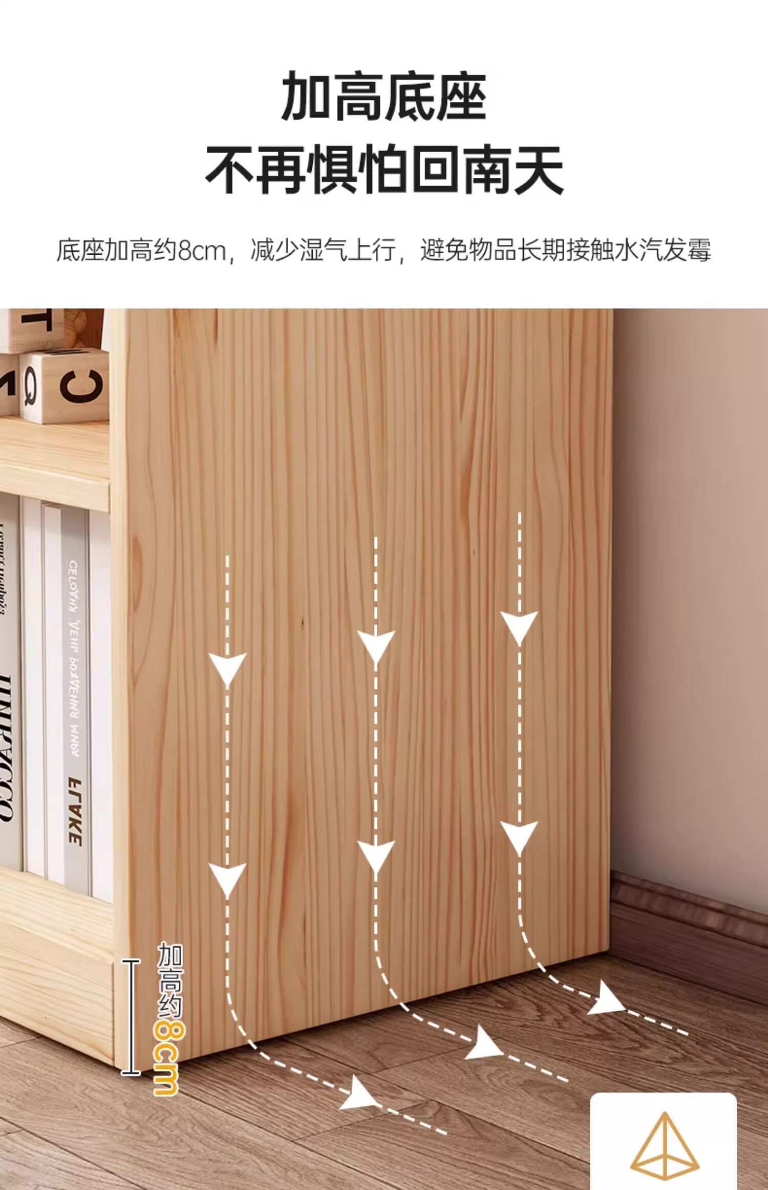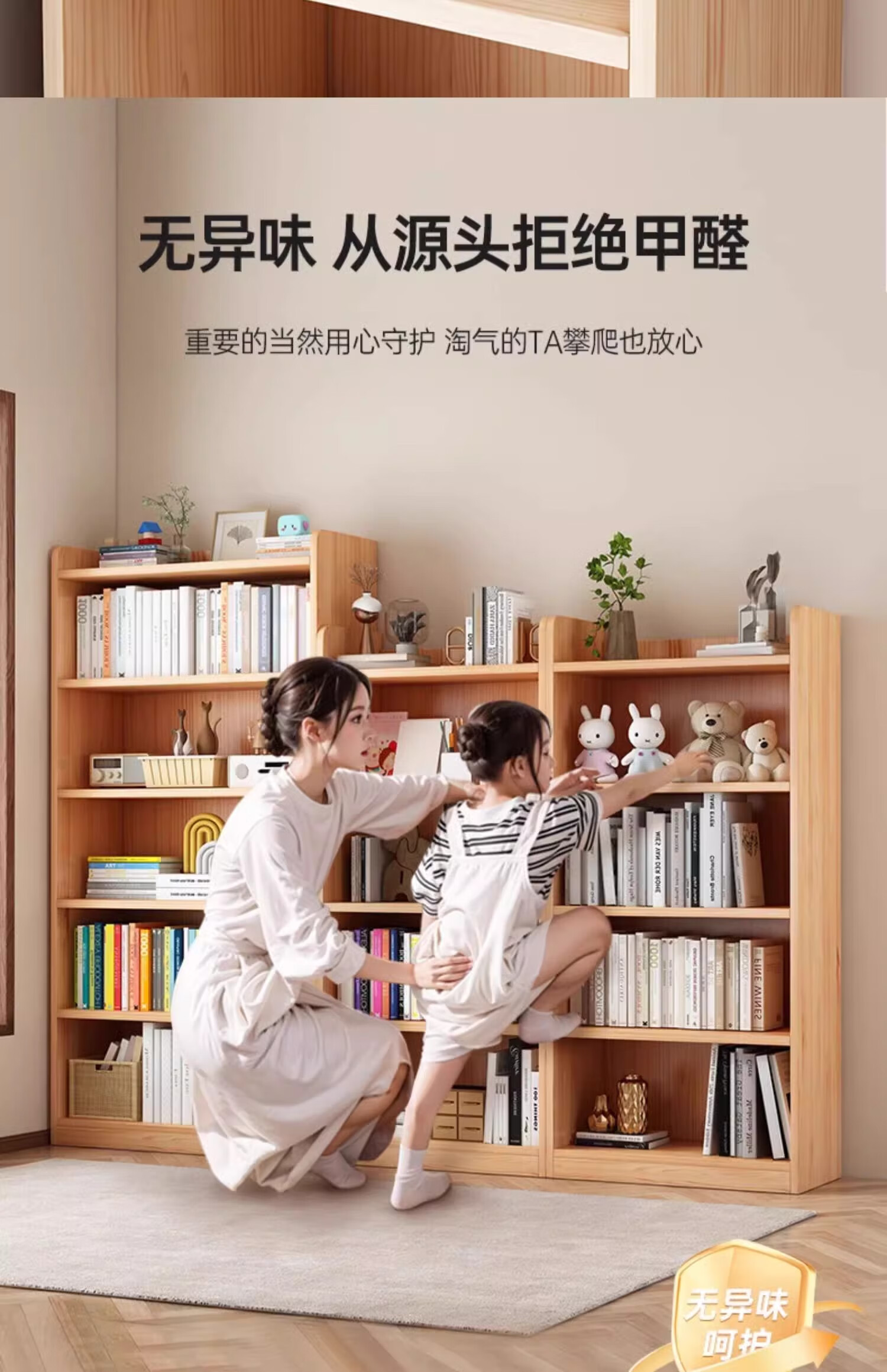 Zhuohe solid wood bookshelf storage rack floor-standing integrated wall corner storage cabinet simple shelf student desk pine bookcase best-selling model (paint-free solid wood) six layers 43x160