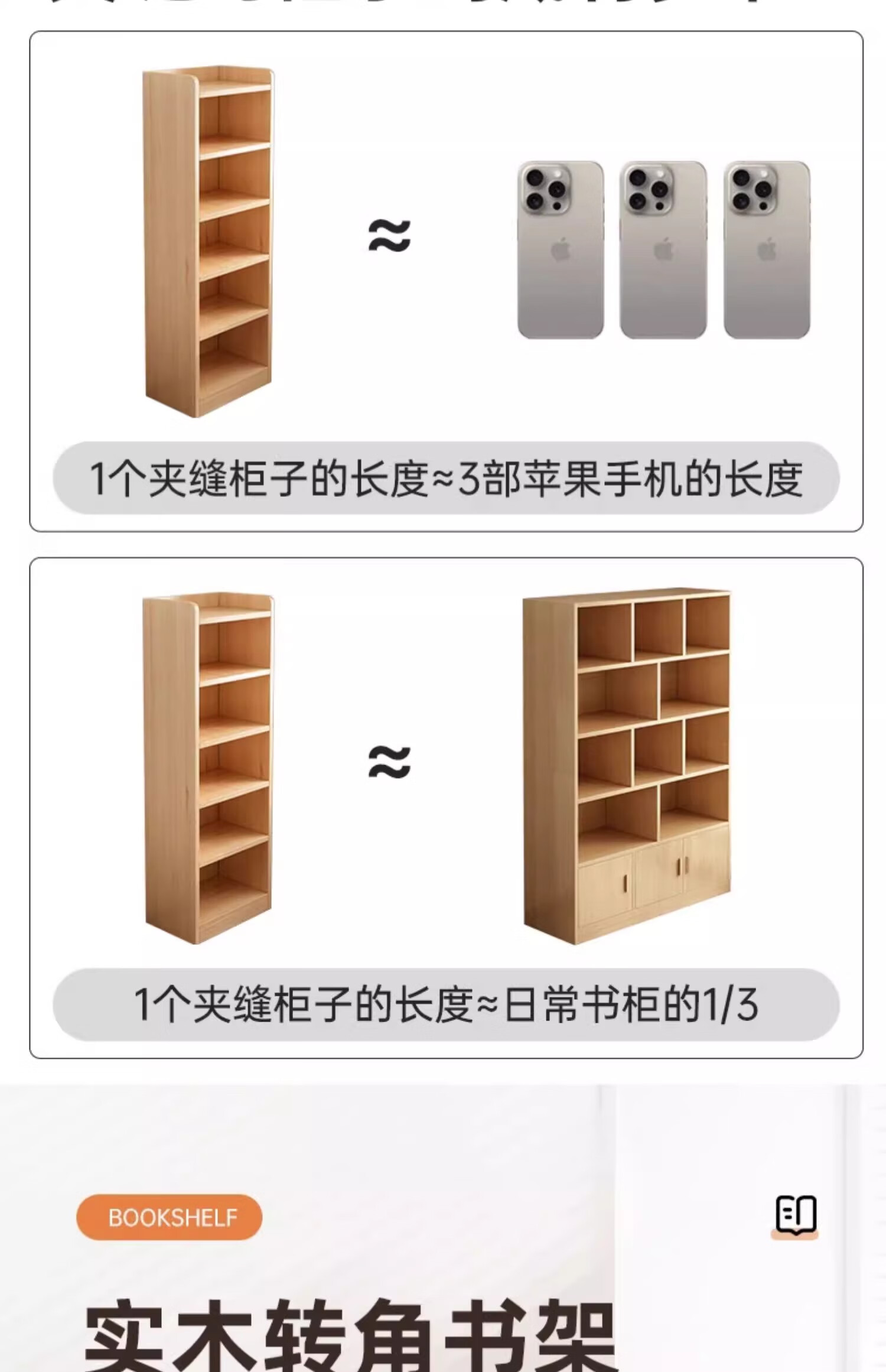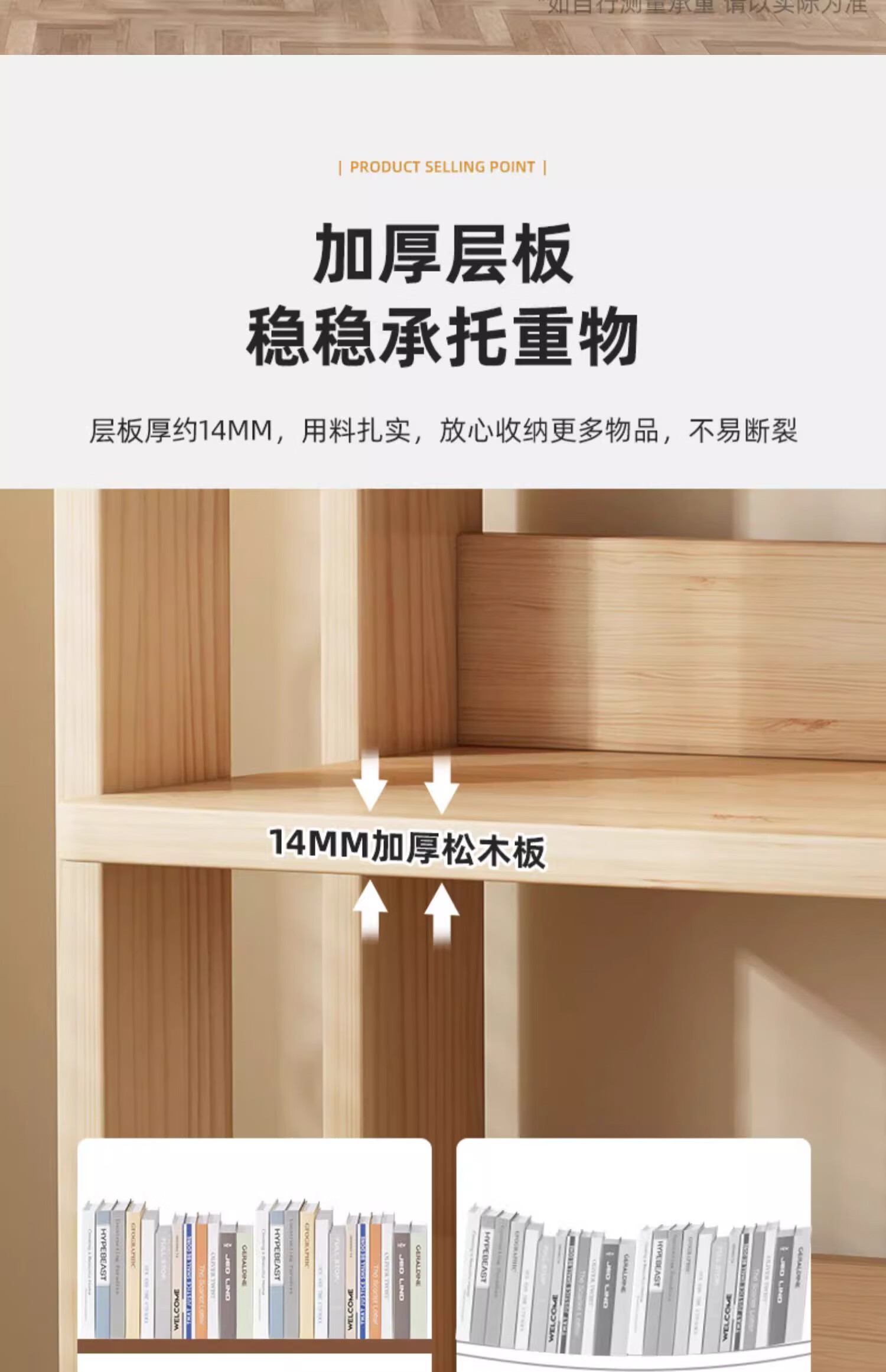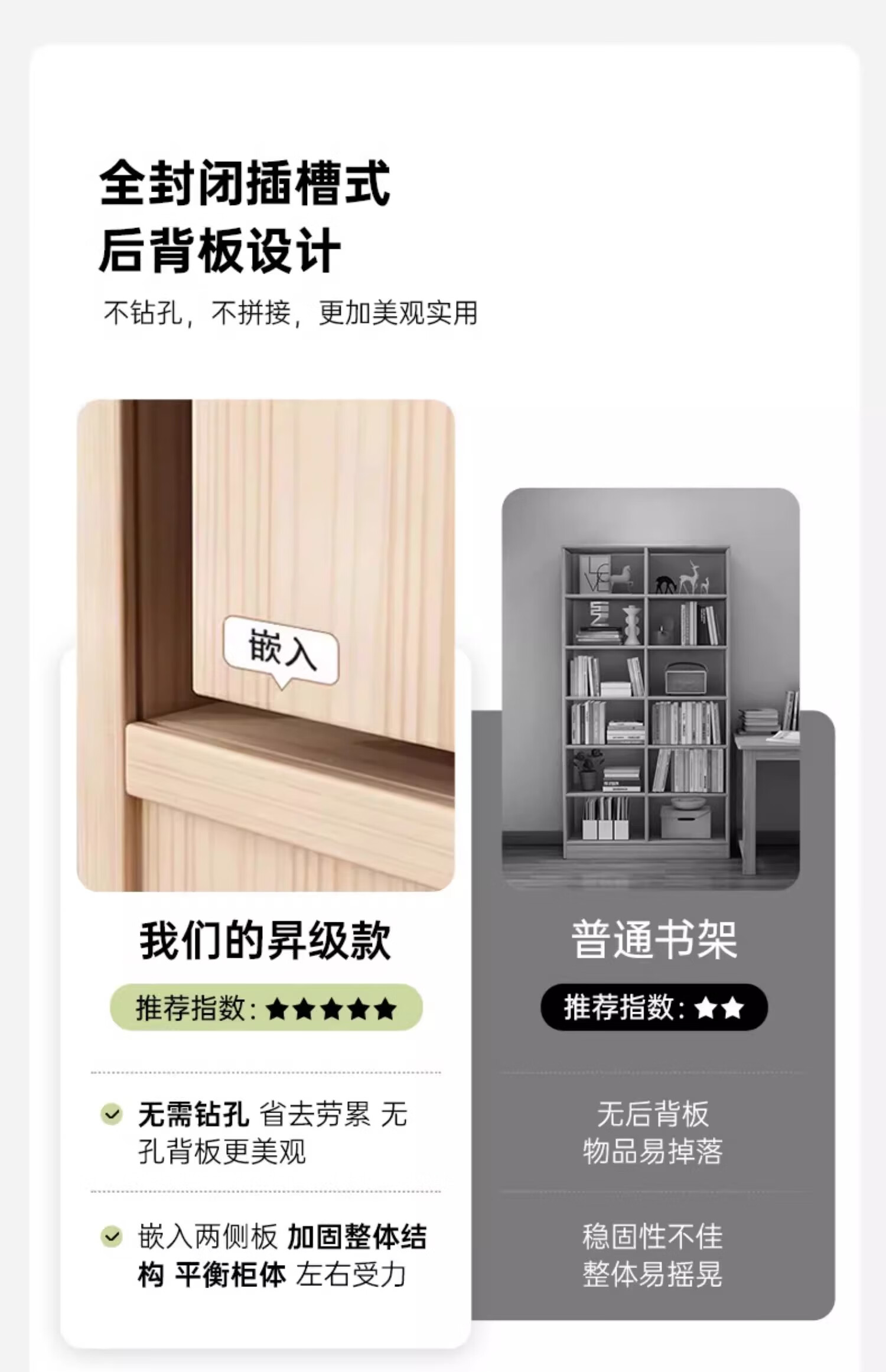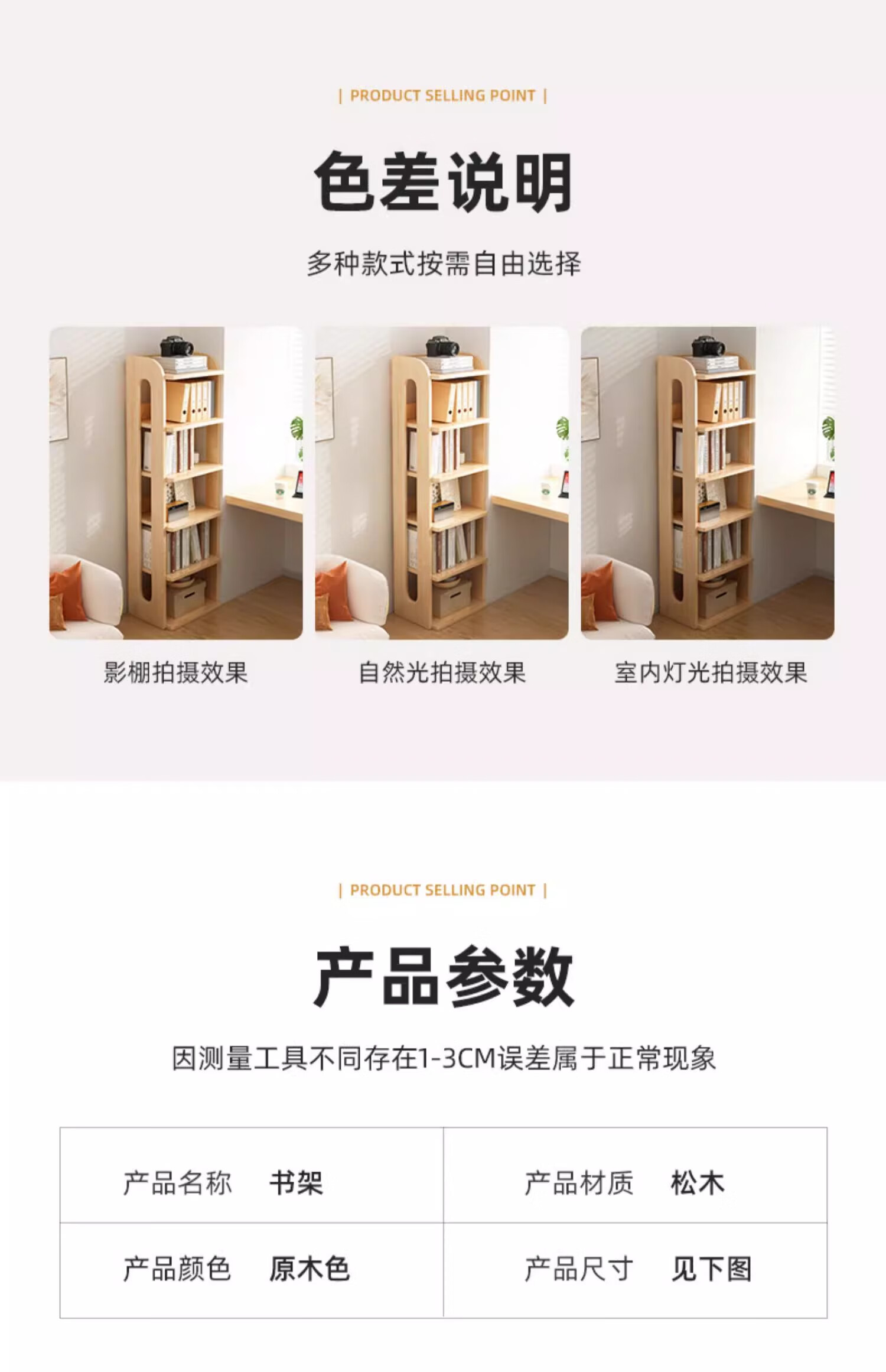 Zhuohe solid wood bookshelf storage rack floor-standing integrated wall corner storage cabinet simple shelf student desk pine bookcase best-selling model (paint-free solid wood) six layers 43x160