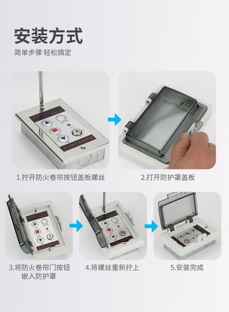 Electronic lock box, fireproof rolling shutter door, electric rolling shutter door control switch box, lock cylinder button, remote control lift switch, smoke barrier wall control button, three buttons
