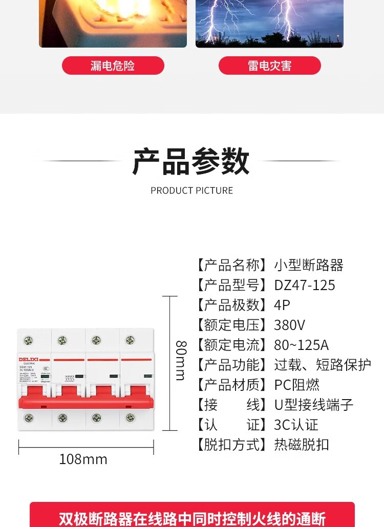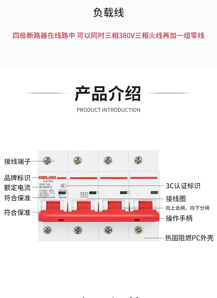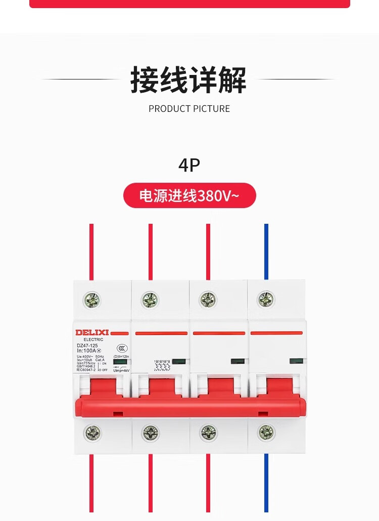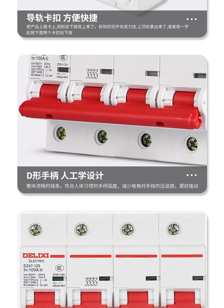 Delixi high power circuit breaker DZ47-125 4P 80A 100A 125A circuit breaker main open DZ158 100A 4P