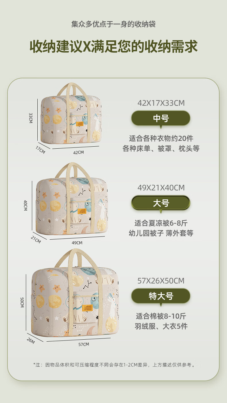 GUYN Large Capacity Oxford Cloth Quilt Storage Bag Clothes Quilt Duffel Bag Moving Organizer Packing Bag Student Living on Campus Space Bear Gray Extra Large (57*26*50cm) Moving Living on Campus