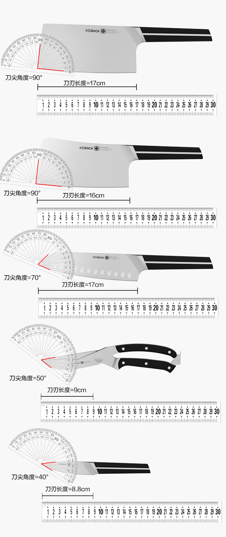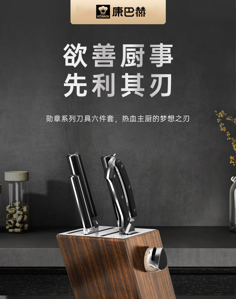 Kornbach Medal Series Knife Kitchenware Set Kitchen Knife Fruit Knife Bone Chopping Knife Kitchen Knife Scissors Six-piece Set Kornbach Medal Series Knife Set 6-Piece - White