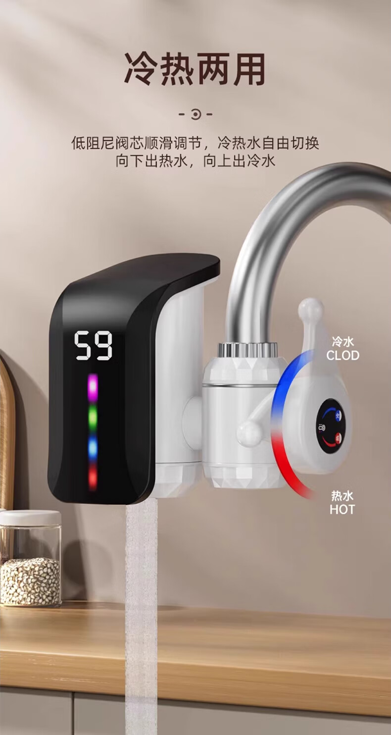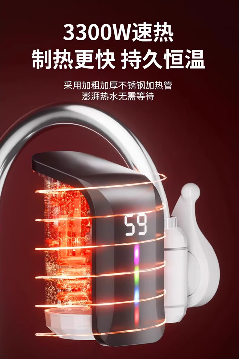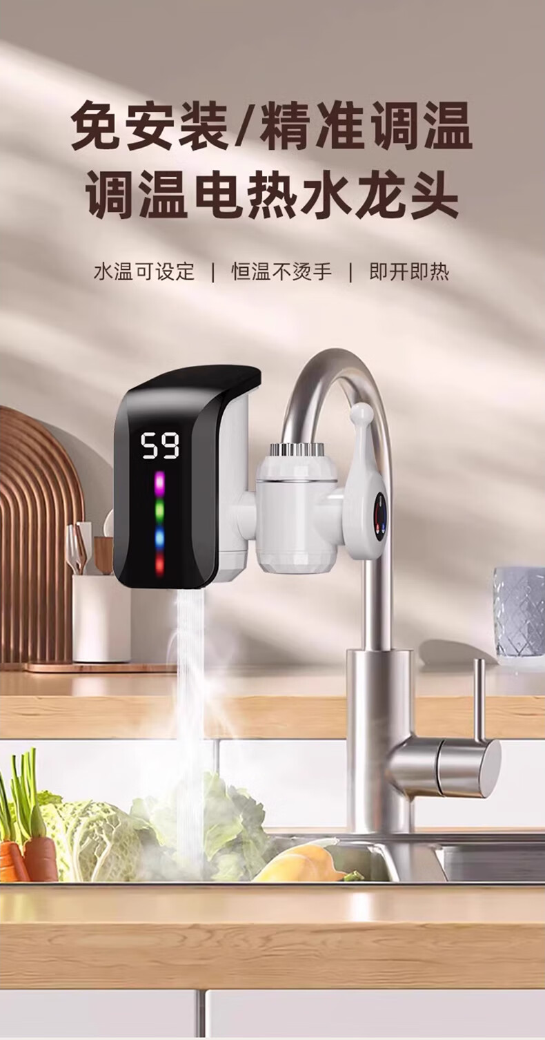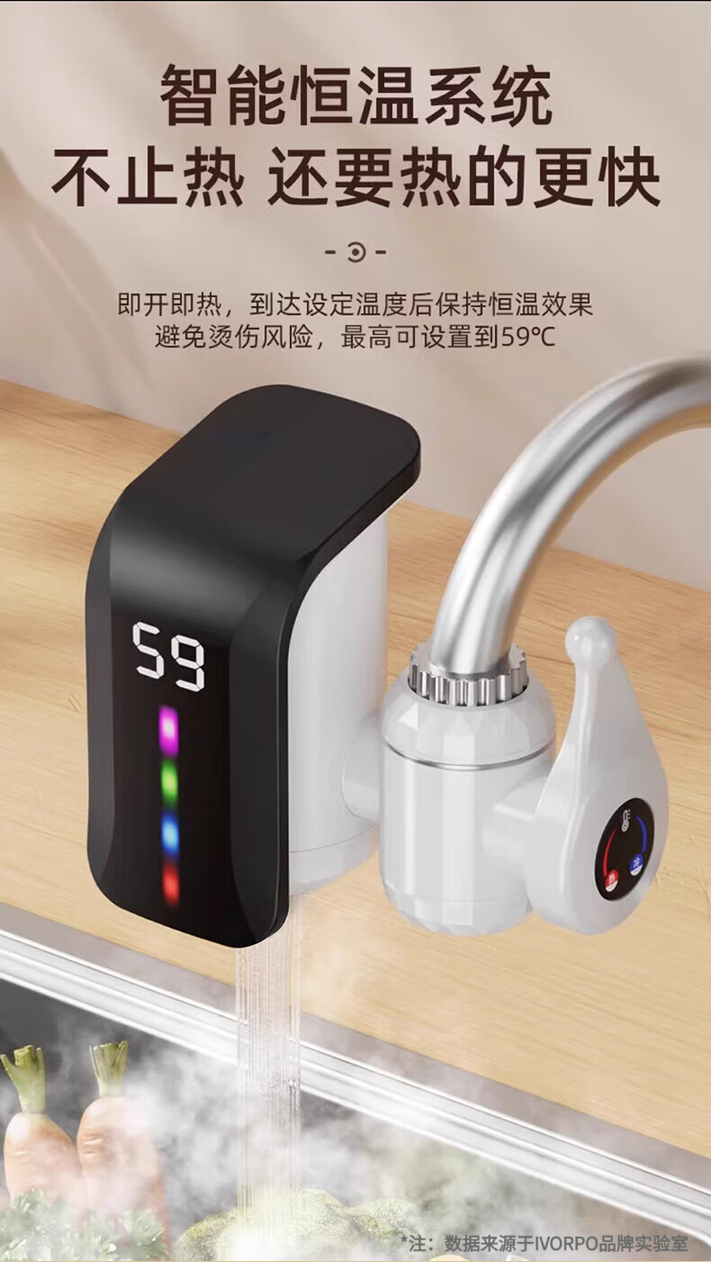 IVORPO Germany electric hot water faucet installation-free frequency conversion constant temperature heating fast heating fast electric heating instant heating kitchen sink kitchen treasure electric water heater faucet large screen dynamic model丨2.2 meters wire gradient LED light plug-in fast heating temperature adjustment 3300w