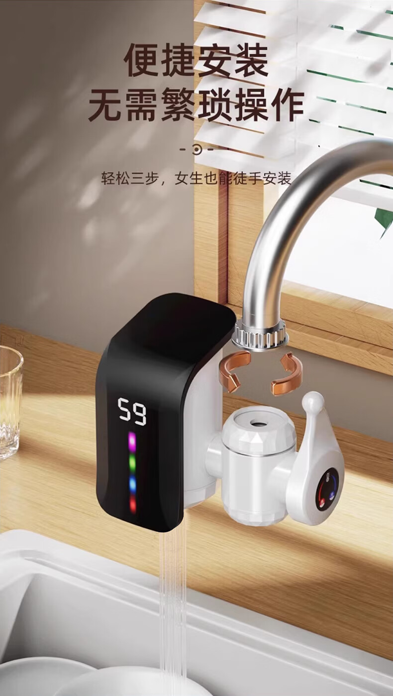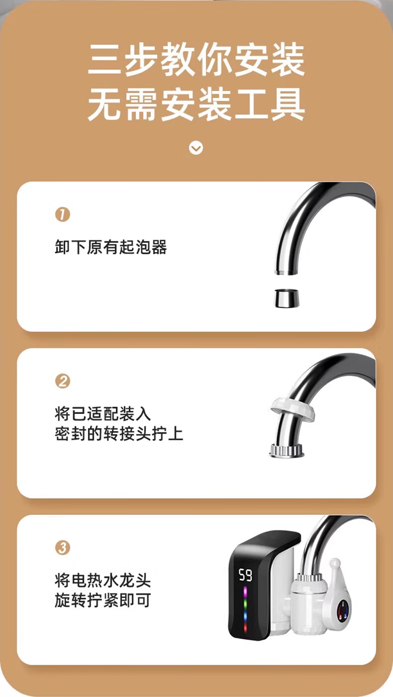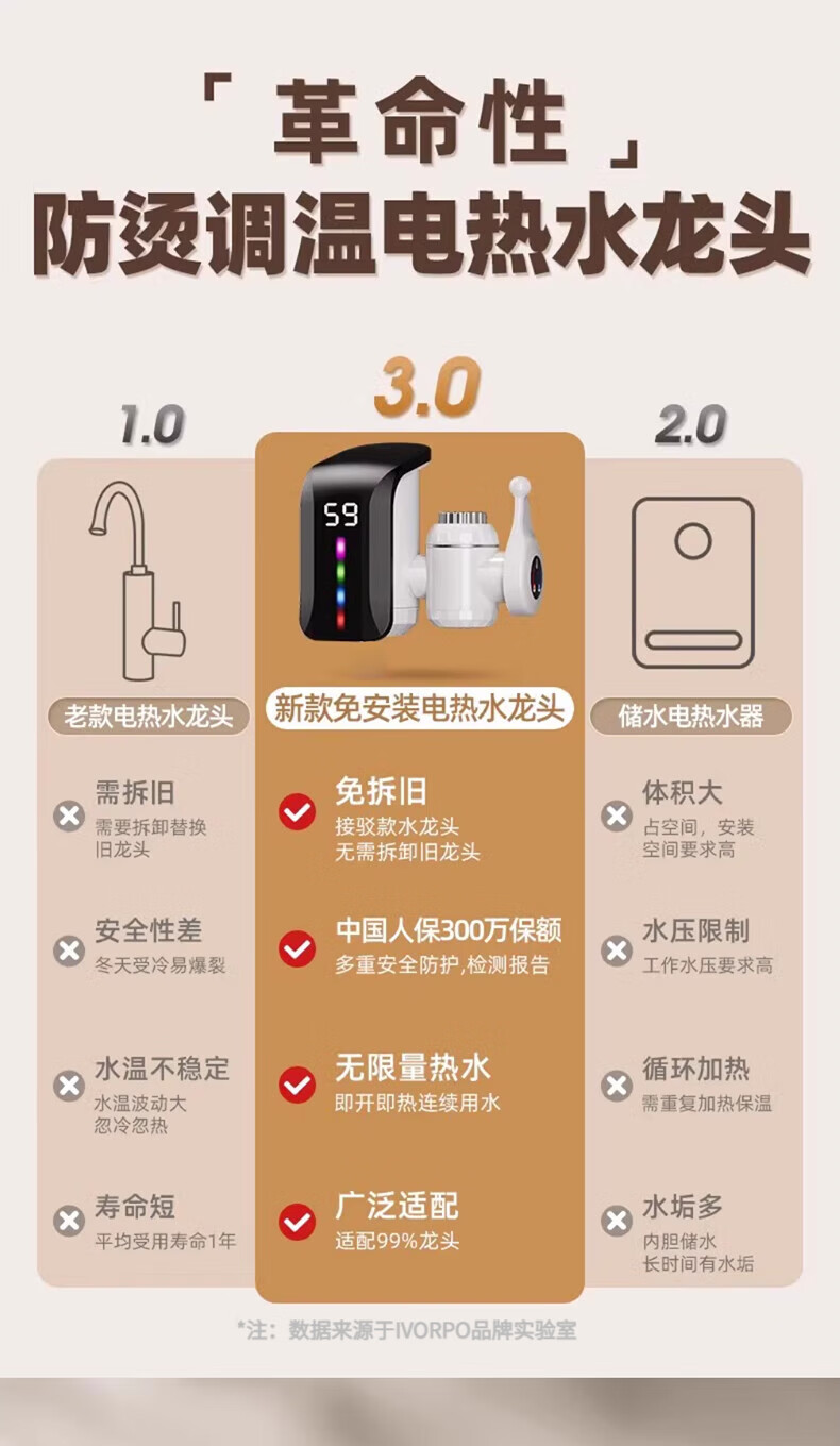 IVORPO Germany electric hot water faucet installation-free frequency conversion constant temperature heating fast heating fast electric heating instant heating kitchen sink kitchen treasure electric water heater faucet large screen dynamic model丨2.2 meters wire gradient LED light plug-in fast heating temperature adjustment 3300w