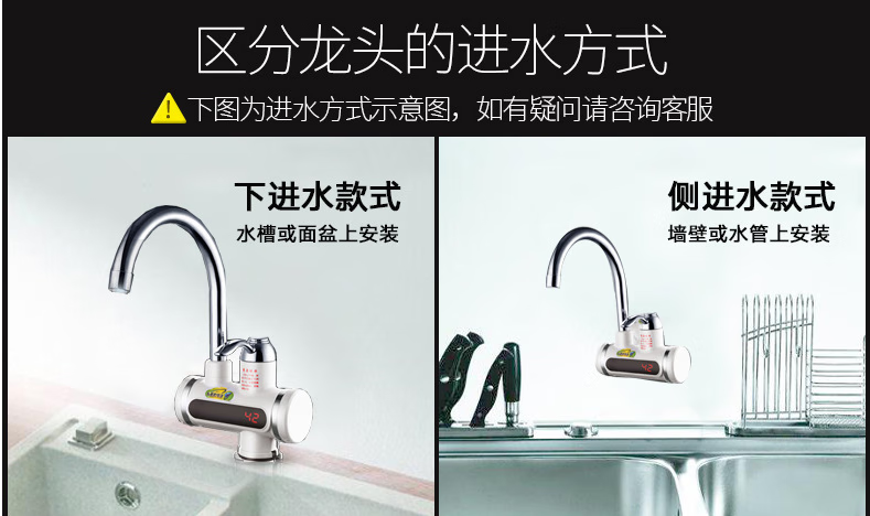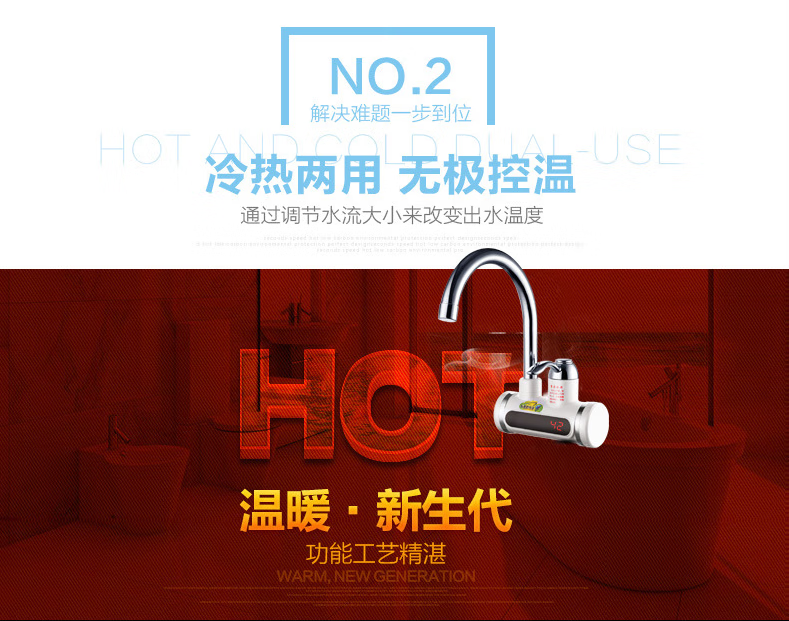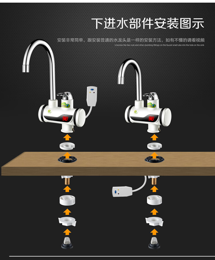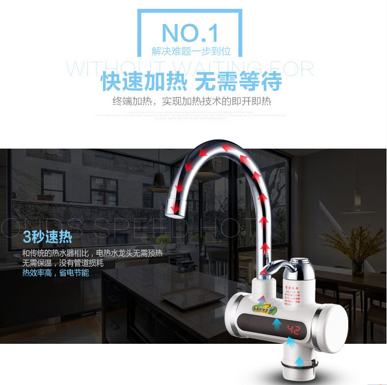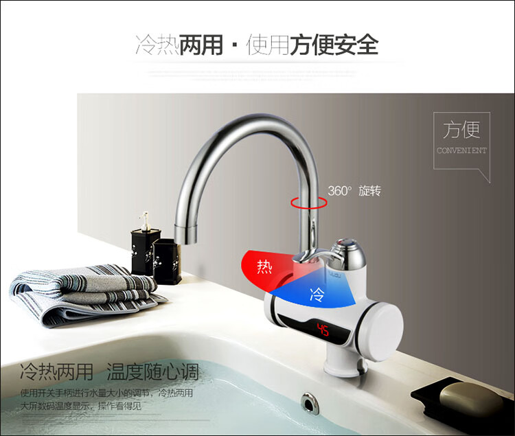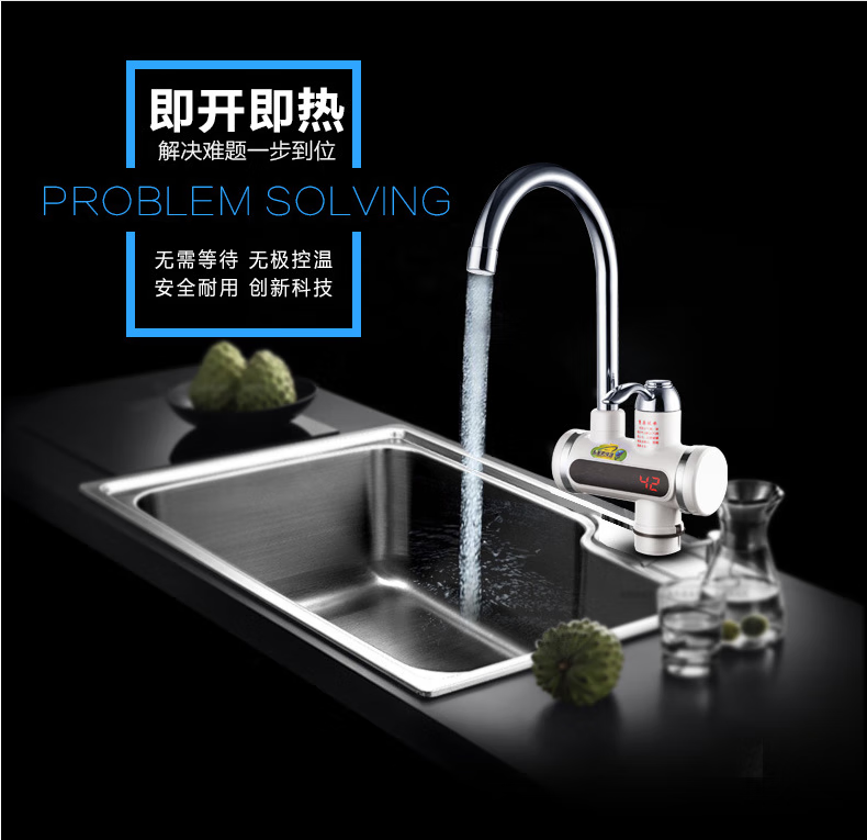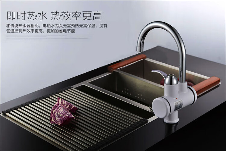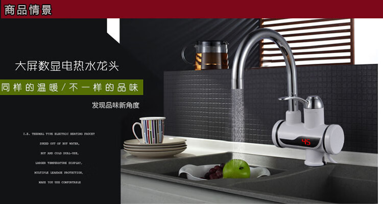 Sharp electric heating faucet instant heating 3 seconds fast heating wall-mounted vegetable washing basin plug-in electric hot and cold dual-use faucet classic digital display lower water inlet curve