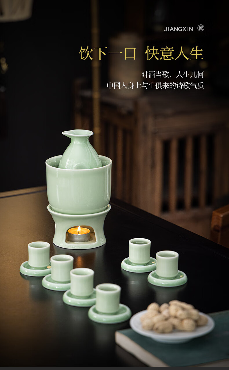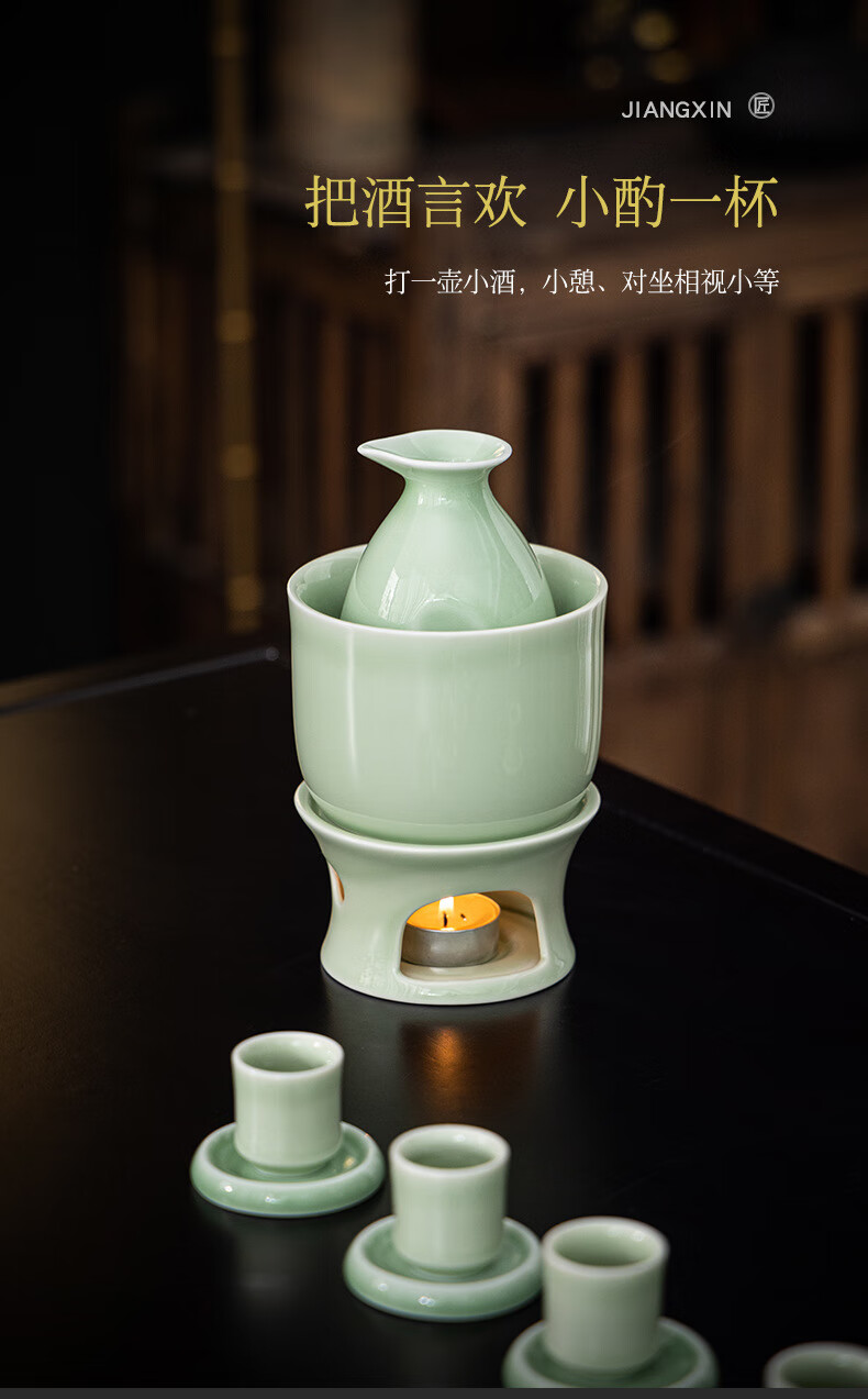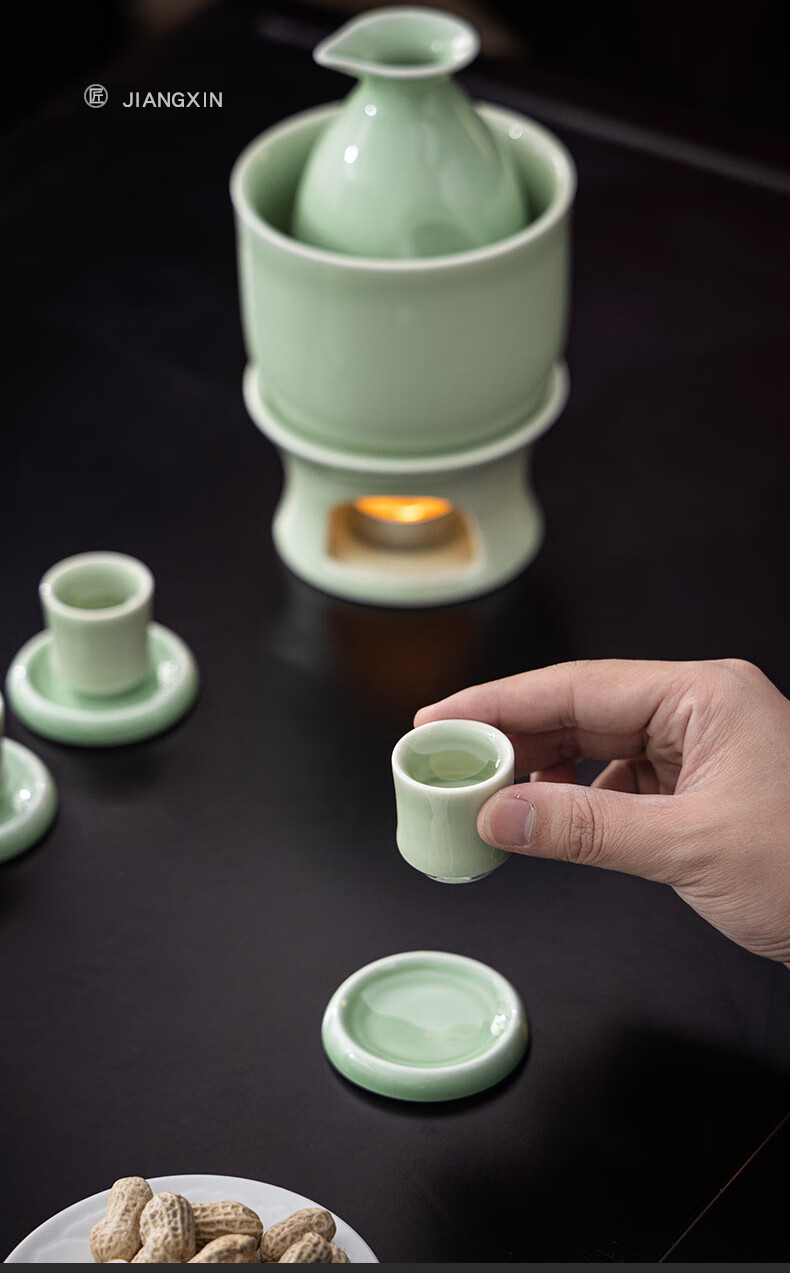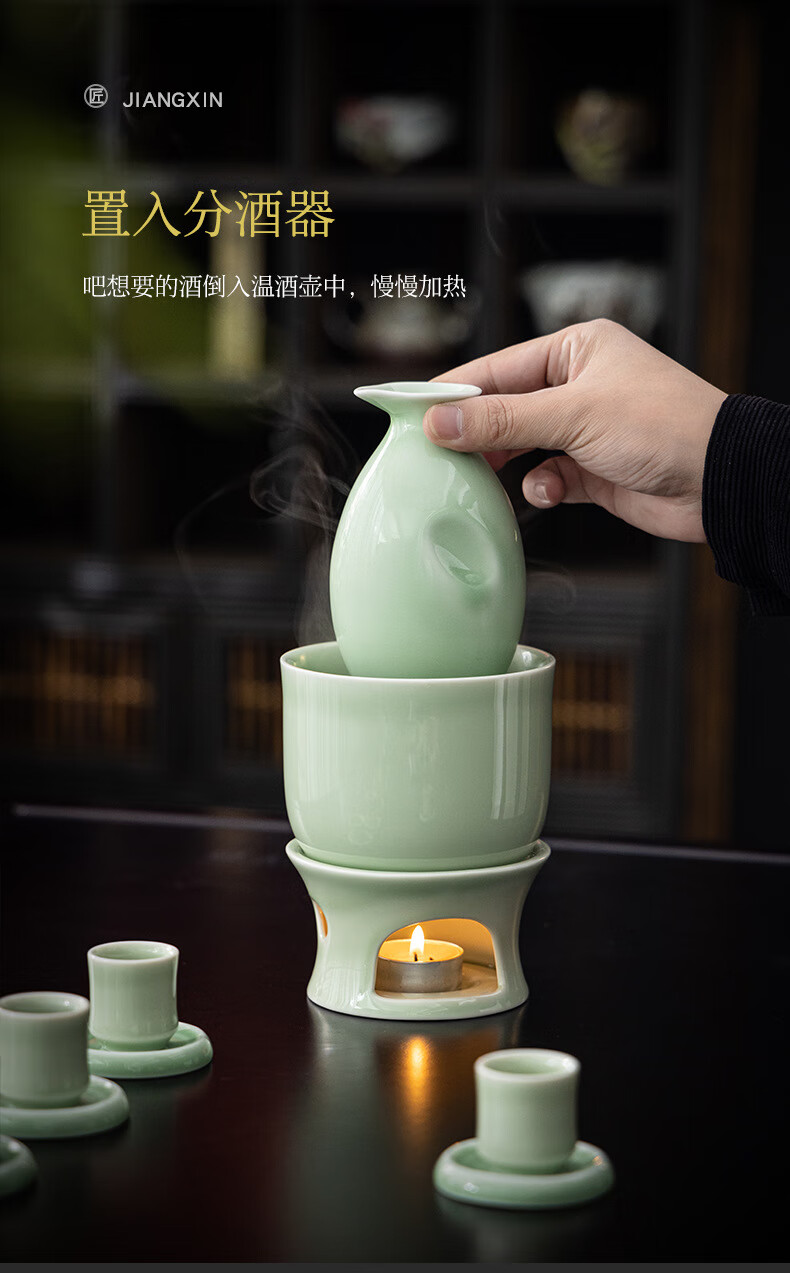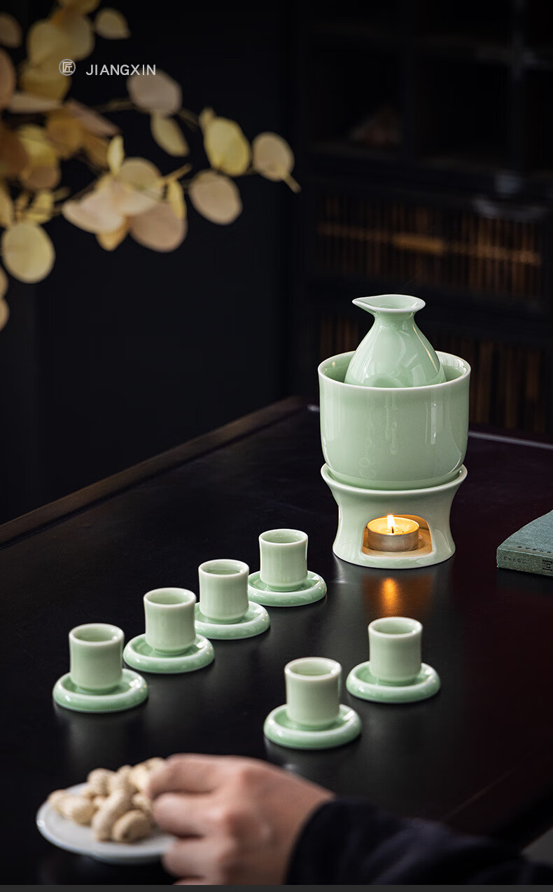 Yuansu FATEHOUSE Longquan Celadon Ceramic Wine Set Warm Wine Candle Wine Divider White Wine Cup Rice Wine Sake Hot Wine Set Logo Longquan Celadon Warm Wine Cup + Sauce