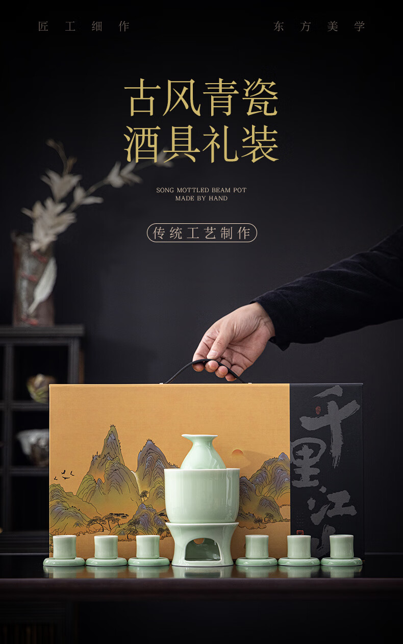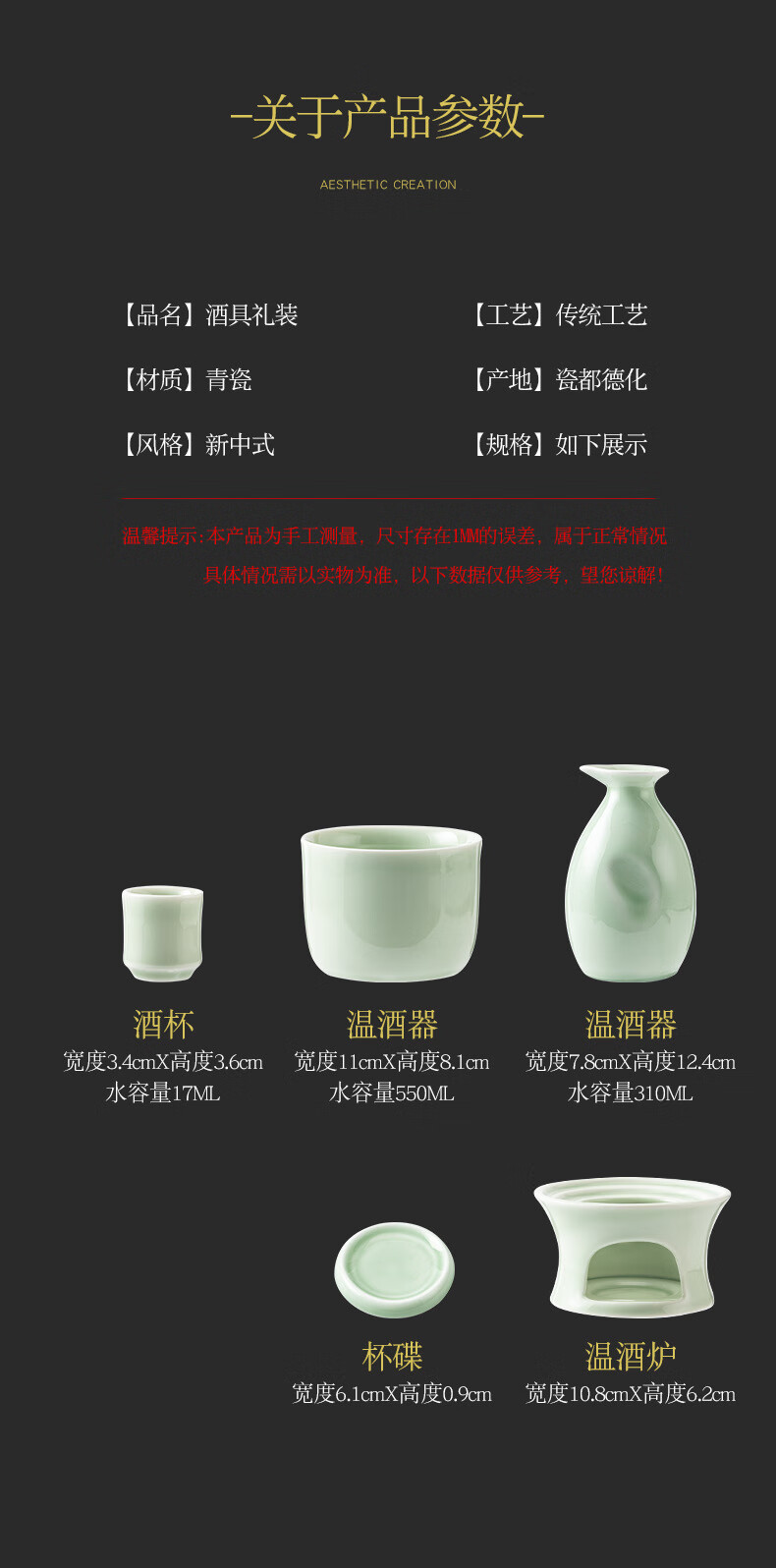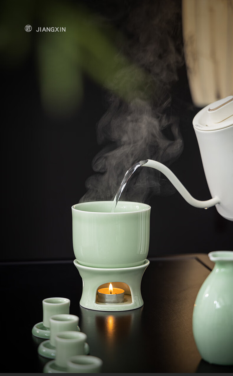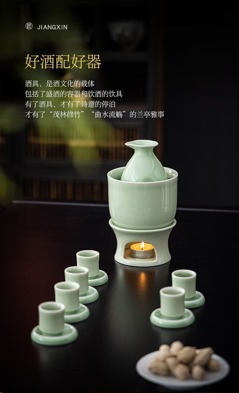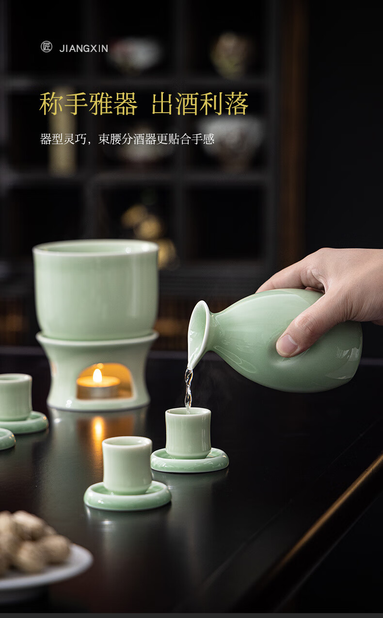 Yuansu FATEHOUSE Longquan Celadon Ceramic Wine Set Warm Wine Candle Wine Divider White Wine Cup Rice Wine Sake Hot Wine Set Logo Longquan Celadon Warm Wine Cup + Sauce