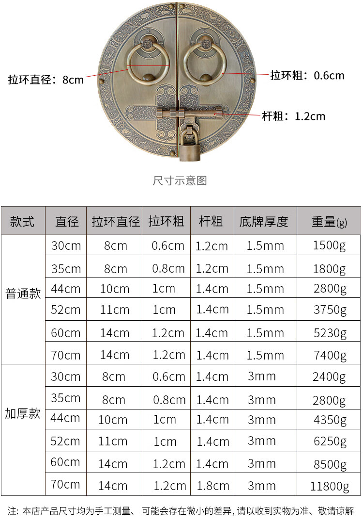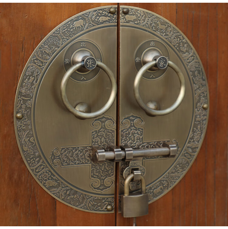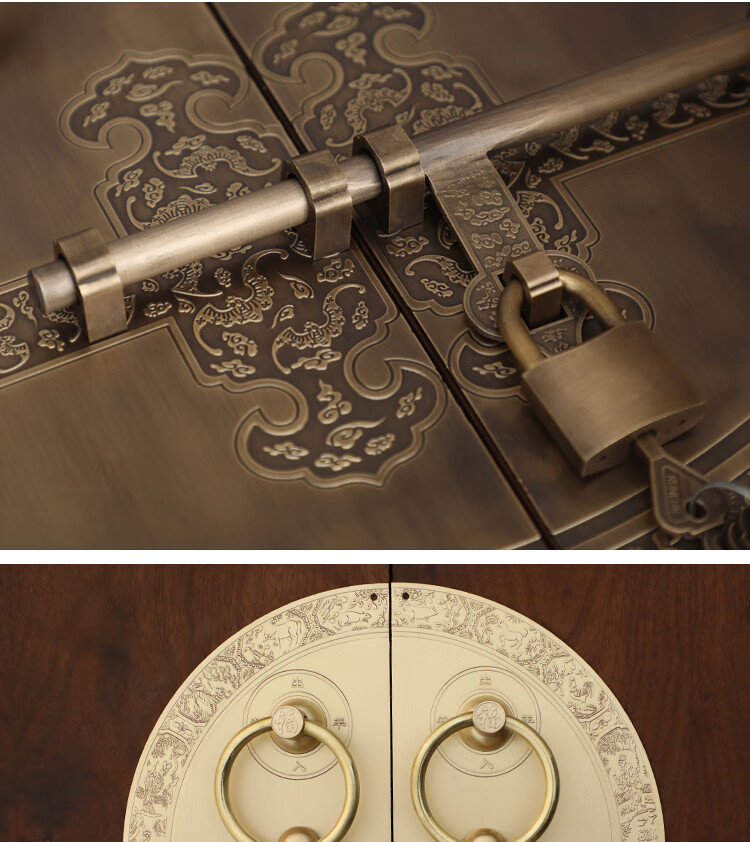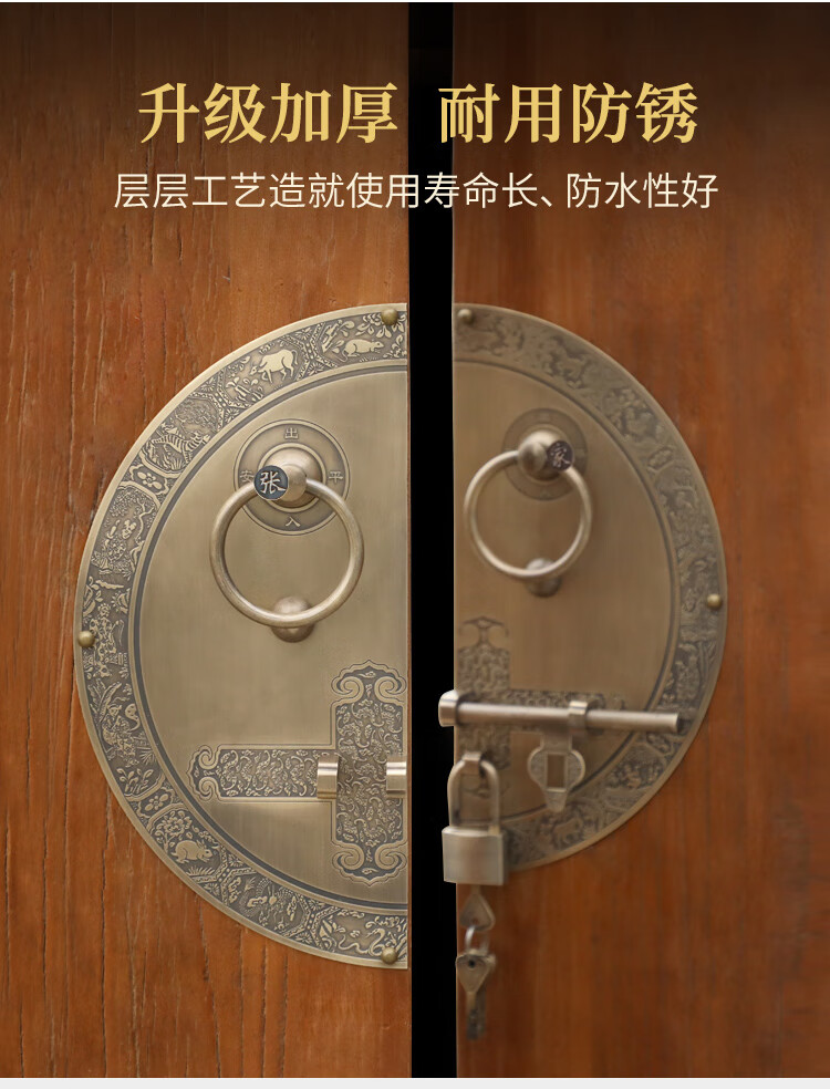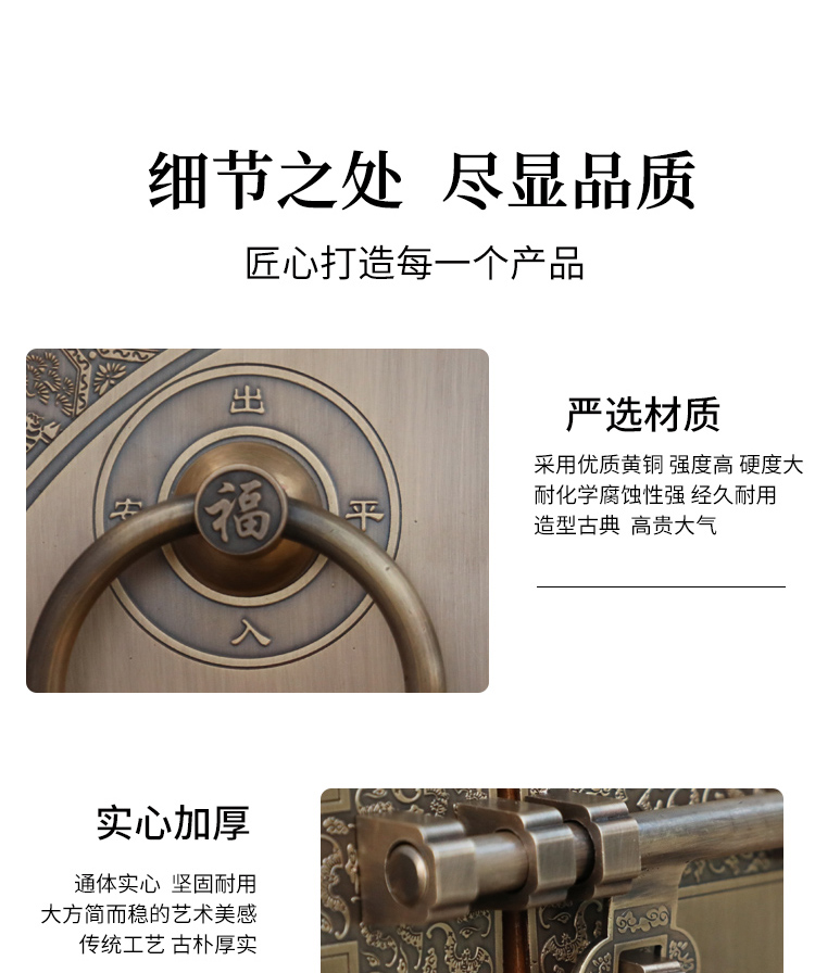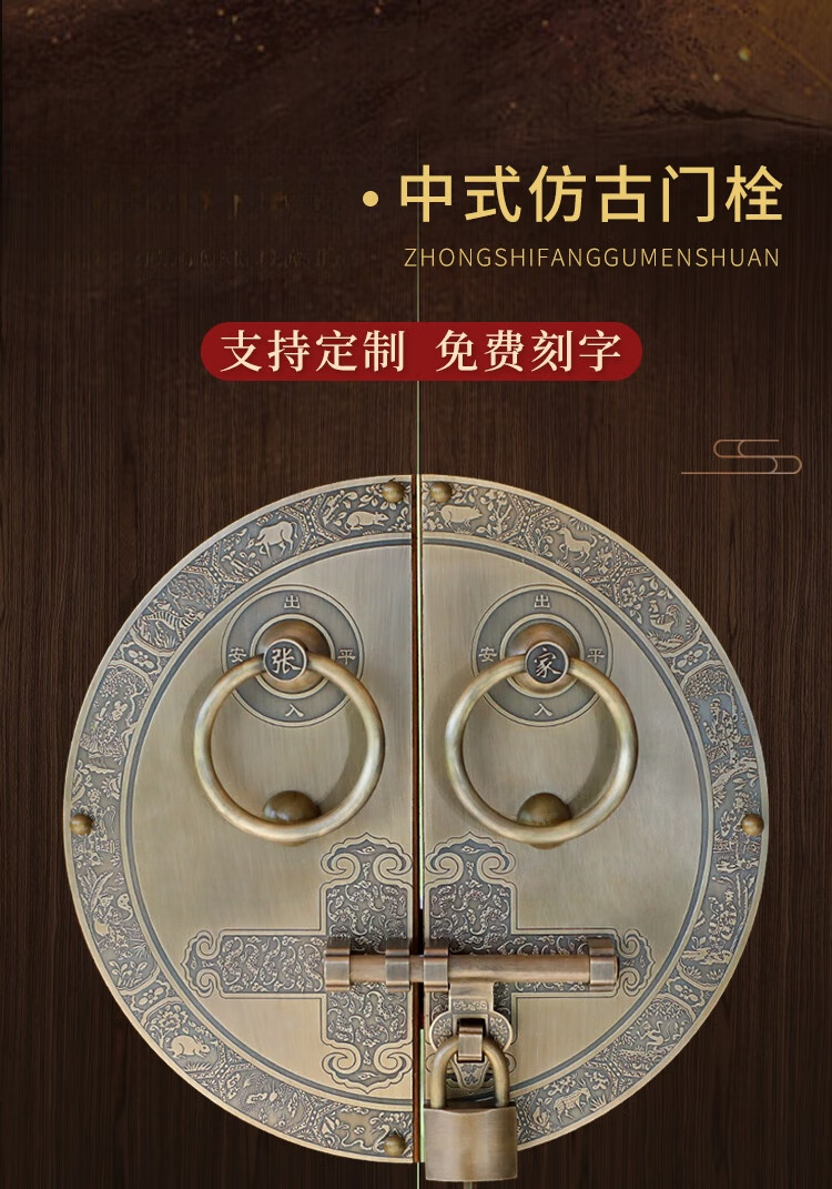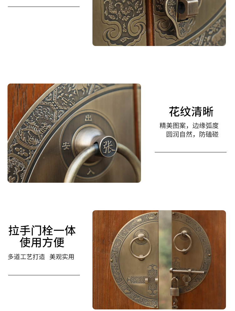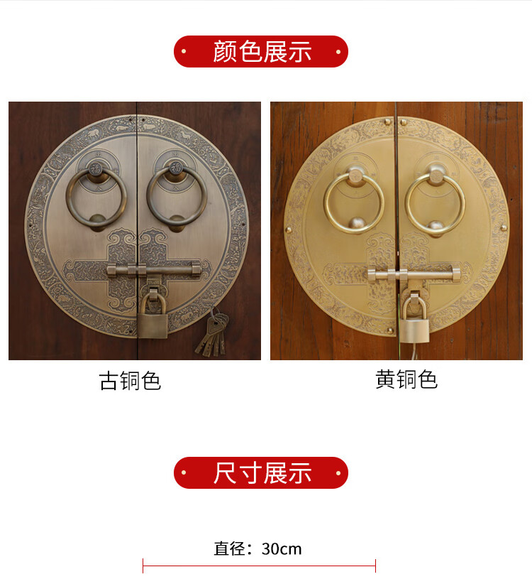 Chengjia antique door lock handle hand-style copper door knocker villa courtyard wooden door bolt latch handle 30cm ordinary bronze color (base card 1.5mm)