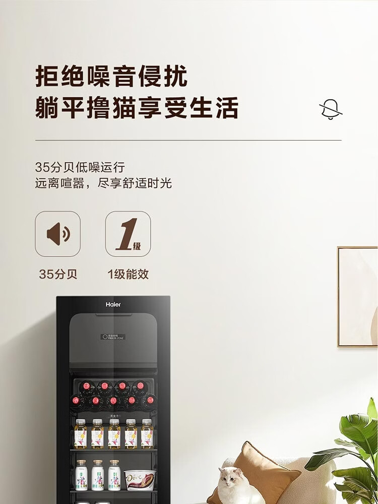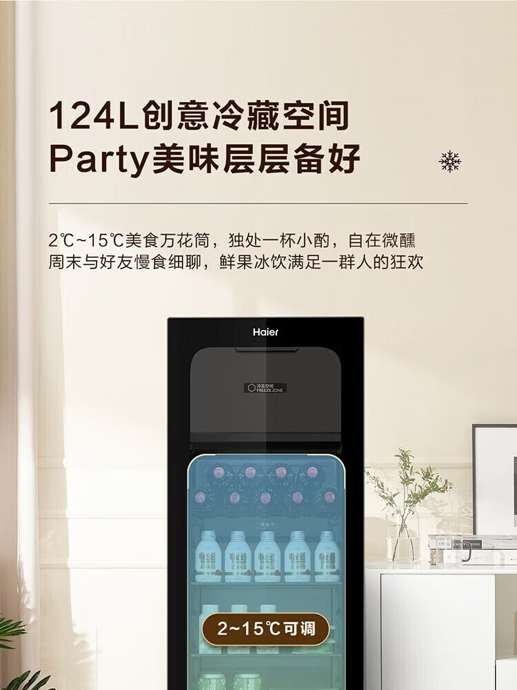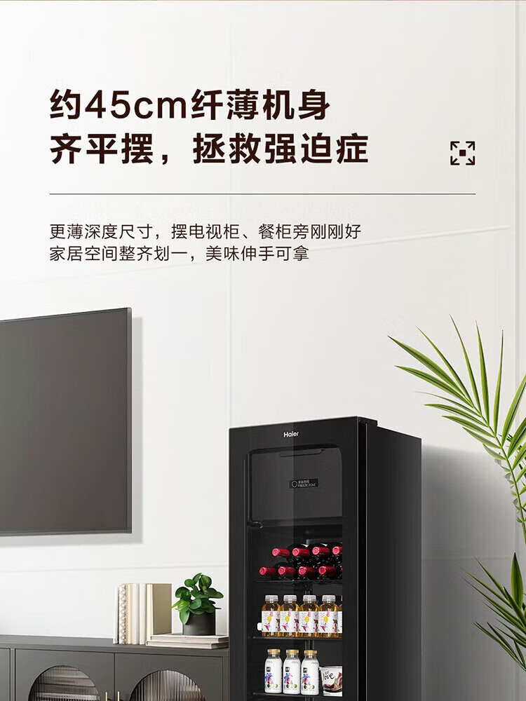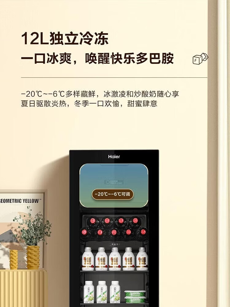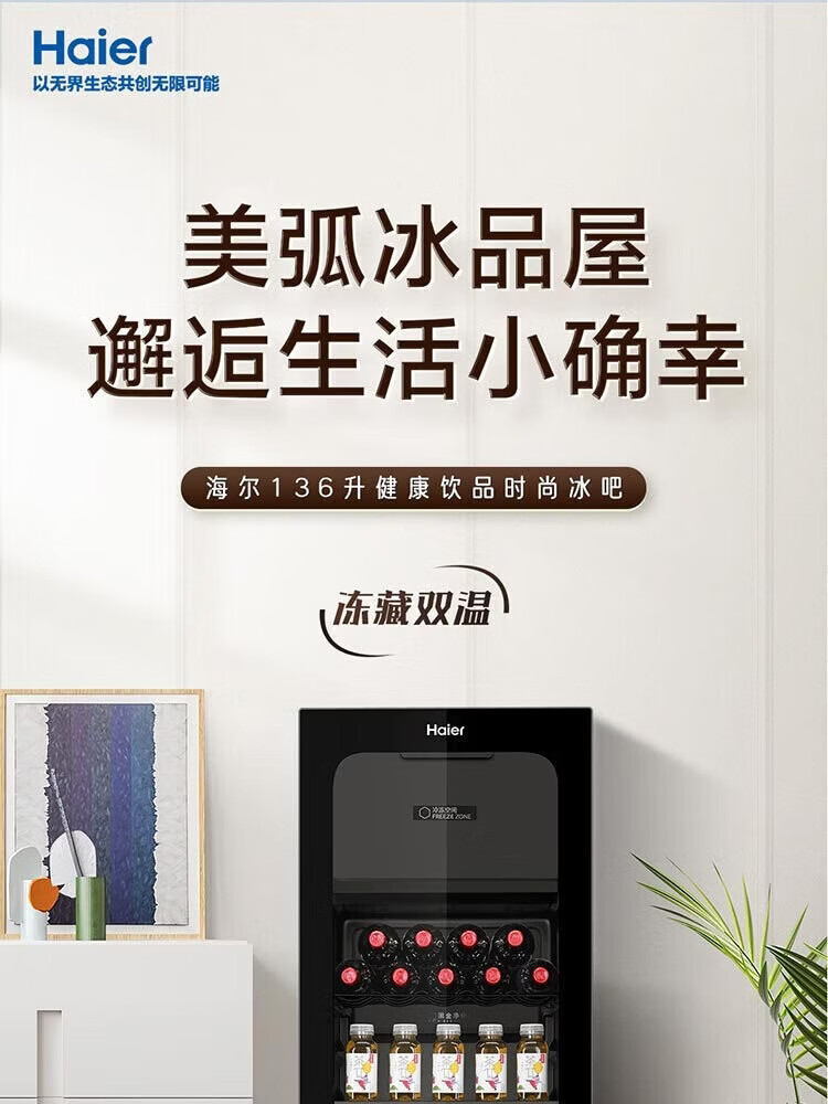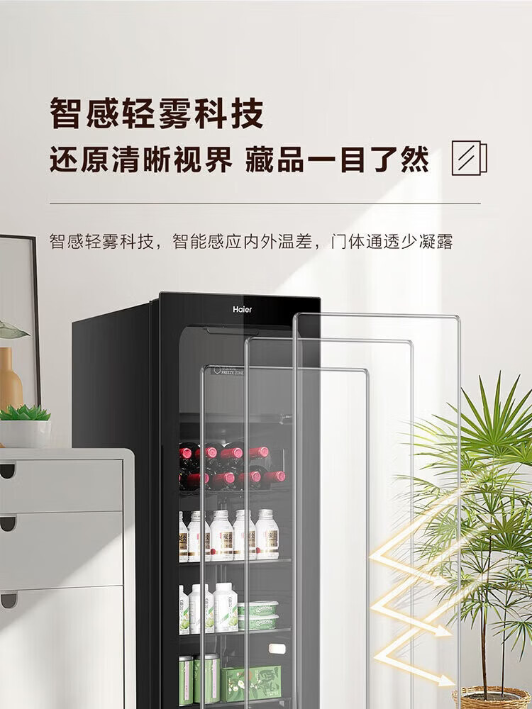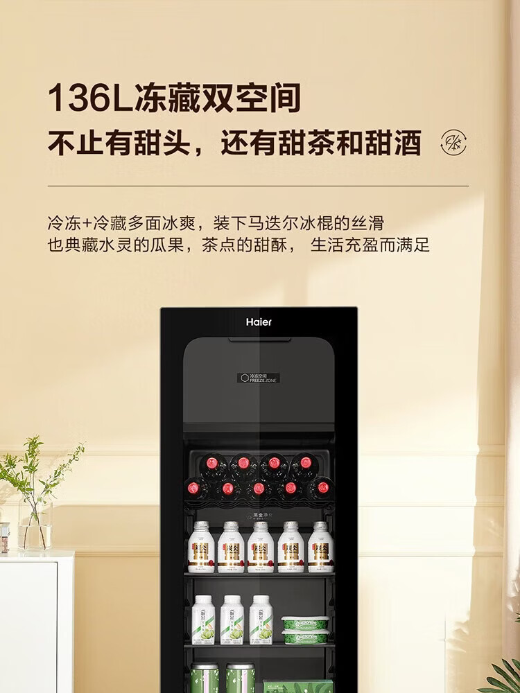 Haier 136L Ice Bar Wine Cabinet Dual Temperature Zoned Storage Tea Beverage Fruit Beauty Preservation Home Living Room Office Refrigerator LC-136LHESD1 Piano Black Frozen Storage Dual Temperature 136L