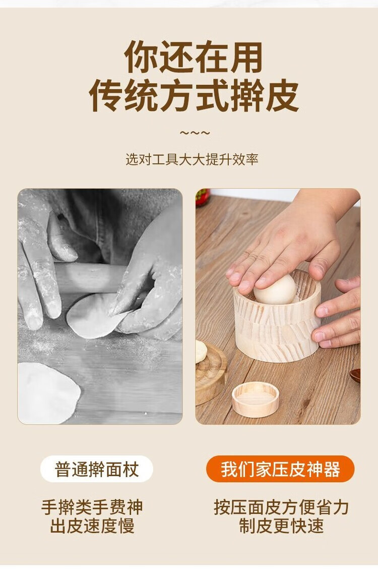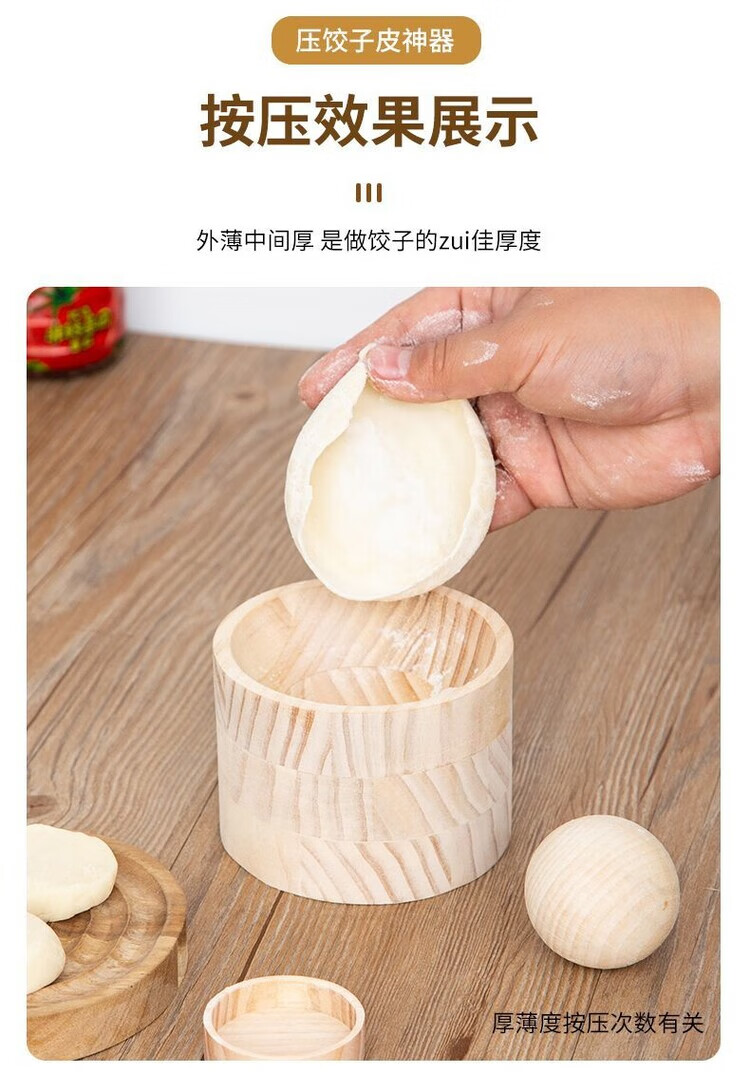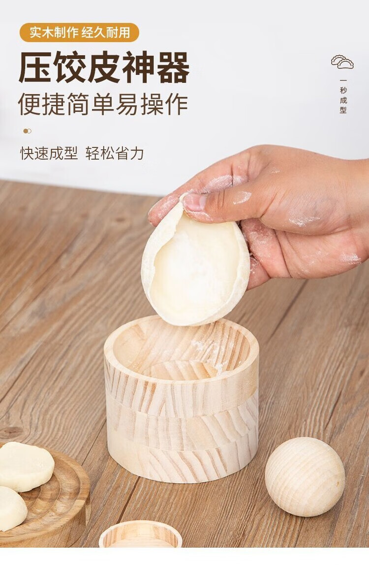 Magic Dou Shenghuo kitchen special skin press, manual press for dumpling skins, Qingming Qingguo mugwort peel mold, solid wood skin press (never breaks down in life), easily make dumpling skins that are thin on both sides and thick in the middle