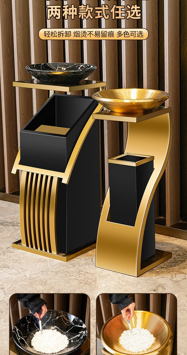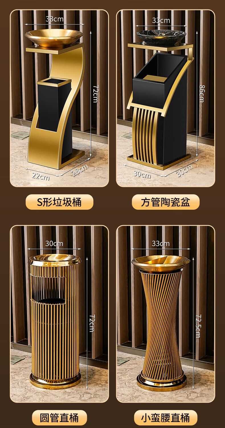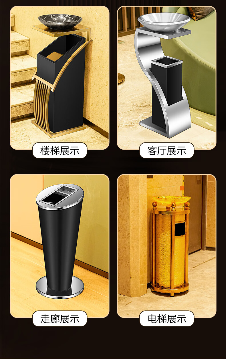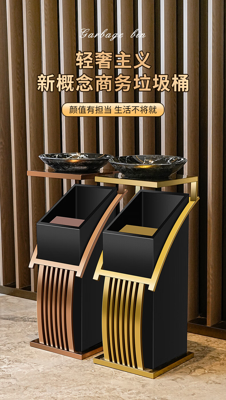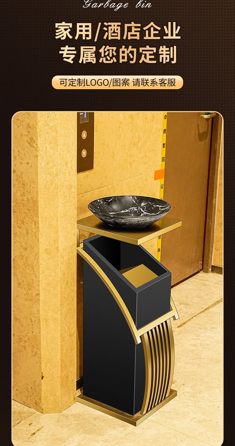 Runkai hotel lobby stainless steel trash can commercial office building vertical elevator corridor KTV sanitary bucket with ashtray small waist black gold